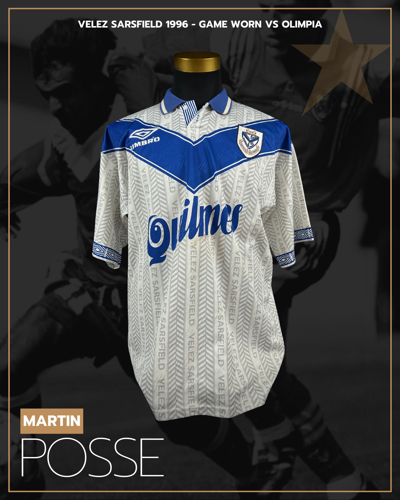 NOTE 1: SWAPPED IN KNOWN MATCH. Jersey worn by the Velez legend Martin Posse and swapped after the match with Gustavo Sotelo on October 16th, 1996 after the match.