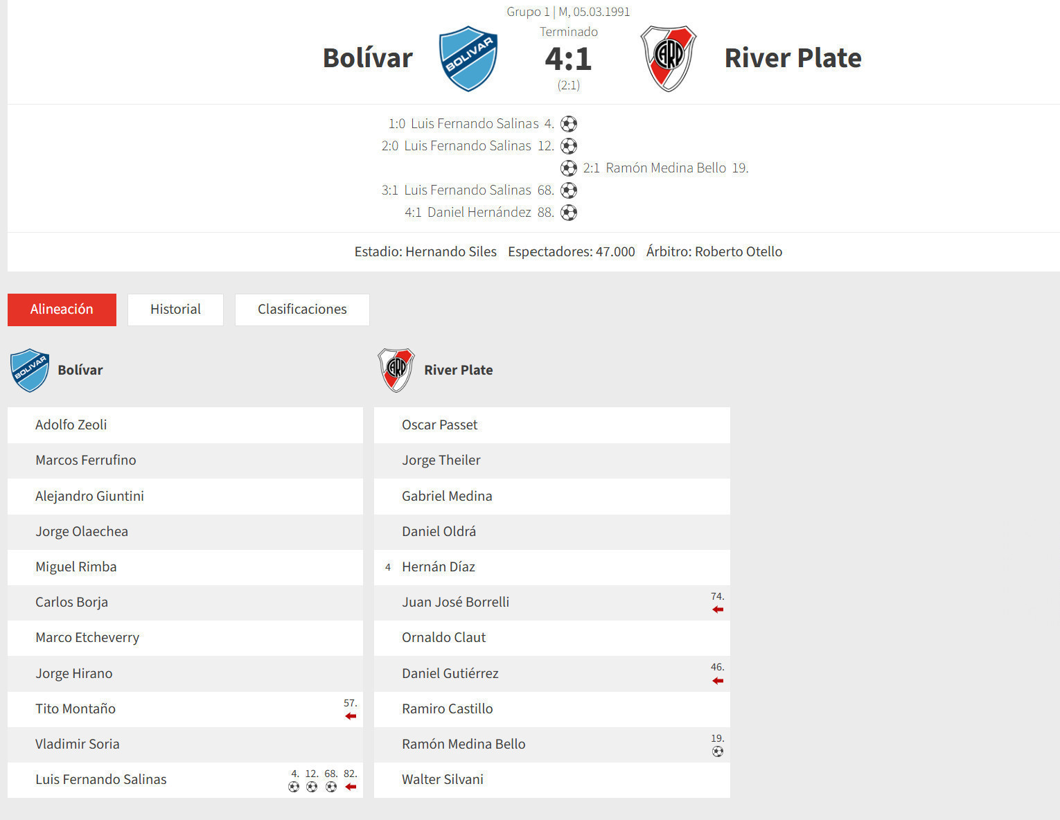 Game: BOLIVAR vs RIVER PLATE (4-1)