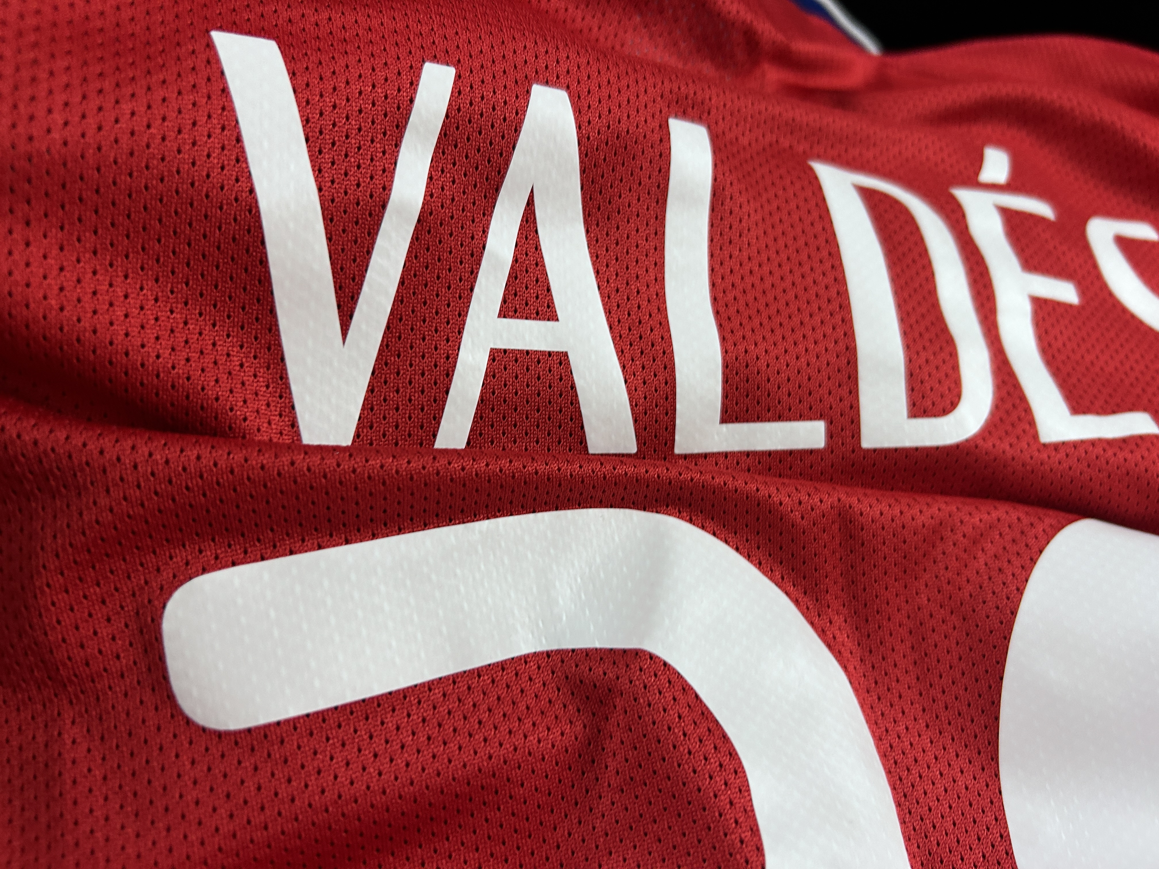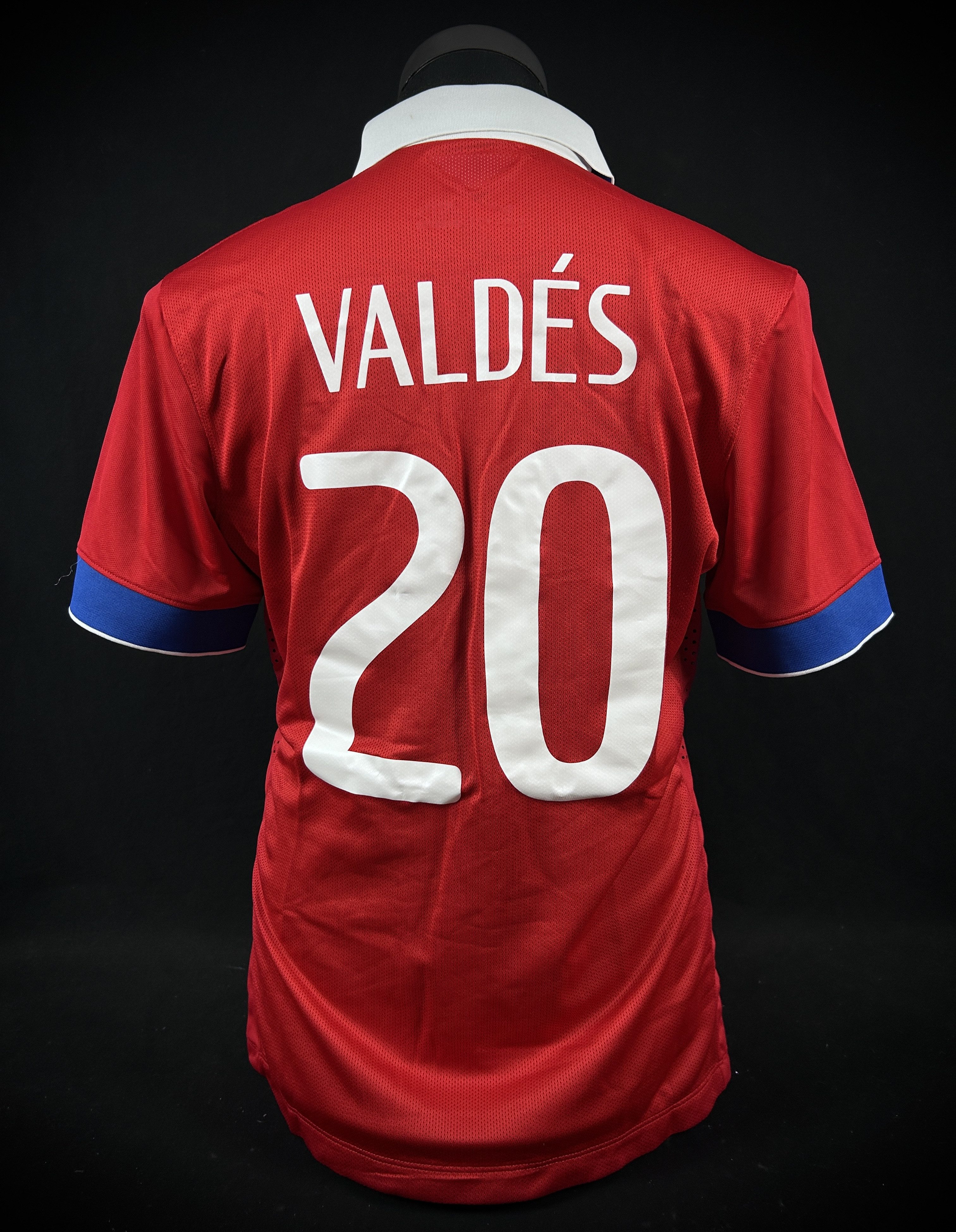 NOTE 1: In this game Valdés was unused player, but as declared by him, he came for national team after long time, so kept for personal purpose a spare jersey before this specific match. No qualifiers patch on sleeve and front, so took it before kits were ready for match that night. Jersey worn during the game was different about patchs than this auctioned jersey.