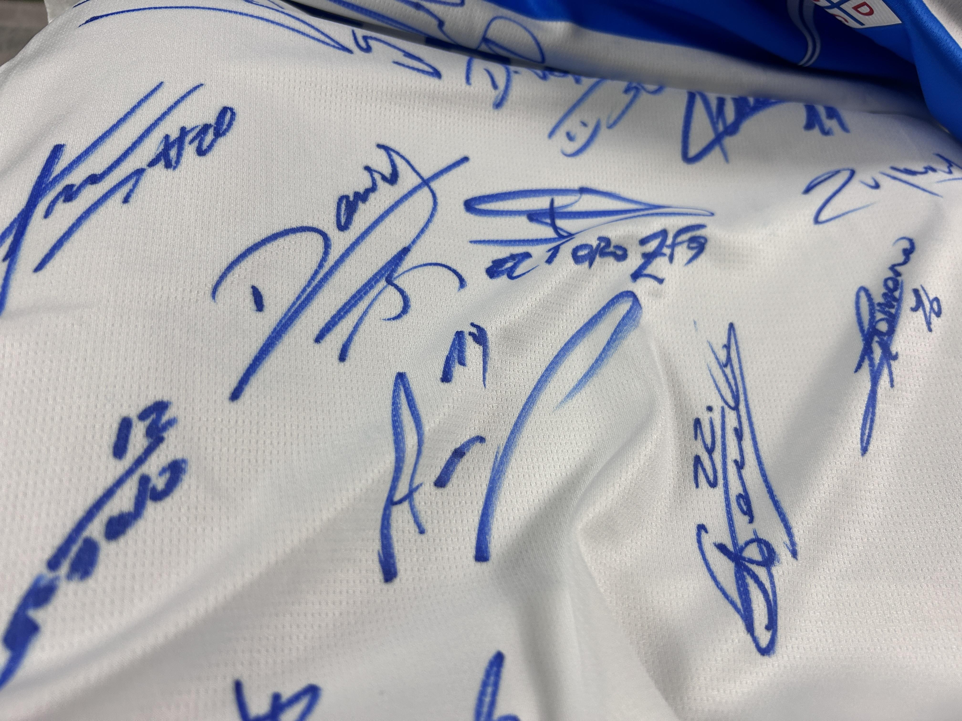 YOUR CHANCE T GET A FULL TEAM SIGNED JERSEY! Jersey signed by 13 player on front ion blue marker, including, Zampedi, Monbtes Valencia etc.