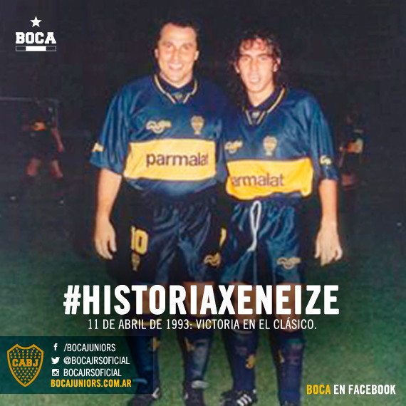 NOTE 1 : XENEIZE IDOL Jersey worn on pitch and gifteds by Manteca Martinez to his uruguayan fiend Da Silva. Martinez is considered idol for Boca fans scoring 86 goals in 167 games during 5 seasons.