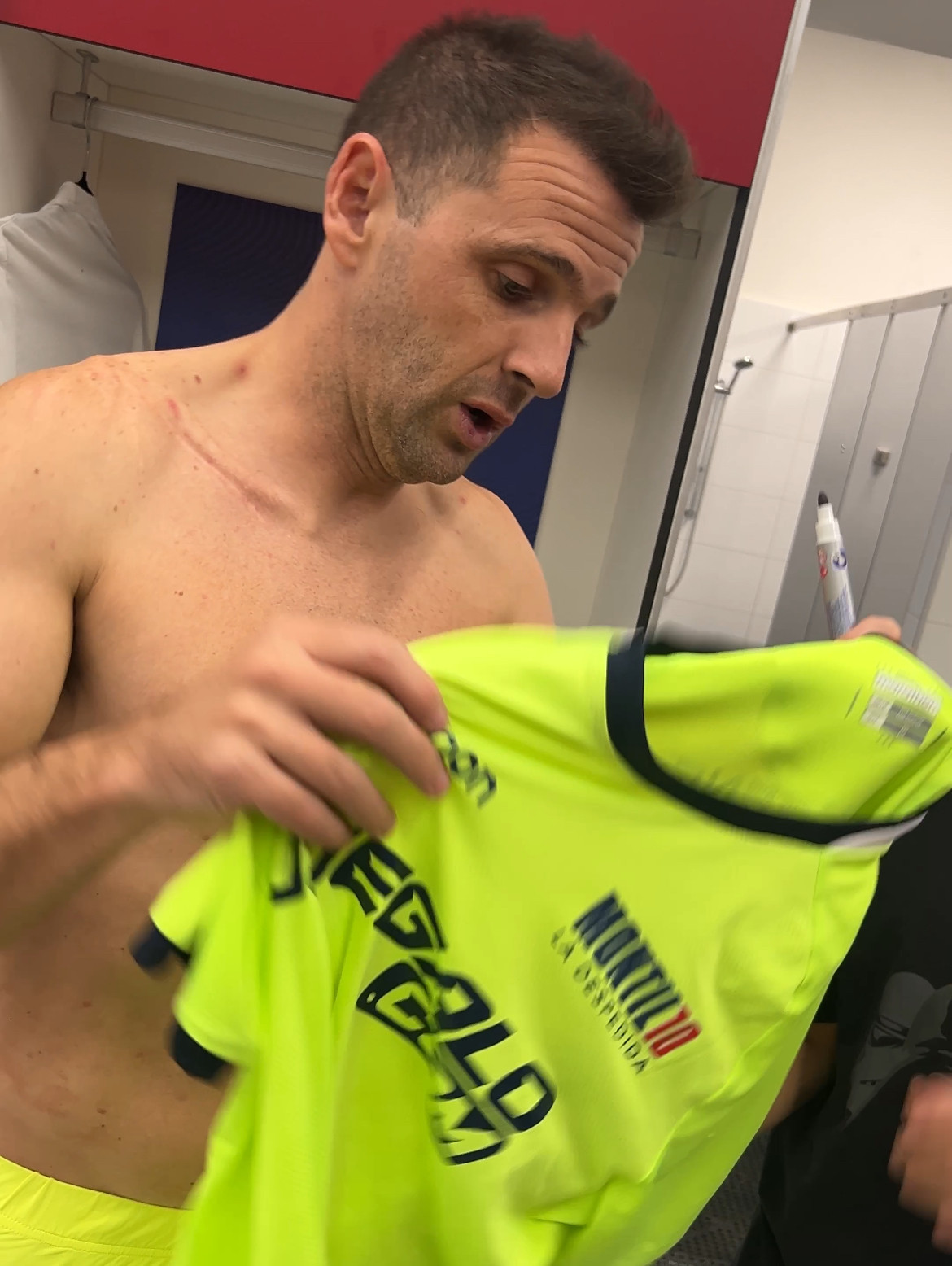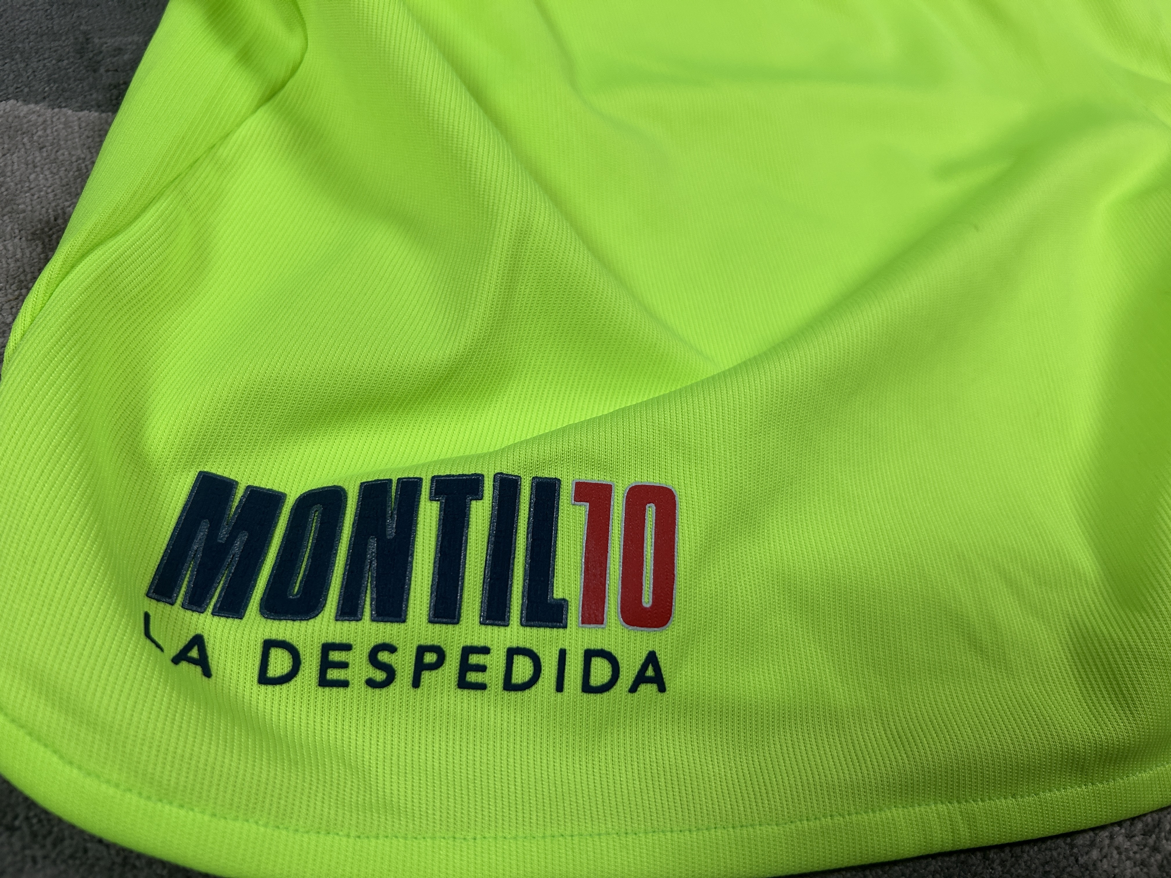 CAMISETA Y SHORT SIN LAVAR, MANTIENE CARACTERISTICAS PROPIAS DEL JUGADOR Y MARCAS DE SU USO EN CANCHA. CAMISETA ENTREGADA DIRECTAMENTE POR EL JUGADOR DURANTE EL MISMO PARTIDO . REVISAR EN CADA LOTE FOTO PROOF DEL MOMENTO PRECISO DE LAS ENTREGAS DE CADA PIEZA POR PARTE DE CADA JUGADOR.