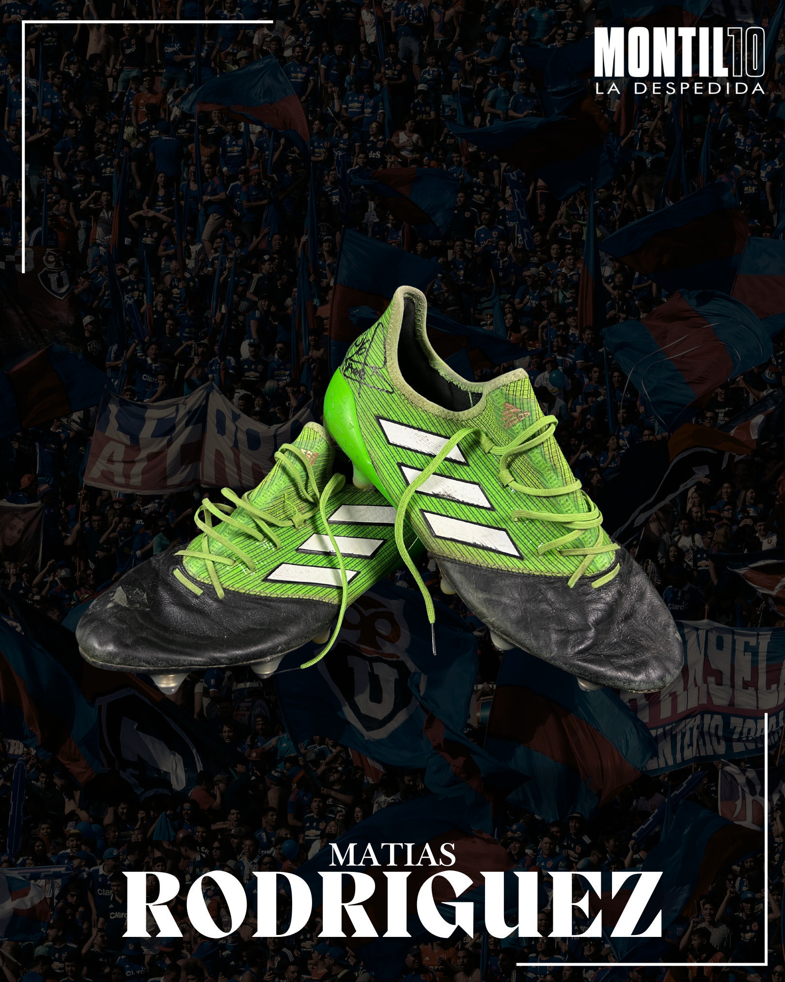 Descripción Lote: ZAPATOS USADOS POR MATÍAS RODRIGUEZ EN CANCHA DURANTE PARTIDO HOMENAJE "MONTILLO-LA DESPEDIDA" EL 16 DE DICIEMBRE 2025 .