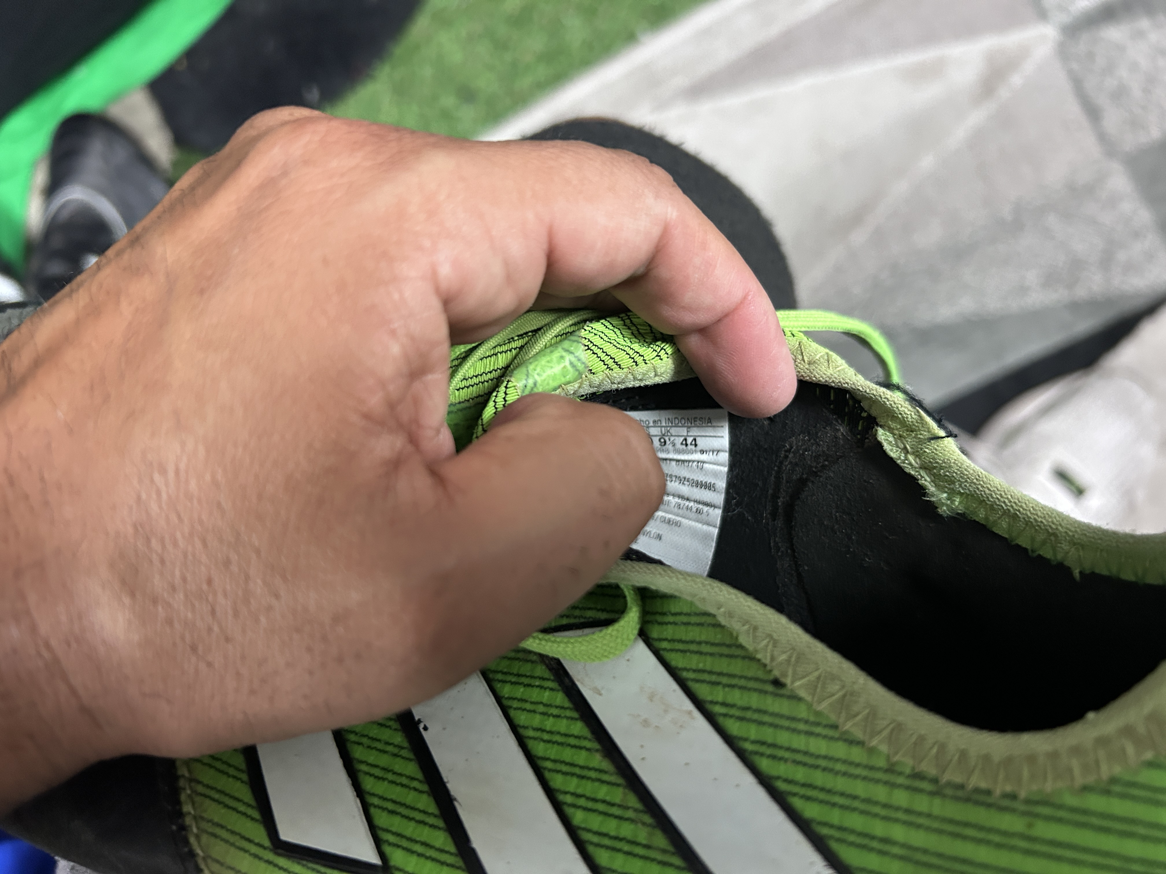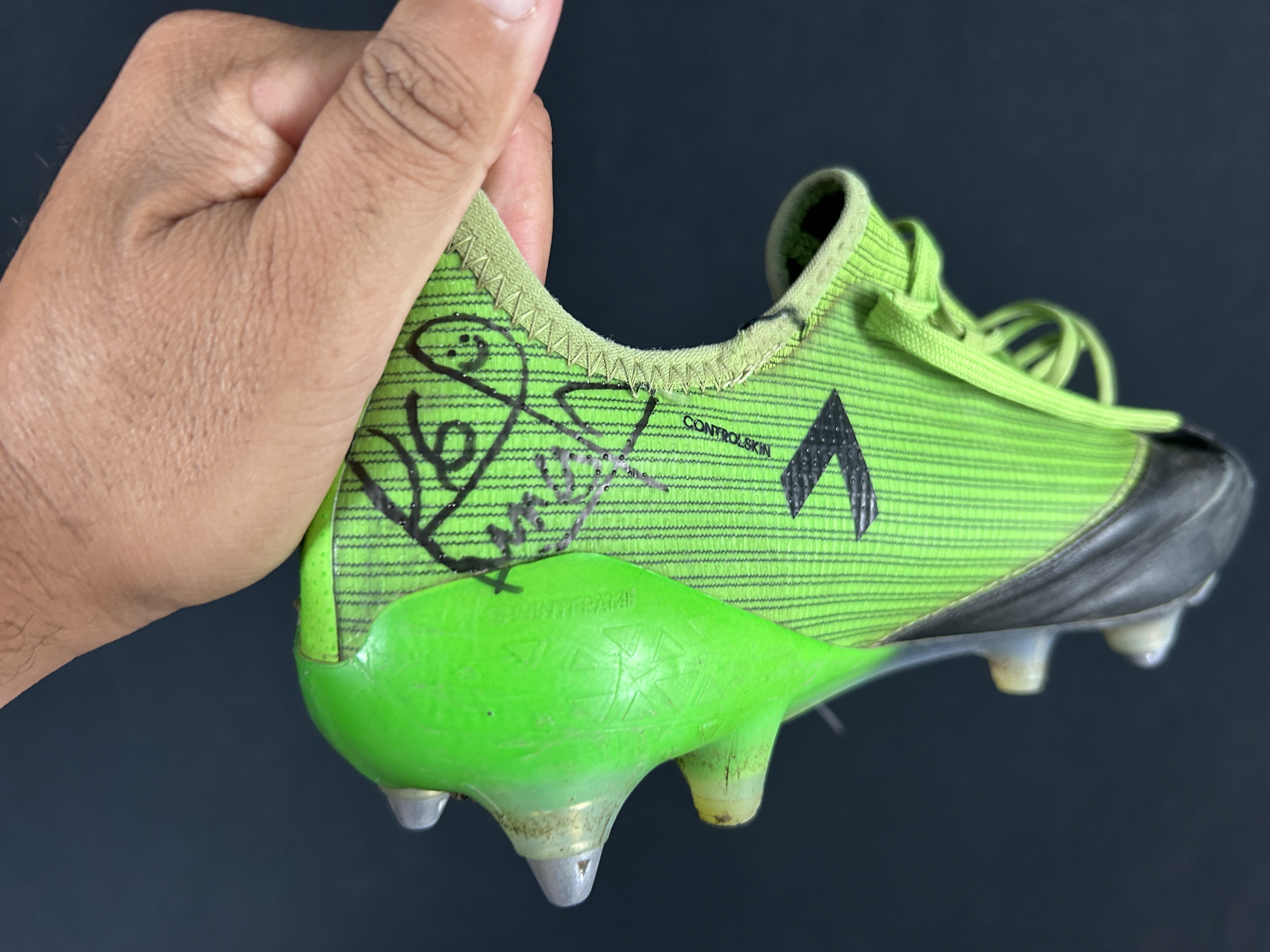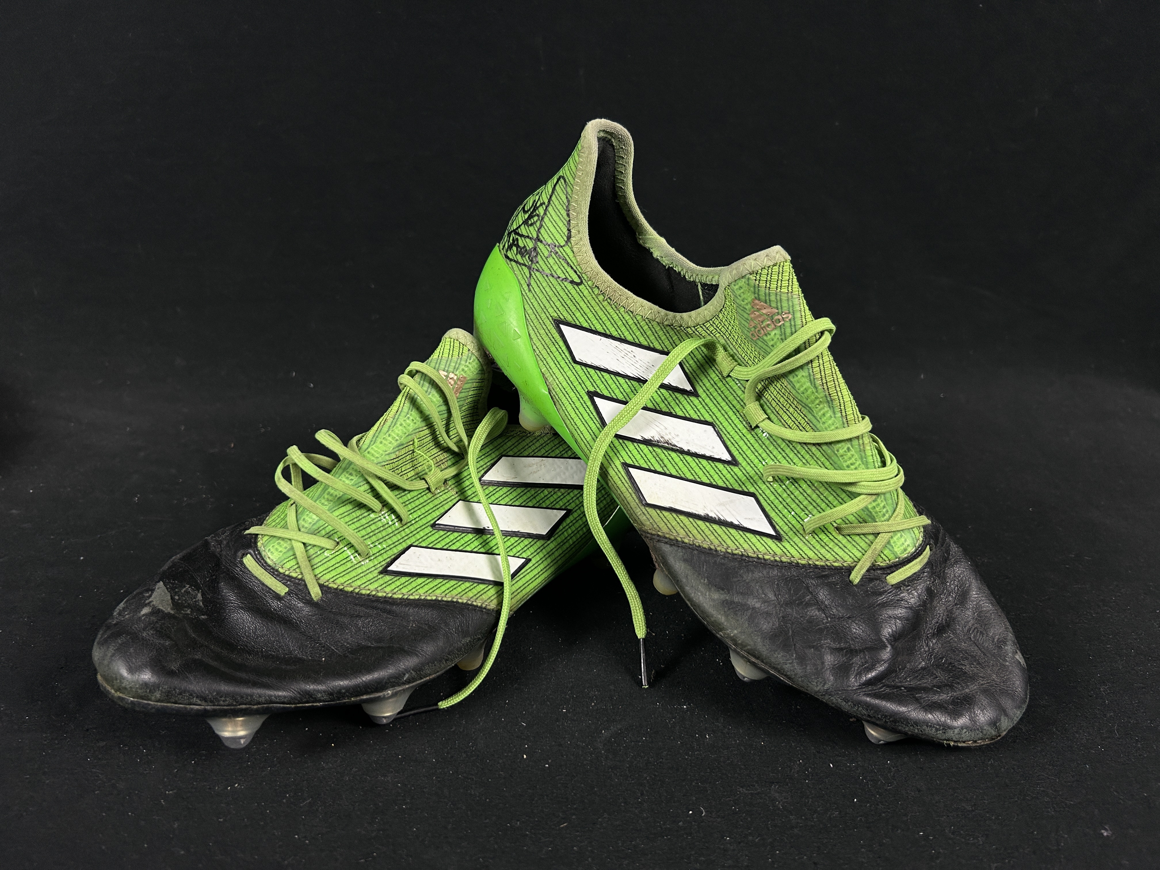 ZAPATOS MANTIENE CARACTERISTICAS PROPIAS DEL JUGADOR Y MARCAS DE SU USO EN CANCHA. ENTREGADOS DIRECTAMENTE POR EL JUGADOR DURANTE EL TERMINO DEL SEGUNDO TIEMPO EN CAMARINES. REVISAR EN CADA LOTE FOTO PROOF DEL MOMENTO PRECISO DE LAS ENTREGAS DE CADA PIEZA POR PARTE DE CADA JUGADOR.