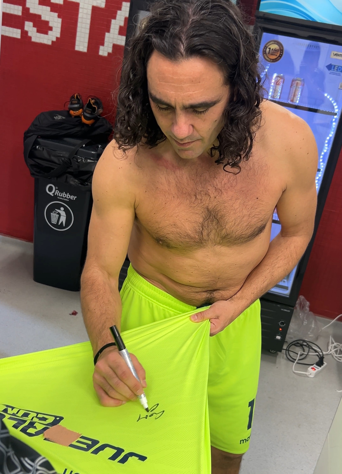 CAMISETA SIN LAVAR, MANTIENE CARACTERISTICAS PROPIAS DEL JUGADOR Y MARCAS DE SU USO EN CANCHA. CAMISETA ENTREGADA DIRECTAMENTE POR EL JUGADOR EN EL CAMARÍN POST PARTIDO . REVISAR EN CADA LOTE FOTO PROOF DEL MOMENTO PRECISO DE LAS ENTREGAS DE CADA PIEZA POR PARTE DE CADA JUGADOR.