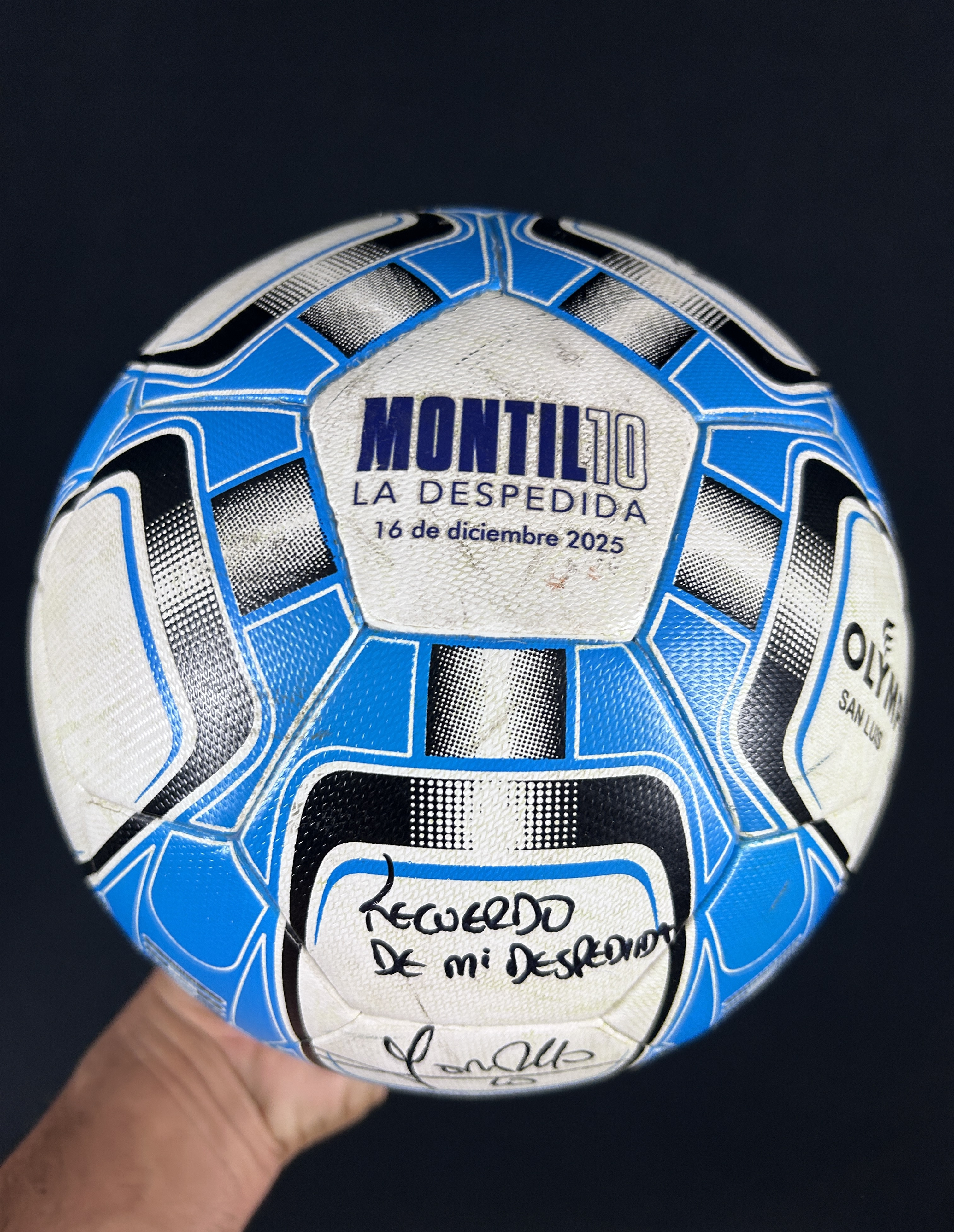 Descripción Lote: PELOTA EXACTA USADA EN CANCHA Y CON LA QUE WALTER MONTILLO TERMINO DE JUGAR EL SEGUNDO TIEMPO EN EL PITAZO FINAL DURANTE PARTIDO HOMENAJE "MONTILLO-LA DESPEDIDA" EL 16 DE DICIEMBRE 2025 .
