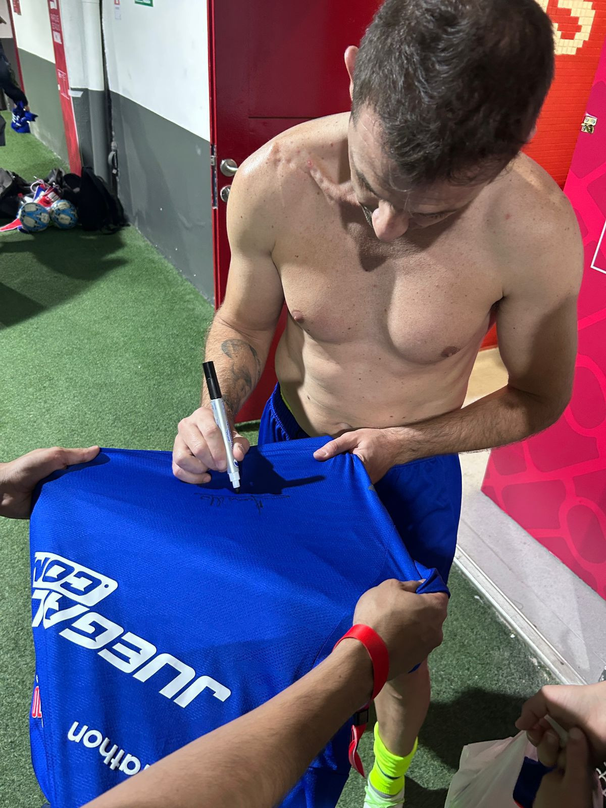 CAMISETA SIN LAVAR, MANTIENE CARACTERISTICAS PROPIAS DEL JUGADOR Y MARCAS DE SU USO EN CANCHA. CAMISETA ENTREGADA DIRECTAMENTE POR EL JUGADOR DURANTE EL MISMO PARTIDO . REVISAR EN CADA LOTE FOTO PROOF DEL MOMENTO PRECISO DE LAS ENTREGAS DE CADA PIEZA POR PARTE DE CADA JUGADOR.