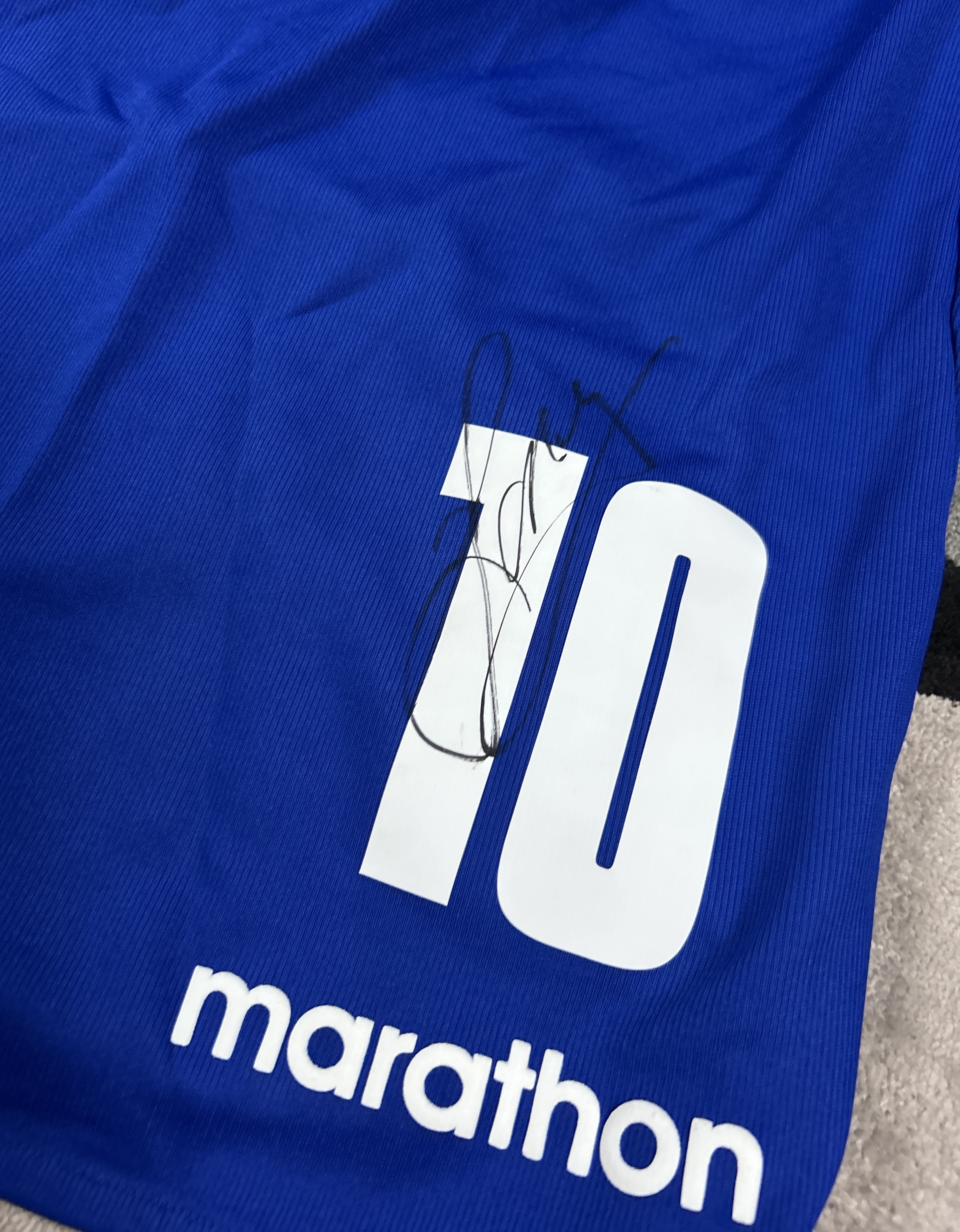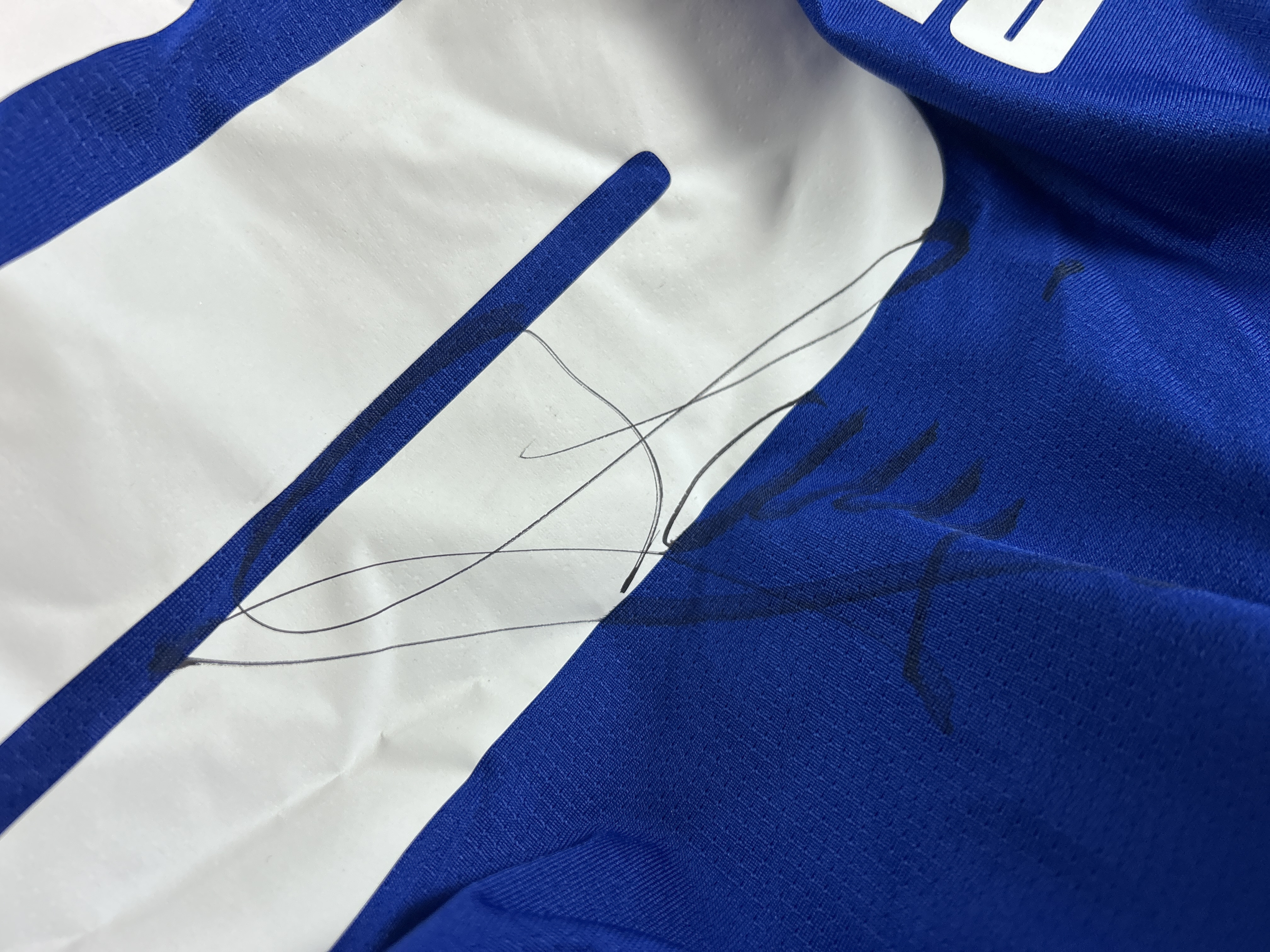Firmada: Short y camiseta firmada por el jugador en el mismo momento de la entrega. Firma con lápiz permanente negro