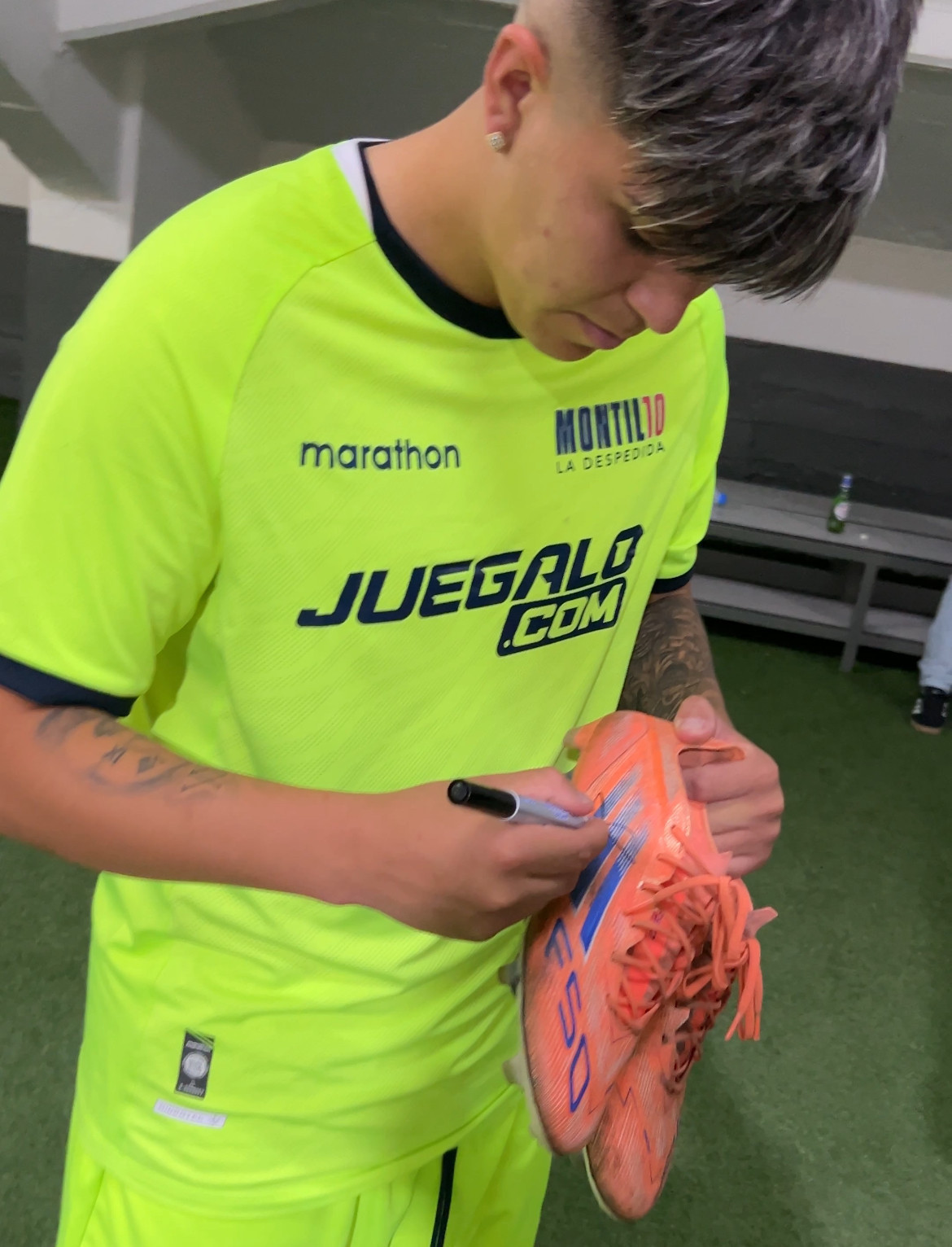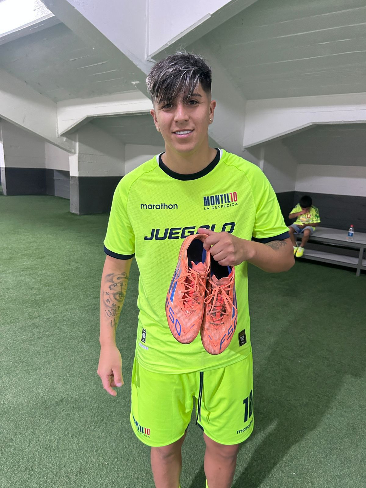 Descripción Lote: ZAPATOS USADOS POR MARCELO MORALES EN CANCHA DURANTE PARTIDO HOMENAJE "MONTILLO-LA DESPEDIDA" EL 16 DE DICIEMBRE 2025 .