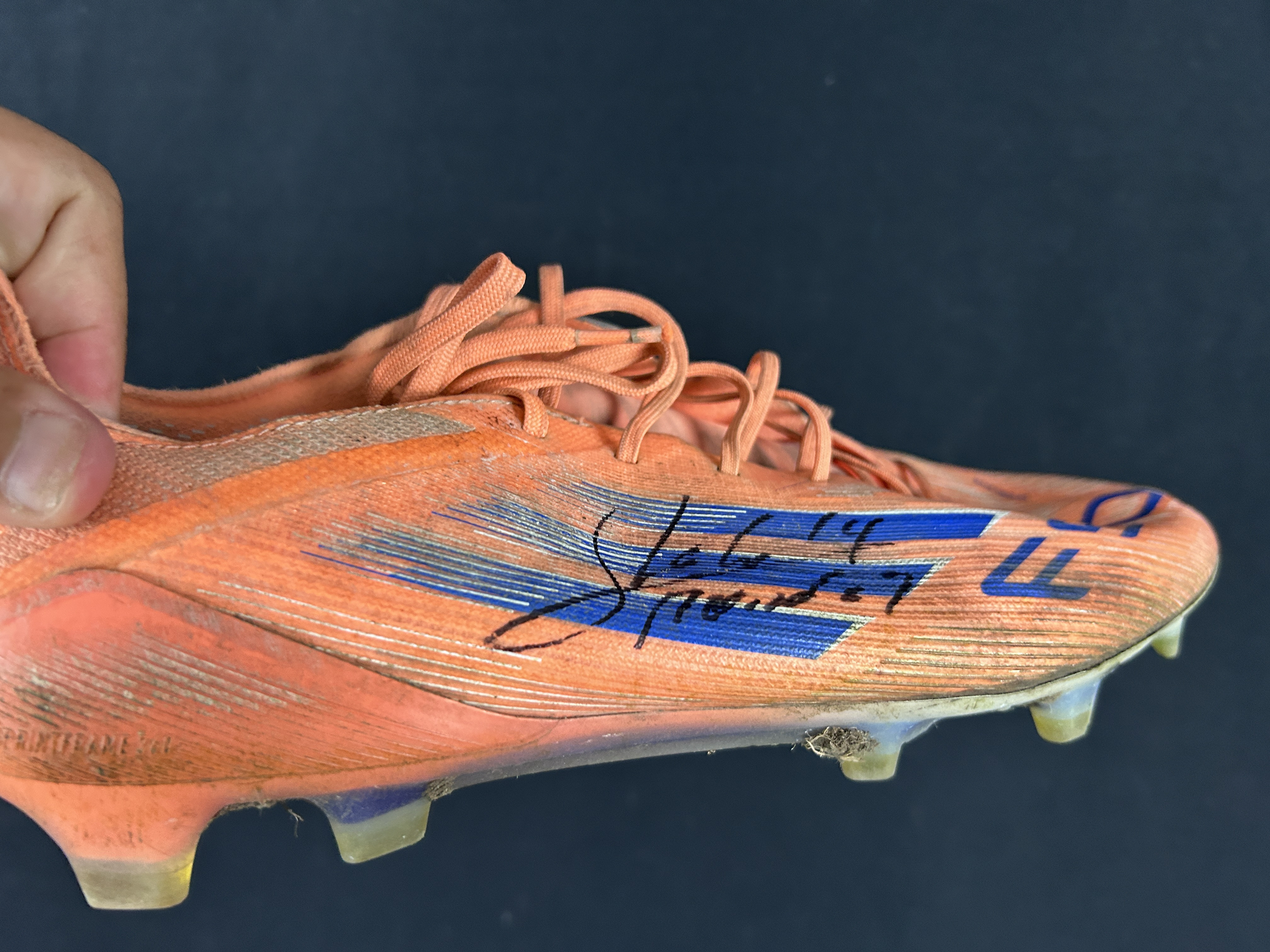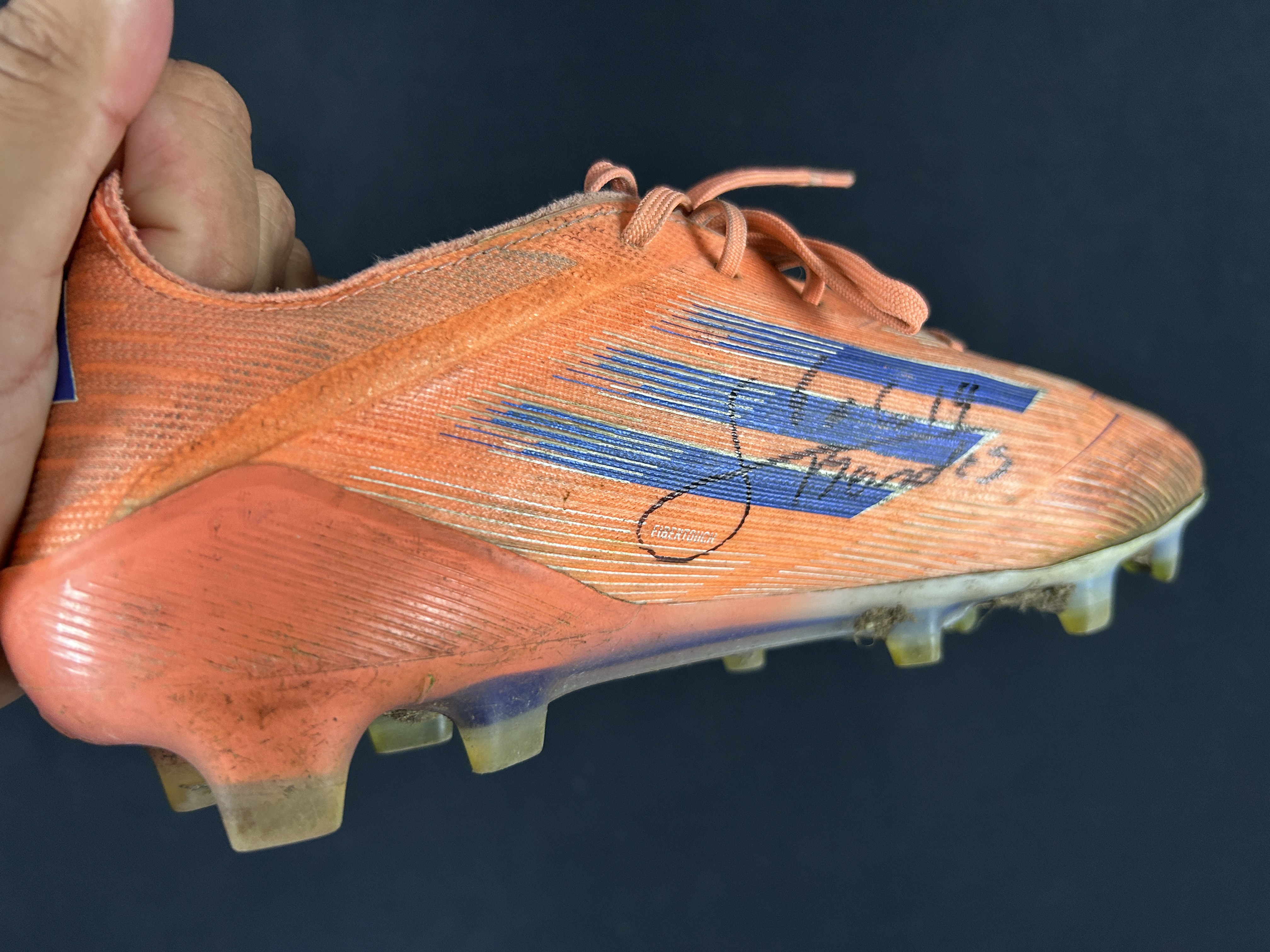 Firmada: Pieza firmada por el jugador en el mismo momento de la entrega. Firma con lápiz permanente negro en zapato derecho.