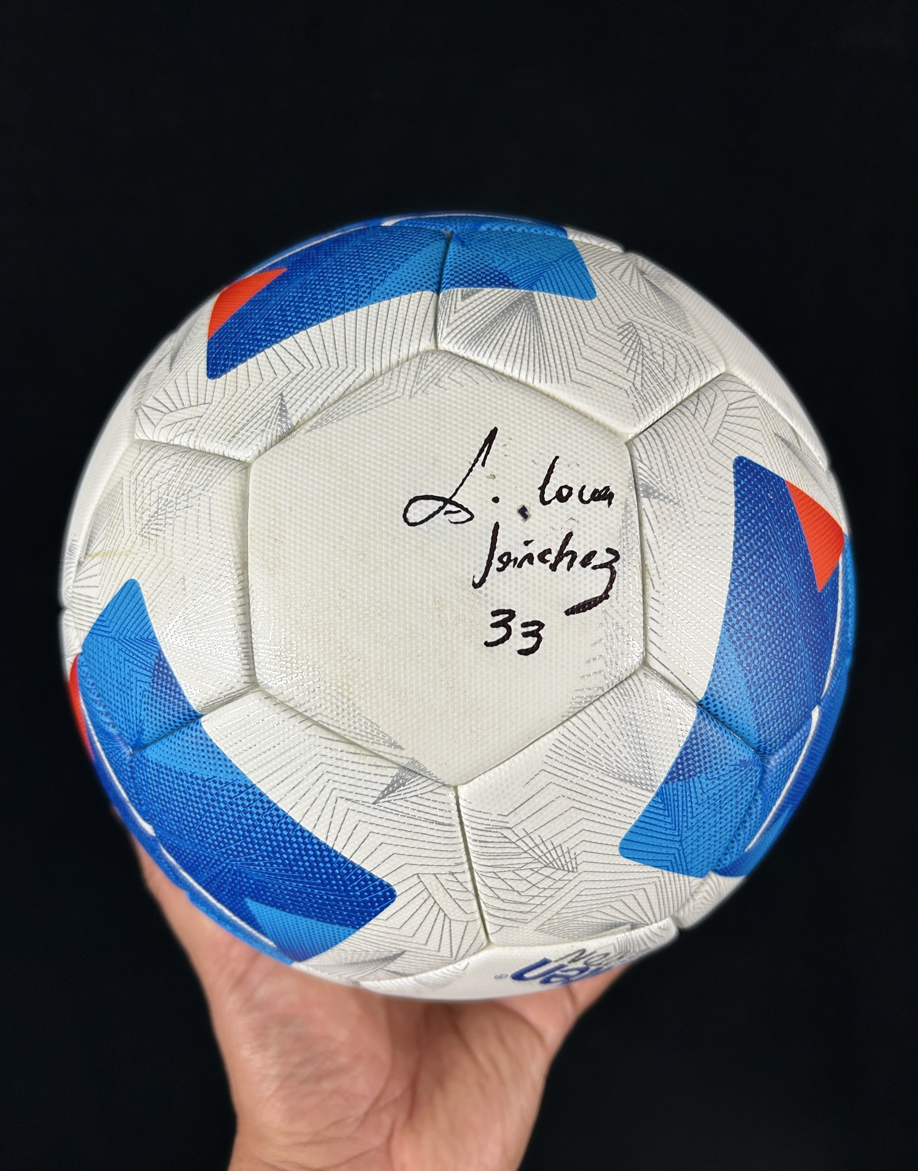 EL BALÓN FUE RECOGIDO POR PERSONAL DEL CLUB, ACREDITADO OFICIALEMENTE, UNA VEZ QUE EL JUEZ DEL PARTIDO LA TOMO TRAS EL PITAZO FINAL. TAMBIÉN FUE FIRMADO POR EL GOLEADOR.