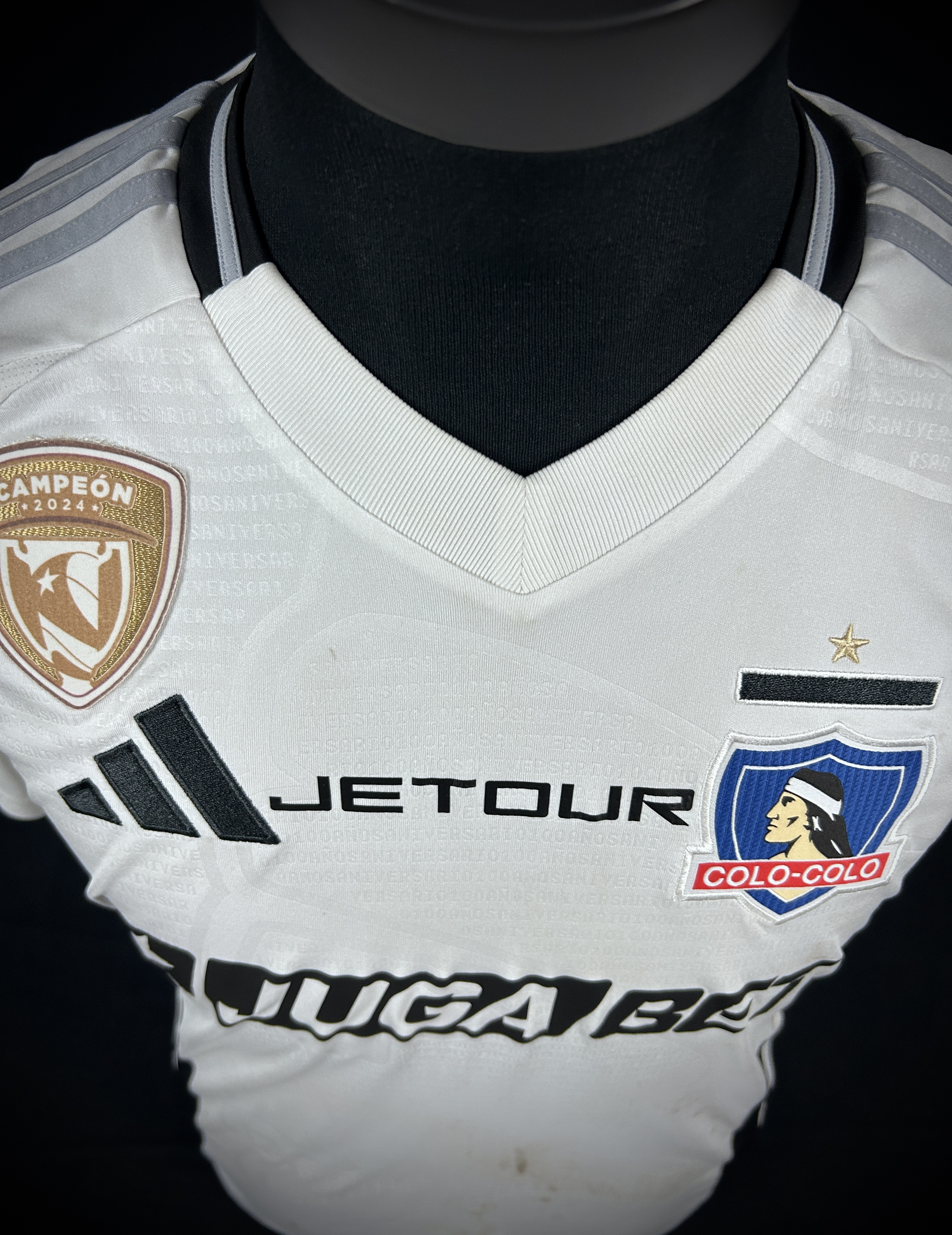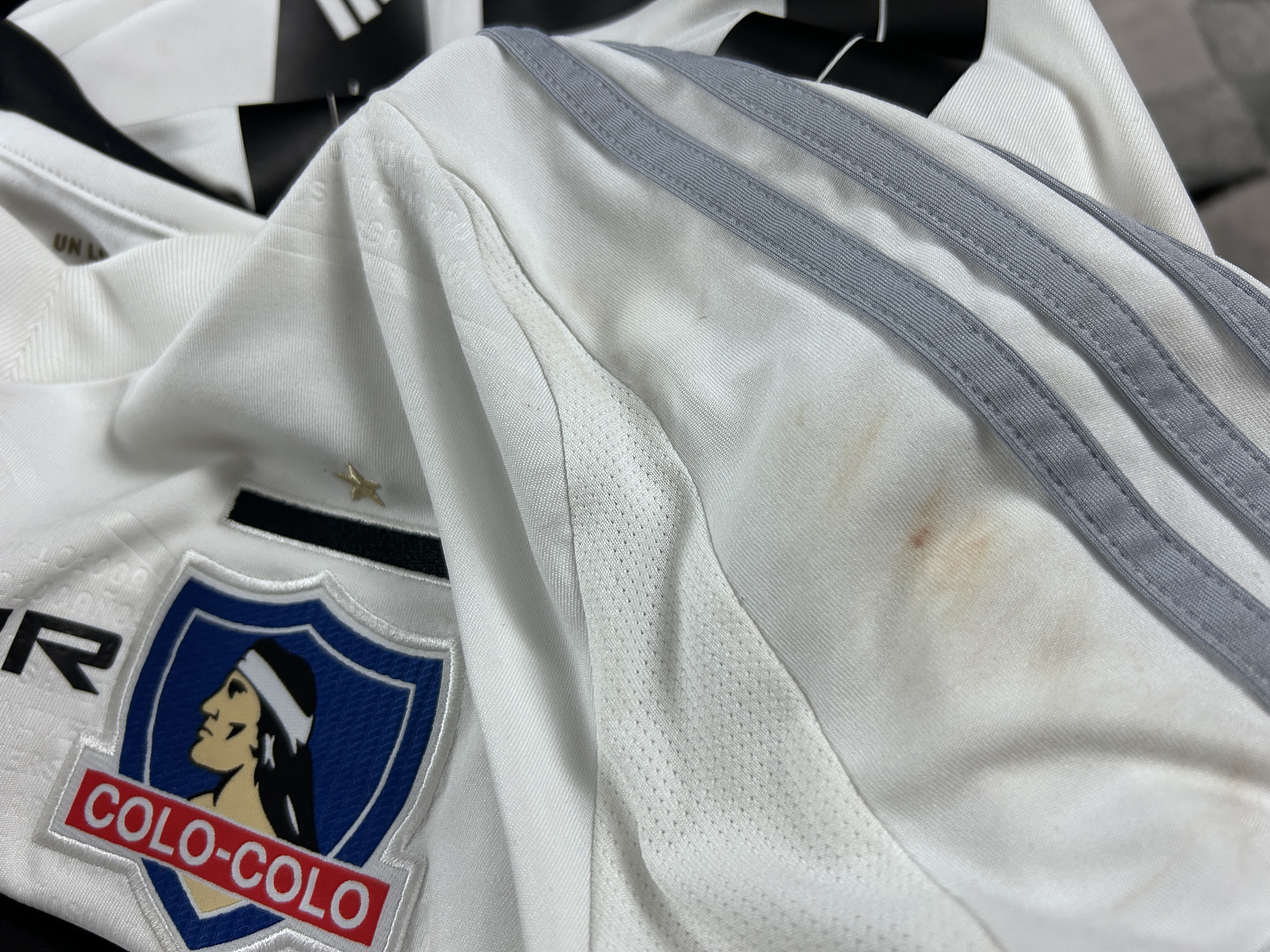 CAMISETA NO SERÁ LAVADA POST PARTIDO, MANTENIENDO CARACTERISTICAS PROPIAS DEL JUGADOR Y MARCAS DE SU USO EN CANCHA. CAMISETA ENTREGADA DIRECTAMENTE POR EL CLUB COLO-COLO