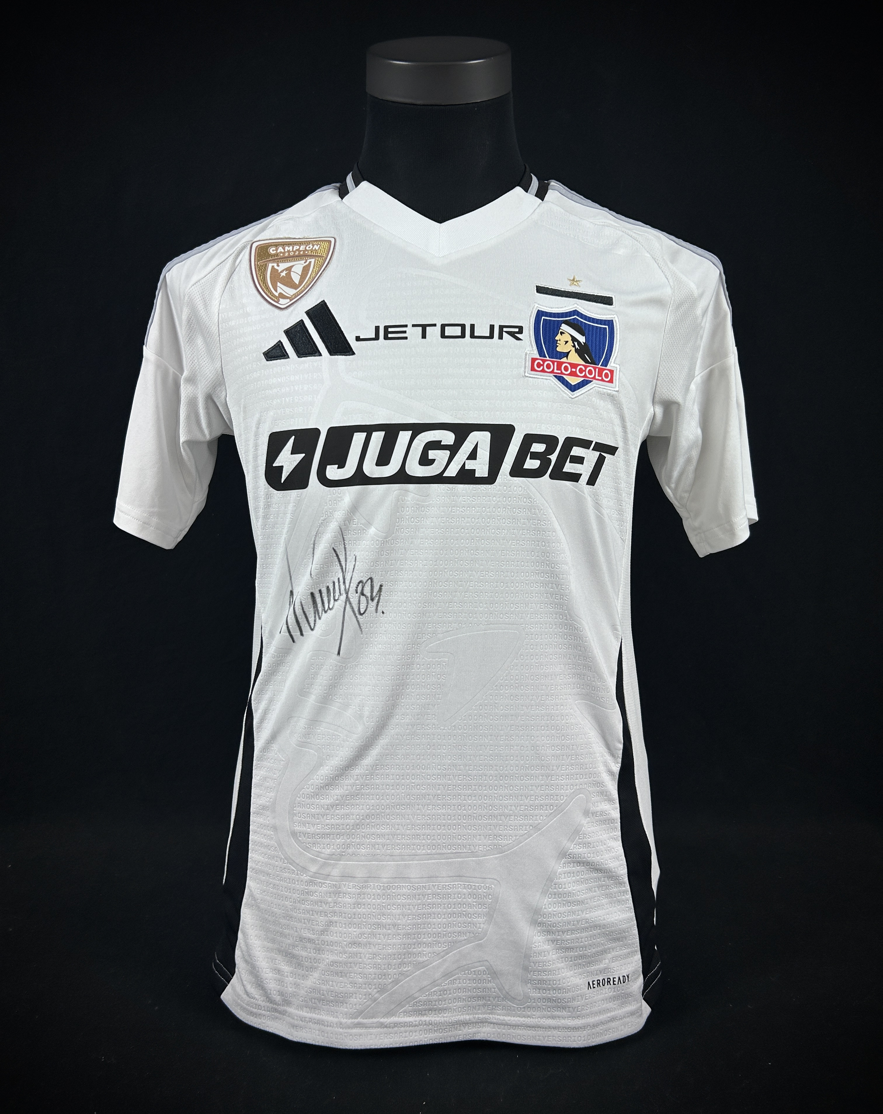 Descripción Lote: CAMISETA PREPARADA (ISSUED) DURANTE EL PARTIDO vs DEPORTES LA SERENA EL 19 JULIO 2025 . FIRMADA EN LA PARTE FROMTAL CON PHOTO PROOF.