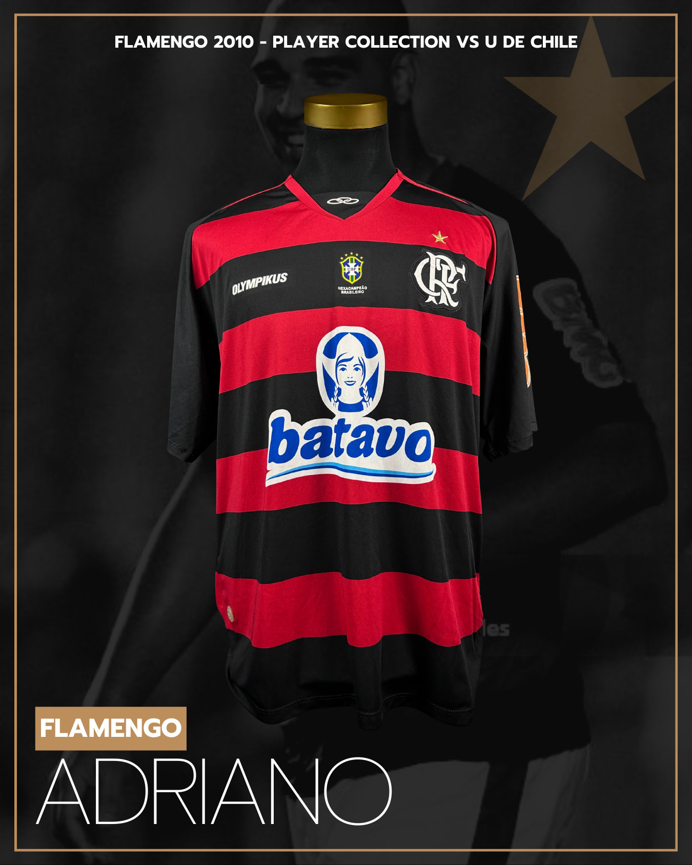 NOTE 1: SWAPPED DURING U DE CHILE "MARACANAZO" WITH THE BRAZILIAN LEGEND. Jersey worn by Adriano during the remembered "Maracanazo" on May 12th, 2010 when U de Chile beated Flamengo at home with an amazing 2-3. Finally the blues sent out Flamengo and reached semifinals. AMAZING PHOTO PROOF ABOUT ADRIANO WITH SWAPPED JERSEY. SEE PHOTO ATTACHED.