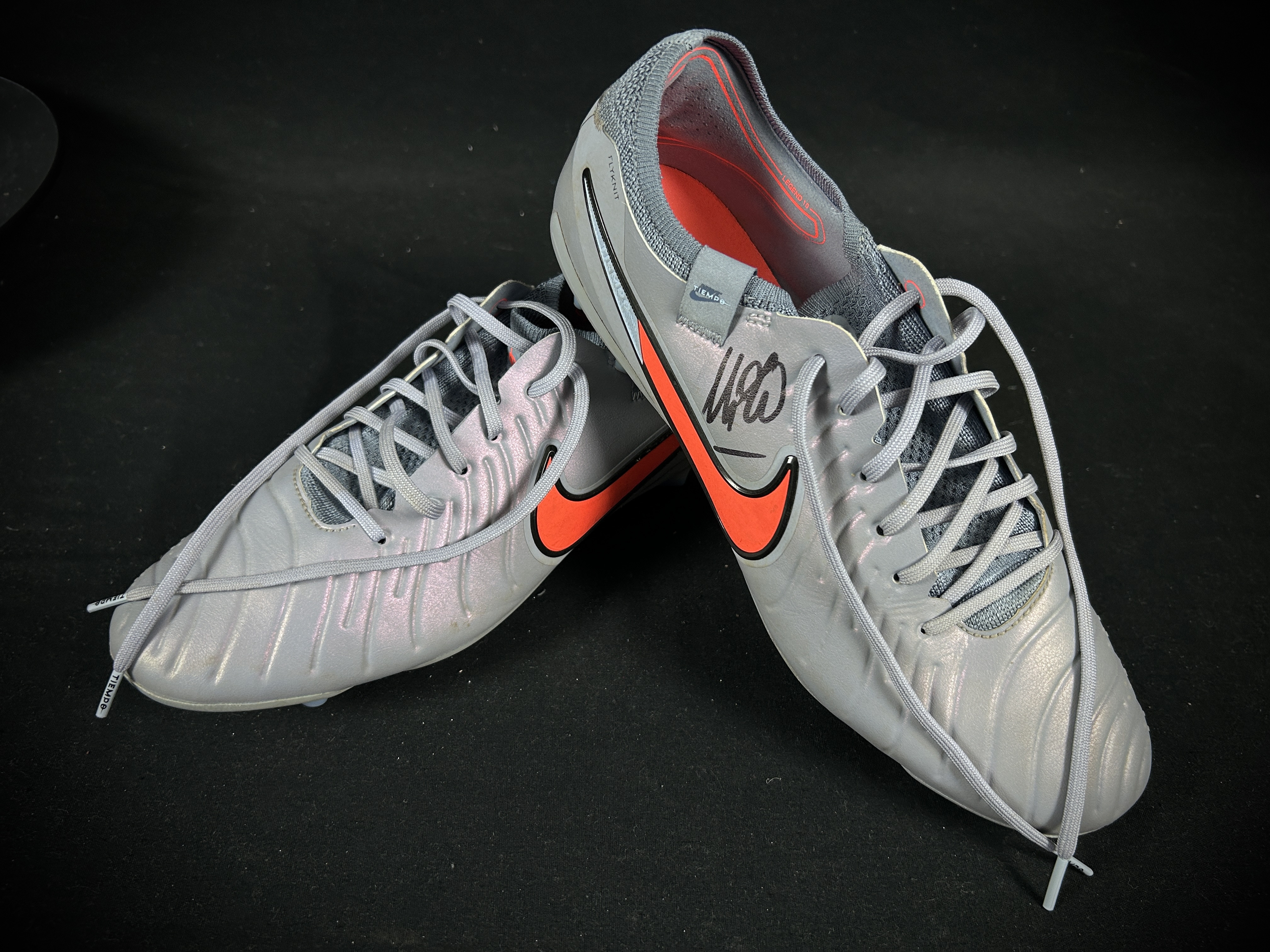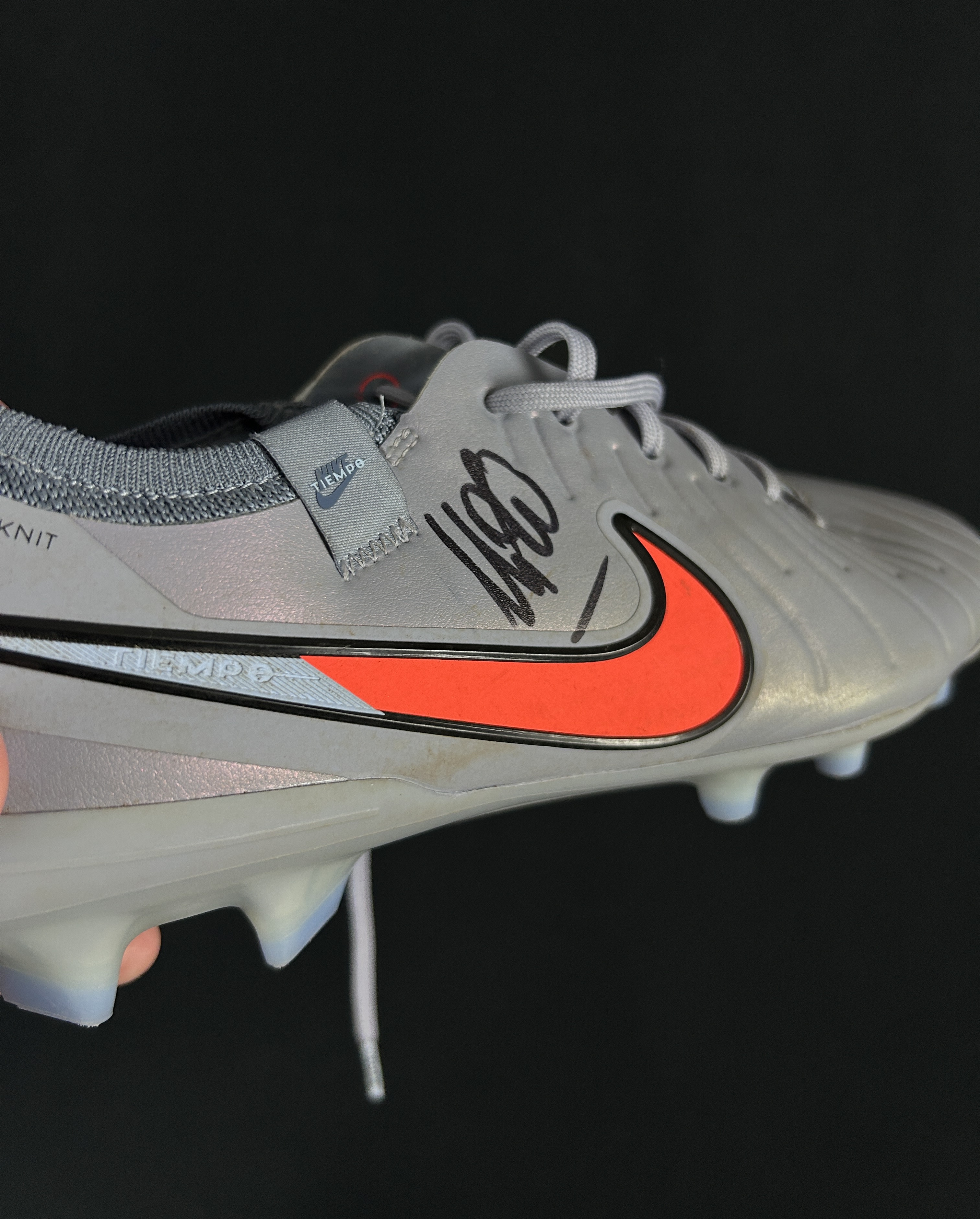 ZAPATOS MANTIENE CARACTERISTICAS PROPIAS DEL JUGADOR Y MARCAS DE SU USO EN CANCHA SINTETICA. ENTREGADOS DIRECTAMENTE POR EL JUGADOR DURANTE EL TERMINO DEL SEGUNDO TIEMPO EN CAMARINES. REVISAR EN CADA LOTE FOTO PROOF DEL MOMENTO PRECISO DE LAS ENTREGAS DE CADA PIEZA POR PARTE DE CADA JUGADOR. ZAPATO DERECHO FIRMADO