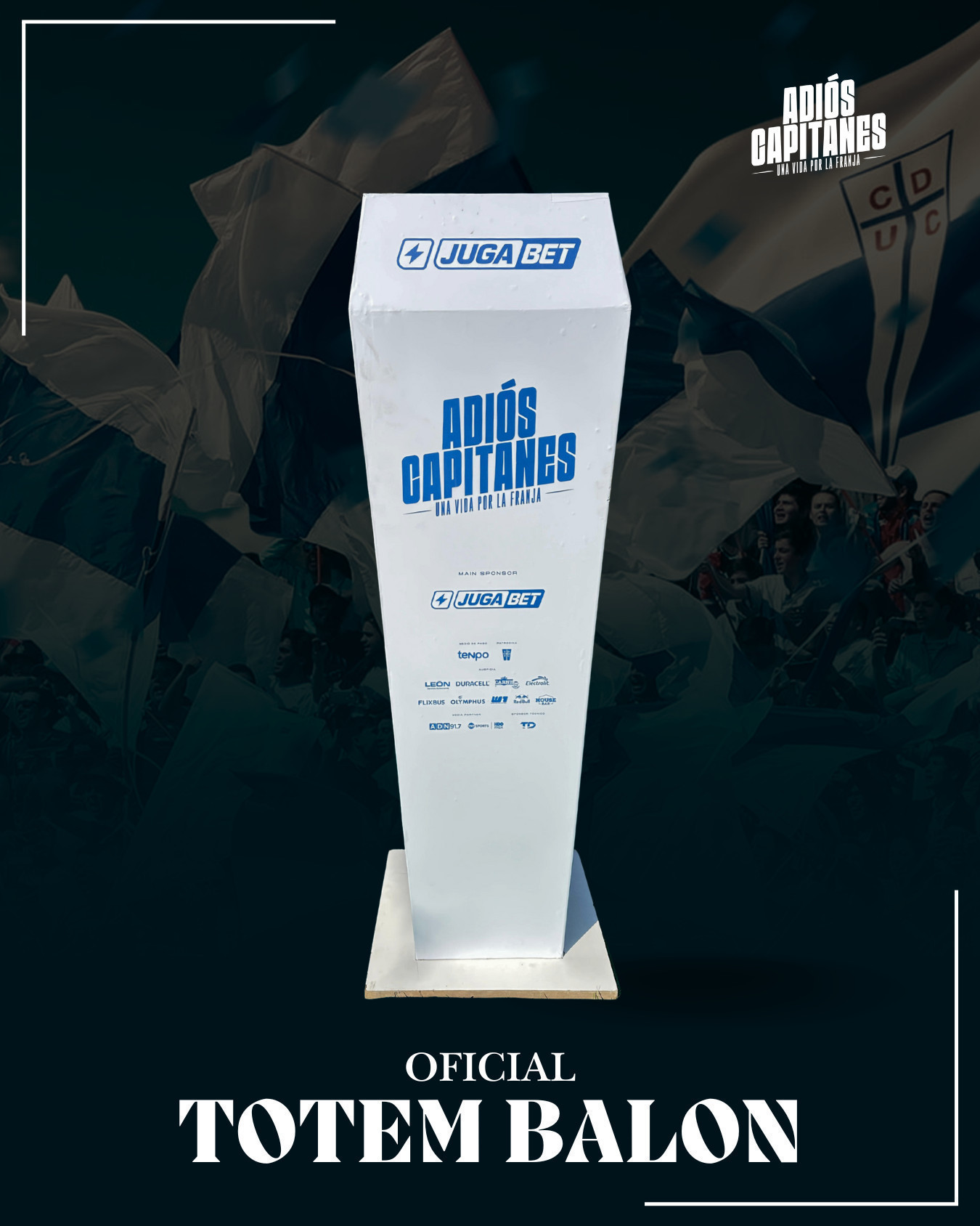 Este totem fue utilizado oficialnente en el juego del Adiós Capitanes, cuando los jugadores de ambos equipos pasaron por el pórtico a la entrada del campo de juego. Este totem luego fue firmado en su plataforma plana por los tres jugadores que tuvieron su despedida. Un hermoso articulo de colección de una jornada memorable.