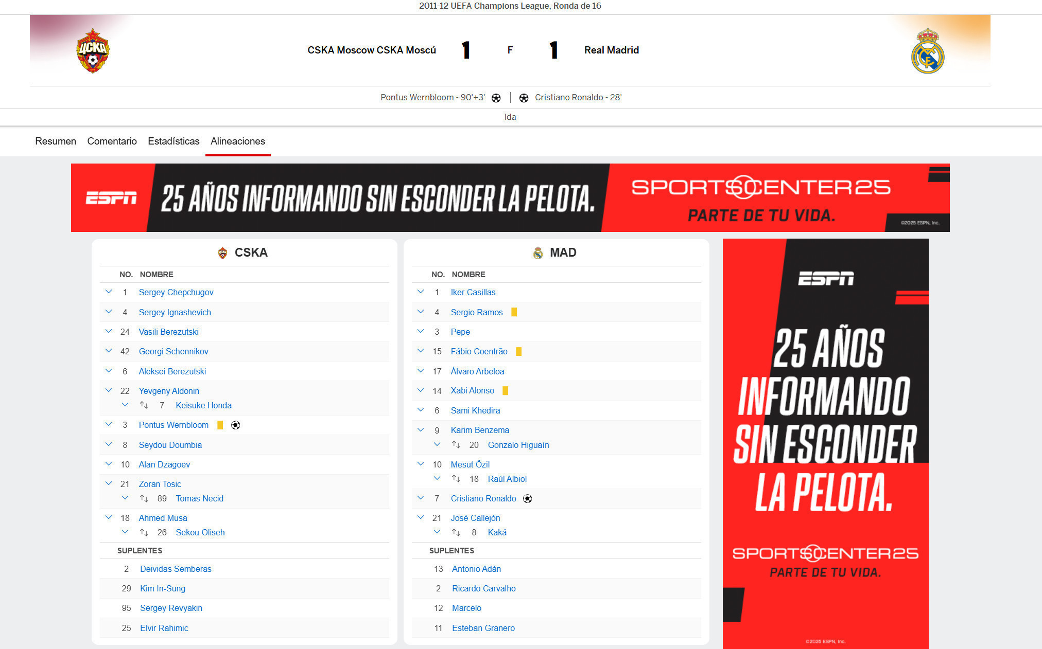 Game: CSKA MOSCOW vs REAL MADRID (1-1)