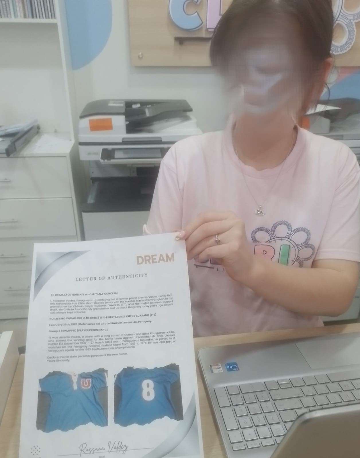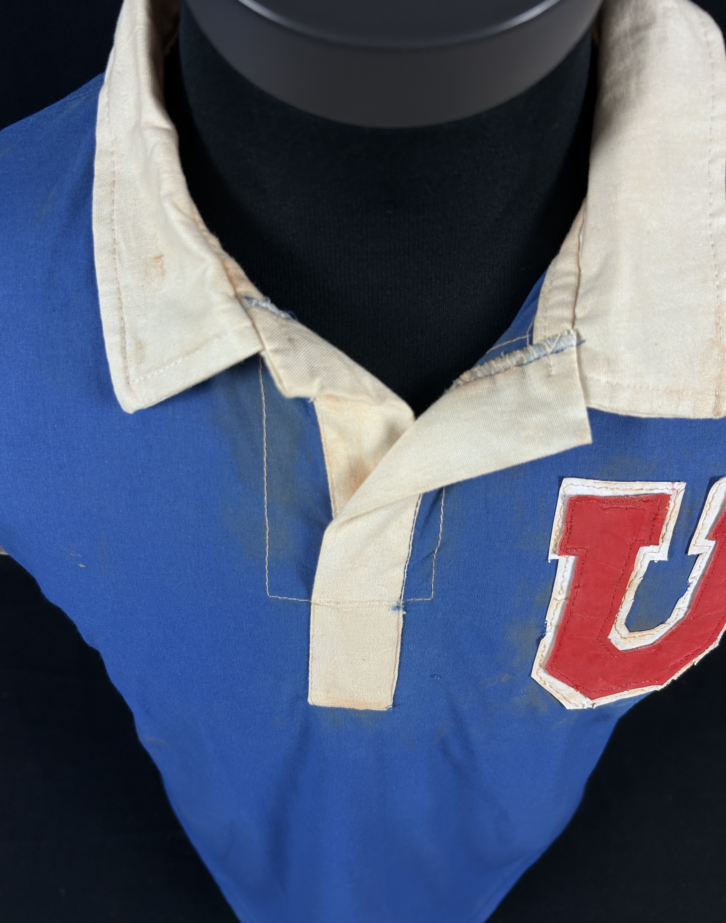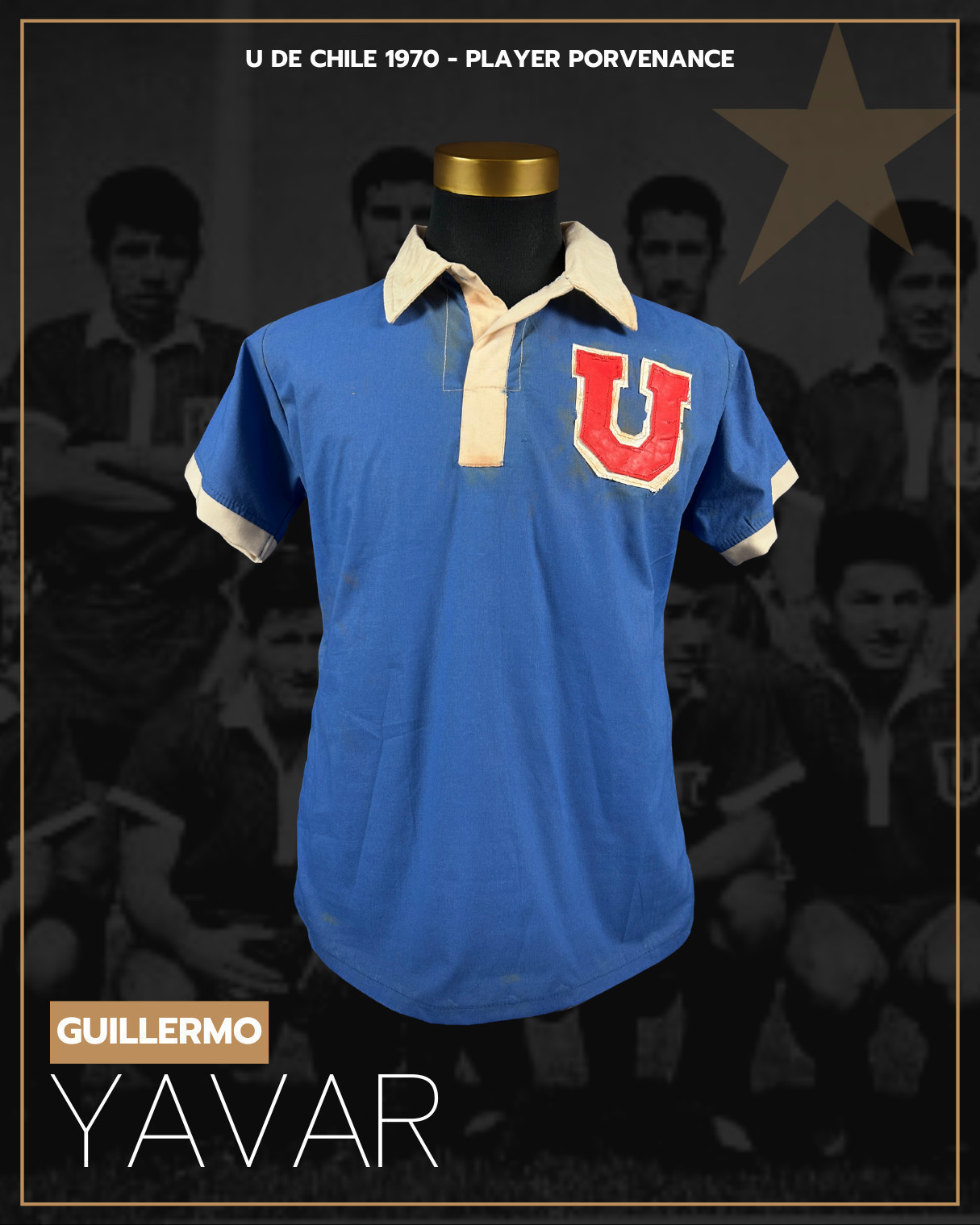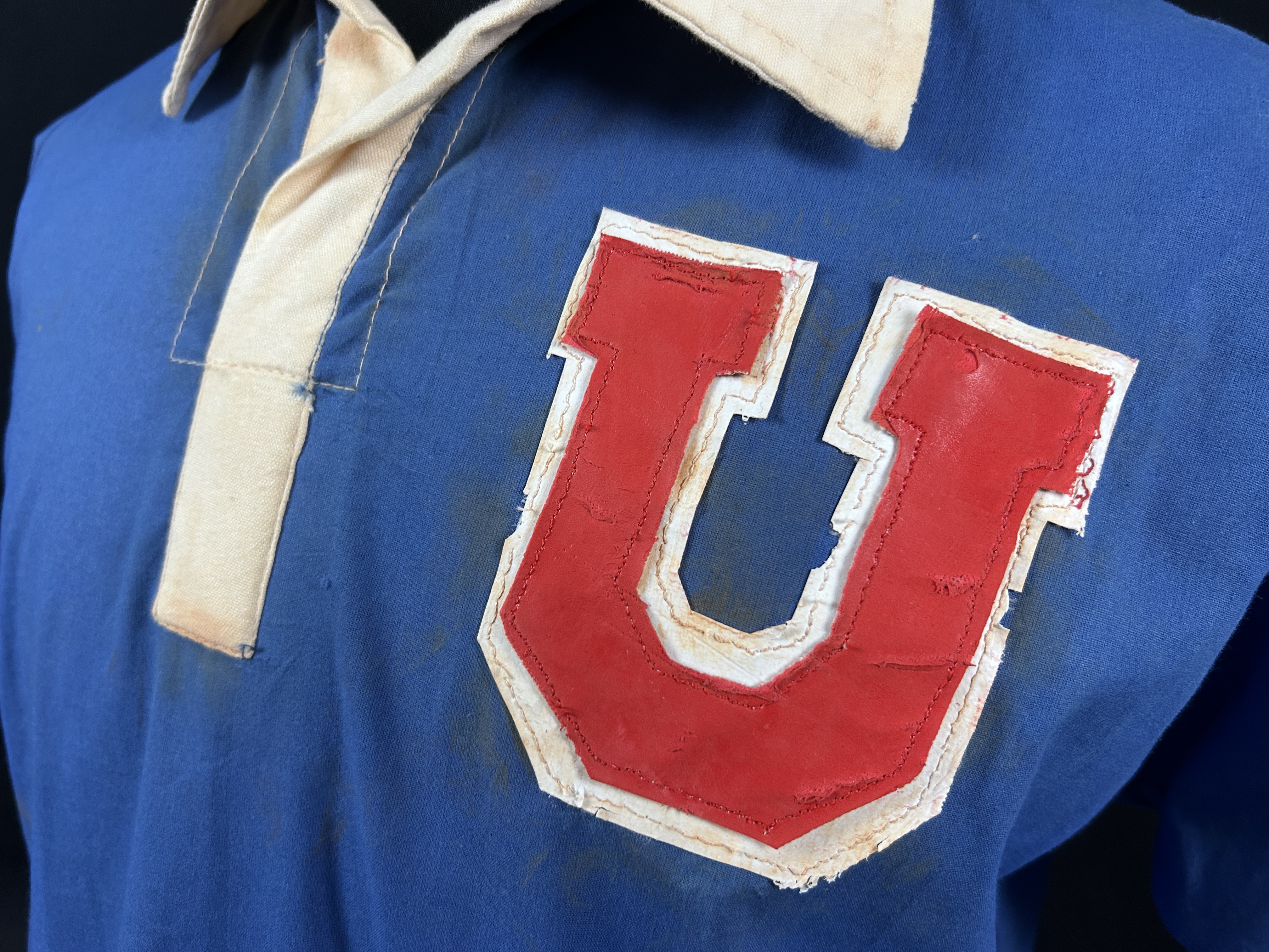 PROVENANCE: The granddaughter of former player Arsenio Valdez, certify that this Universidad de Chile short-sleeved jersey with the number 8 in leather was given to his grandfather by Chilean player Guillermo Yavar in 1970, after the match between Guarani and U de Chile in Asunción. His grandfather told us about this jersey many years ago, since it was always kept at home. Arsenio Valdés played in 14 matches for the Paraguay national football team from 1963 to 1970. He was also part of Paraguay's squad for the 1963 South American Championship.