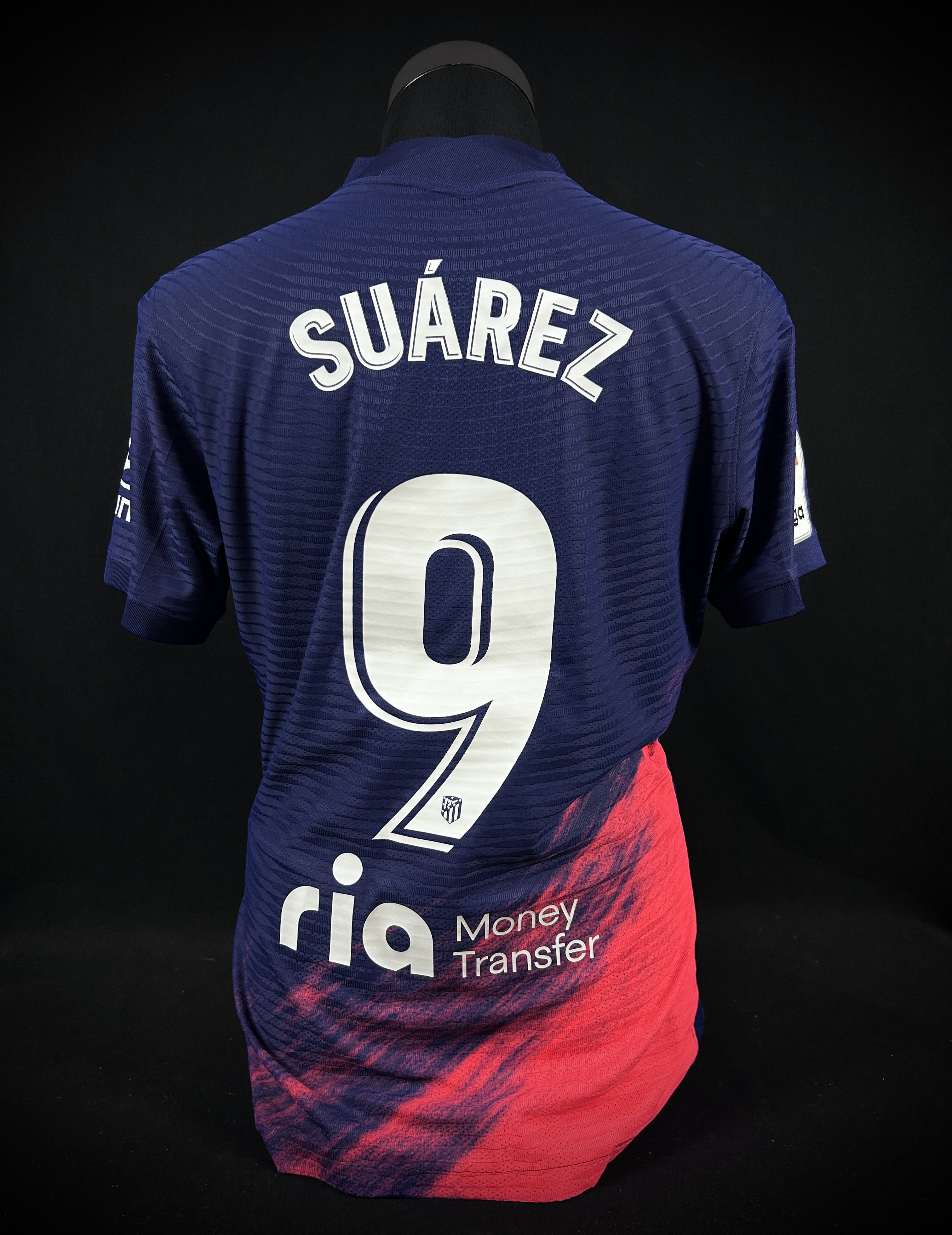 NOTE 1: Jersey worn on pitch during the second season at the club by "El Pistolero". In his whole stage at club Suarez scored 32 goals in 67 games reaching 1 amazing come back title.