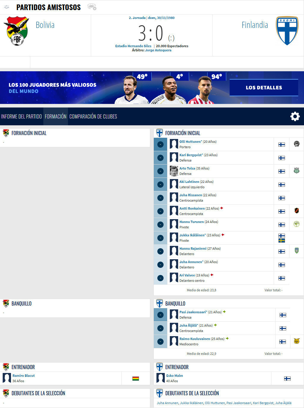 Date: 30/11/1980 | Hernaldo Siles Stadium | La Paz, Bolivia.