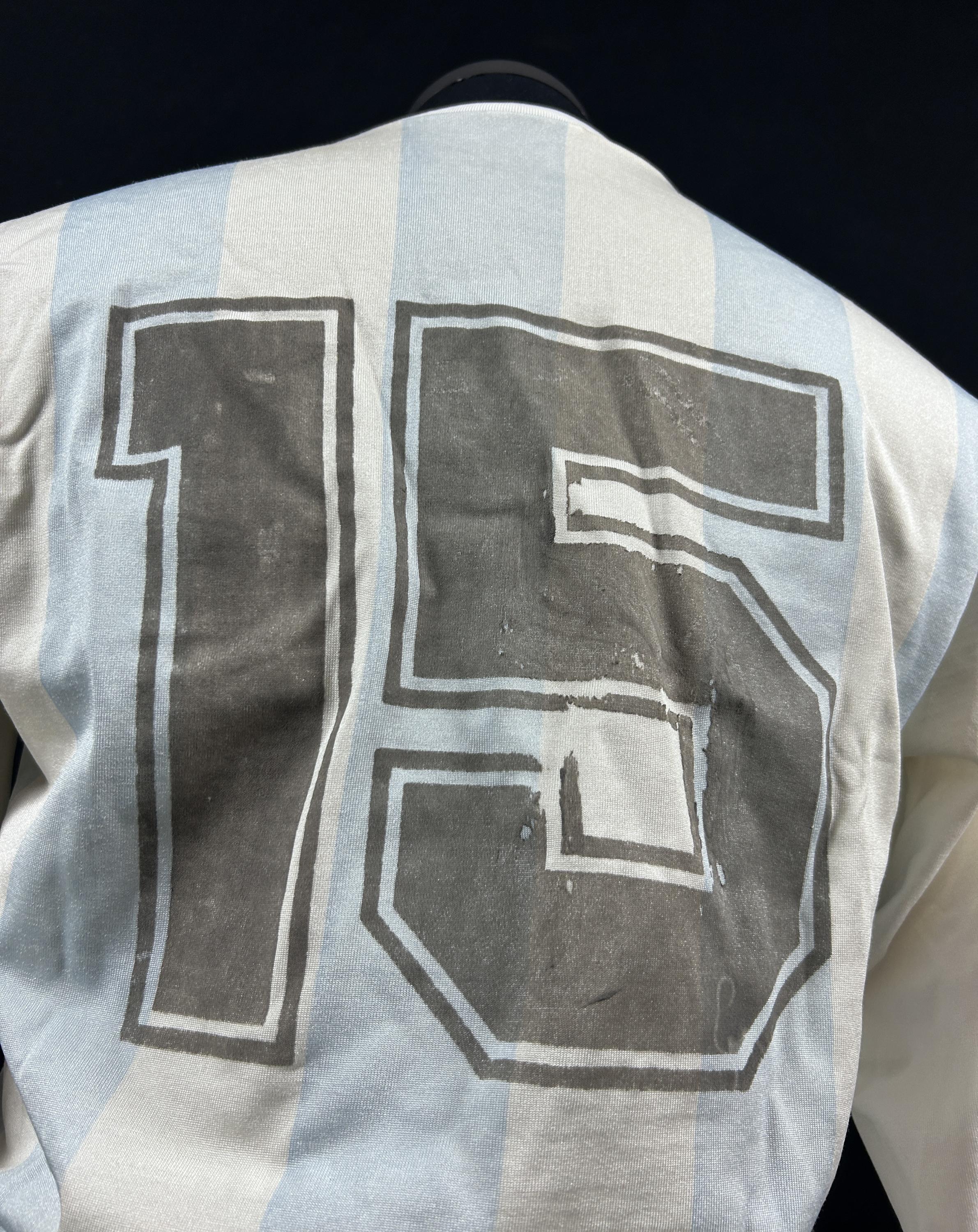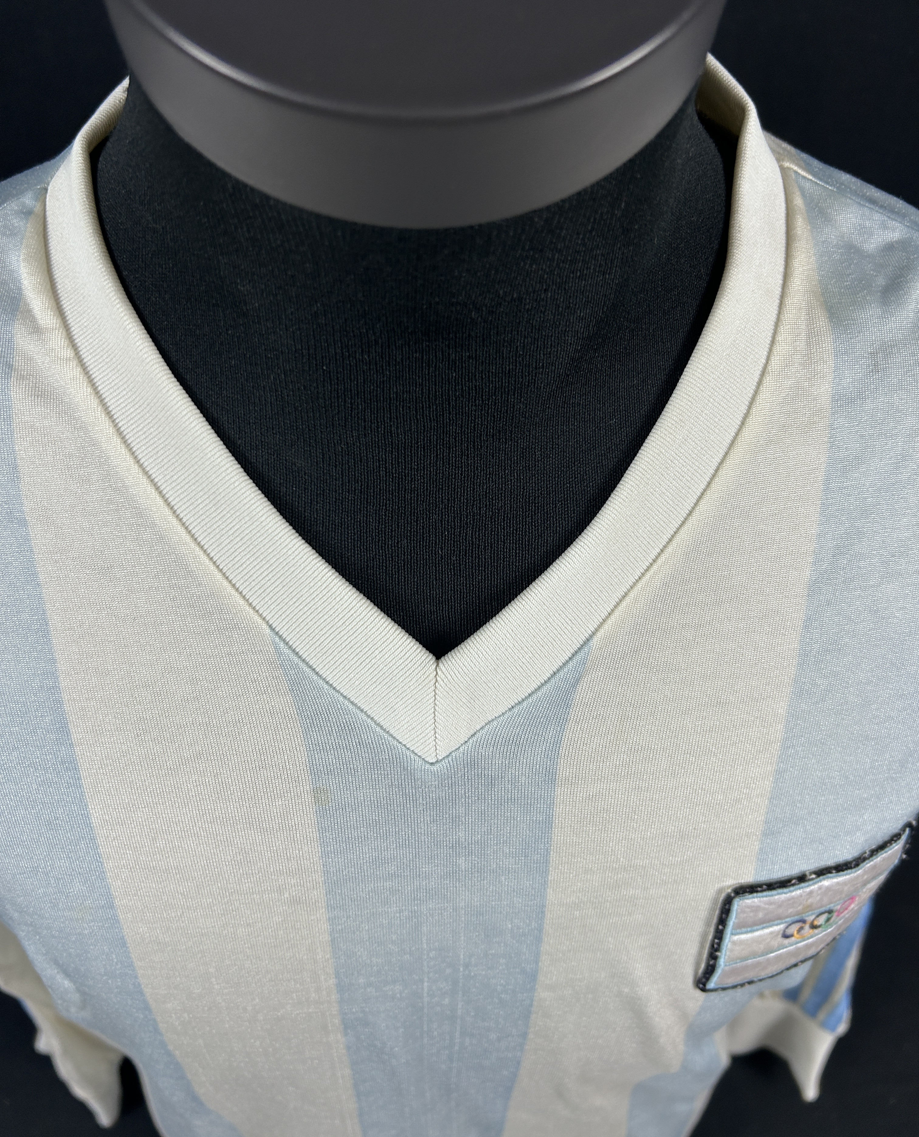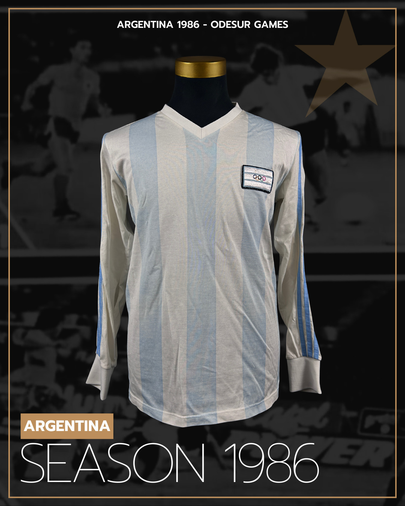 PROVENANCE: Jersey conly worn during the Odesur Games specifically on November 11th vs Perú, 1986 when the future champions worn long sleeved.