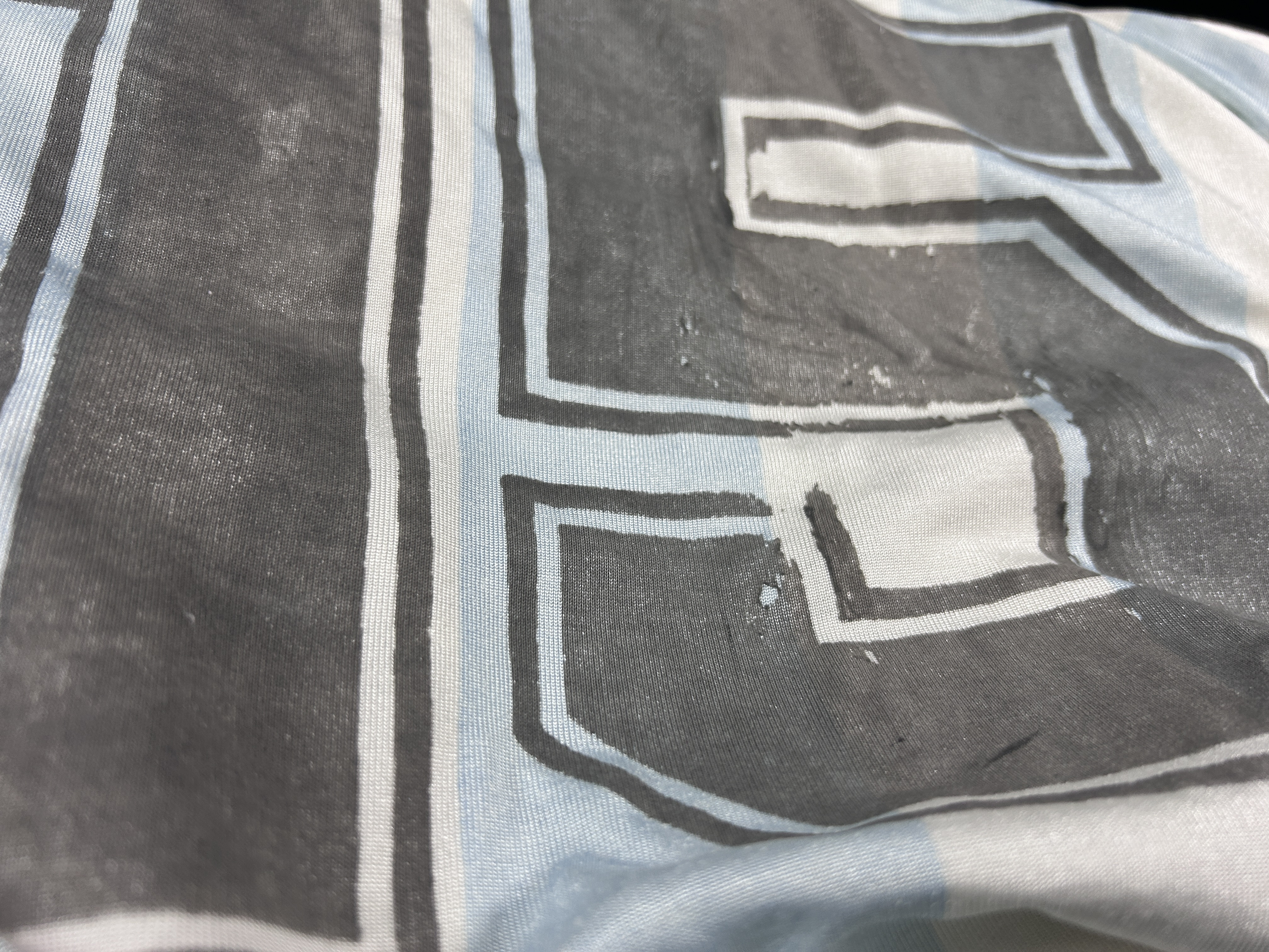 NOTYE 1: Missed Adidas logo damaged on front. Also about felt on the back number.