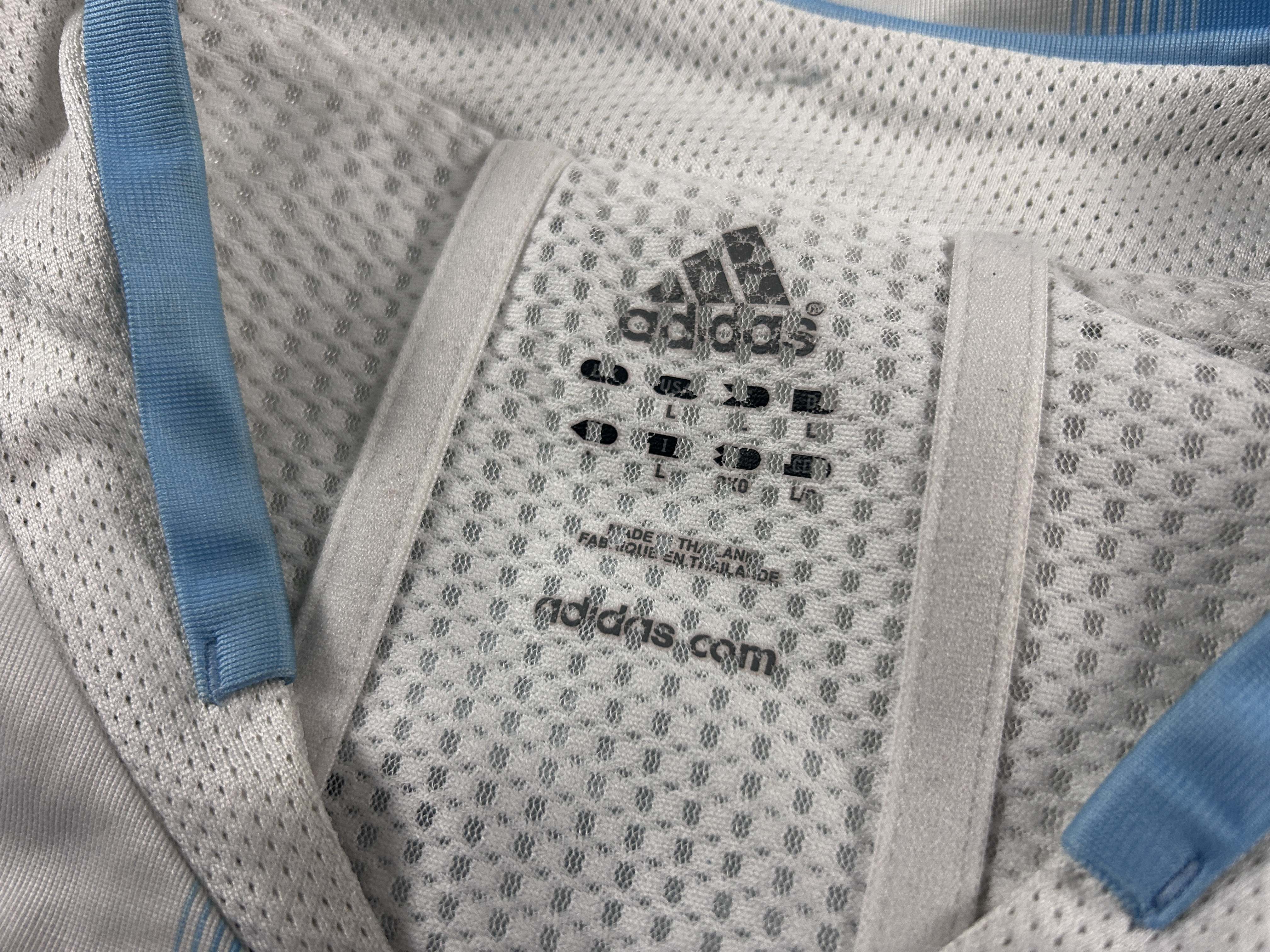 NOTE 1: FULL DUAL LAYER. One of the most wanted design in 2000's for national team, full dual layer issued to be worn by Román Riquelme. Very sought after long sleeved design with front and back number in "plastisol" material with transparent borderline, feature only for player versions.