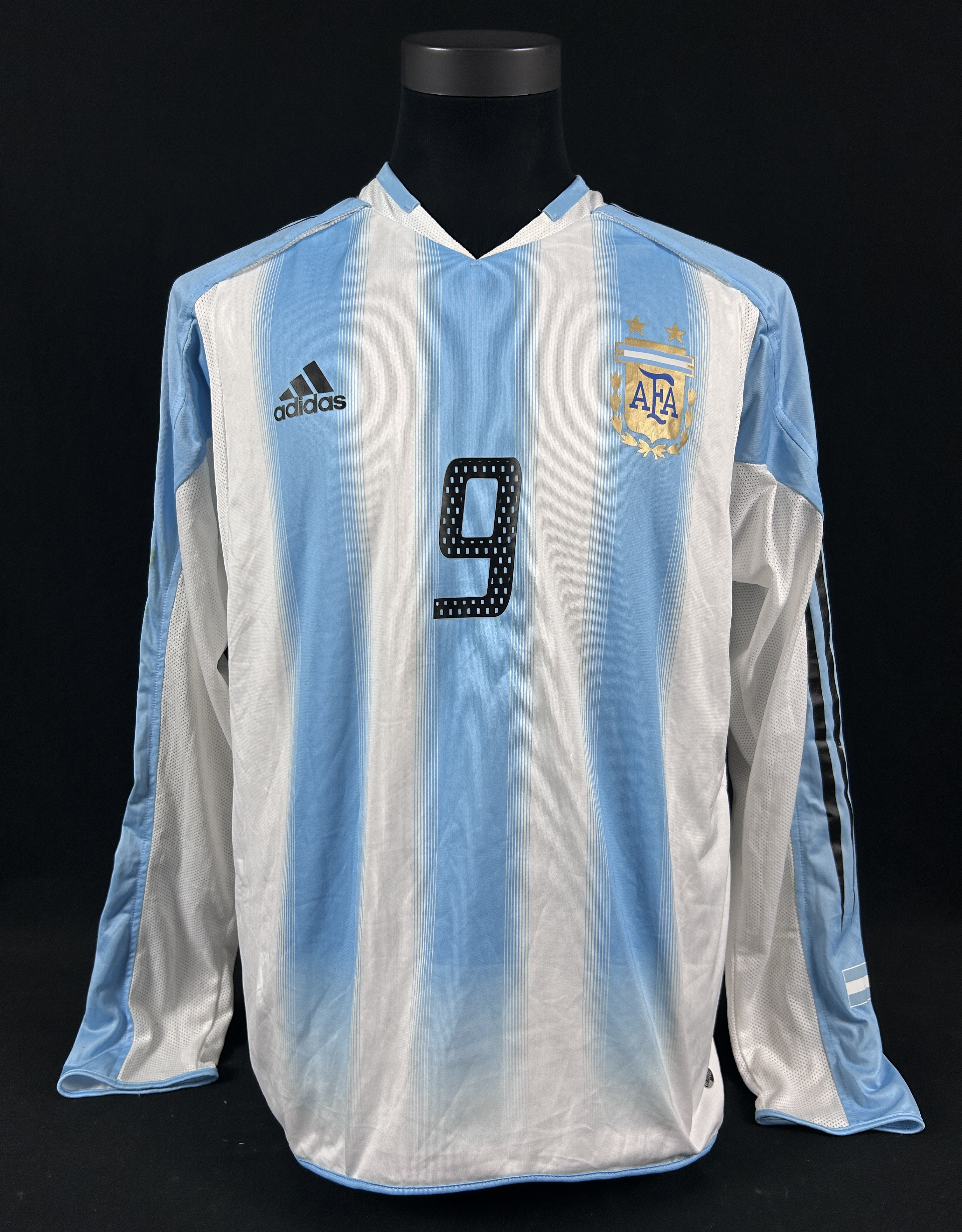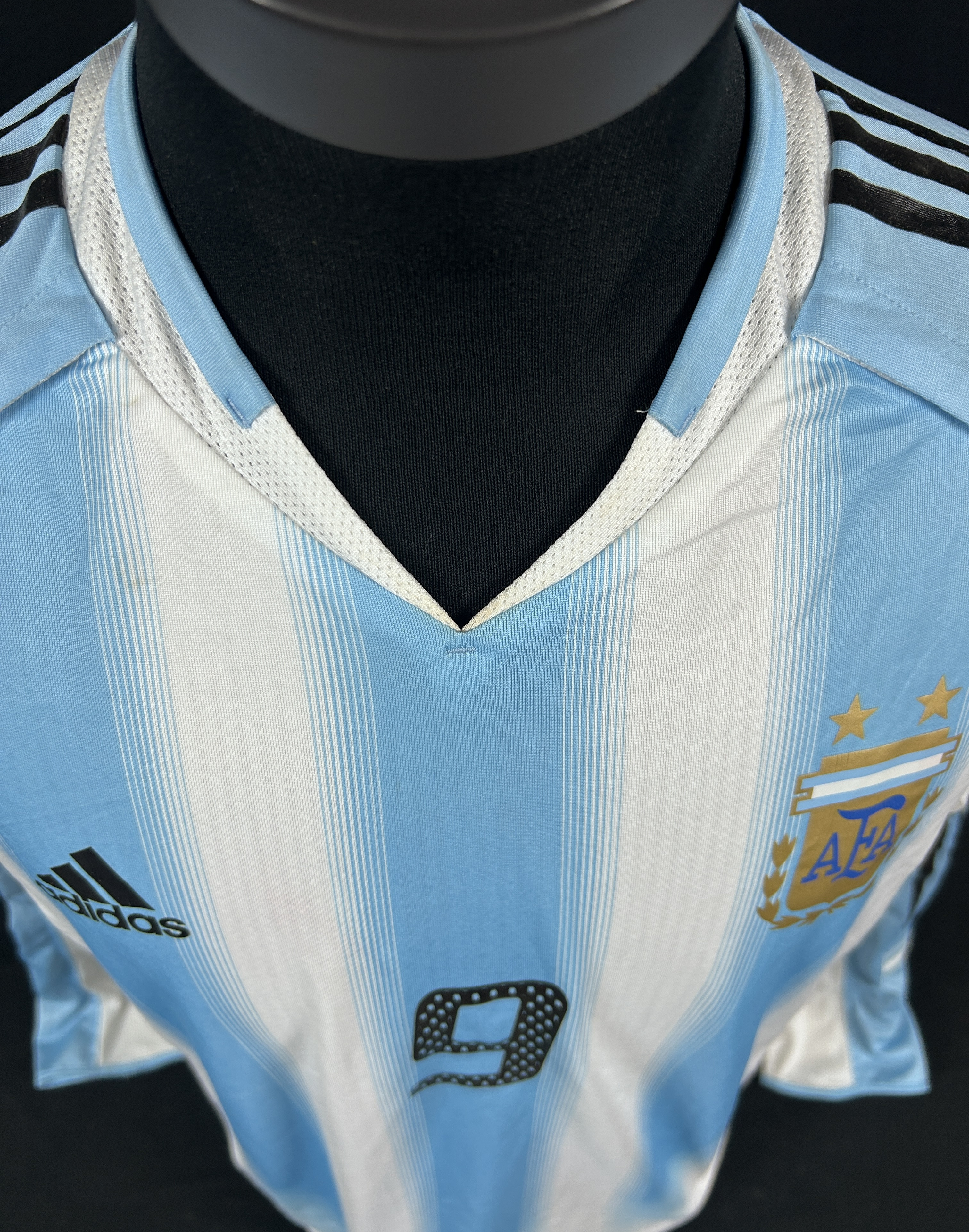 NOTE 1: YOUR CHANCE TO HAVE A REAL KNOWN GAME JERSEY OF "EL APACHE". Full dual layer jersey worn on pitch on October 10th, 2004 for 2006 World Cup Qualifiers and swapped after the match by argentinan legend Carlos Tevez with Rafael Olarra. Amazing design full double layer very sought after for any match worn collector.