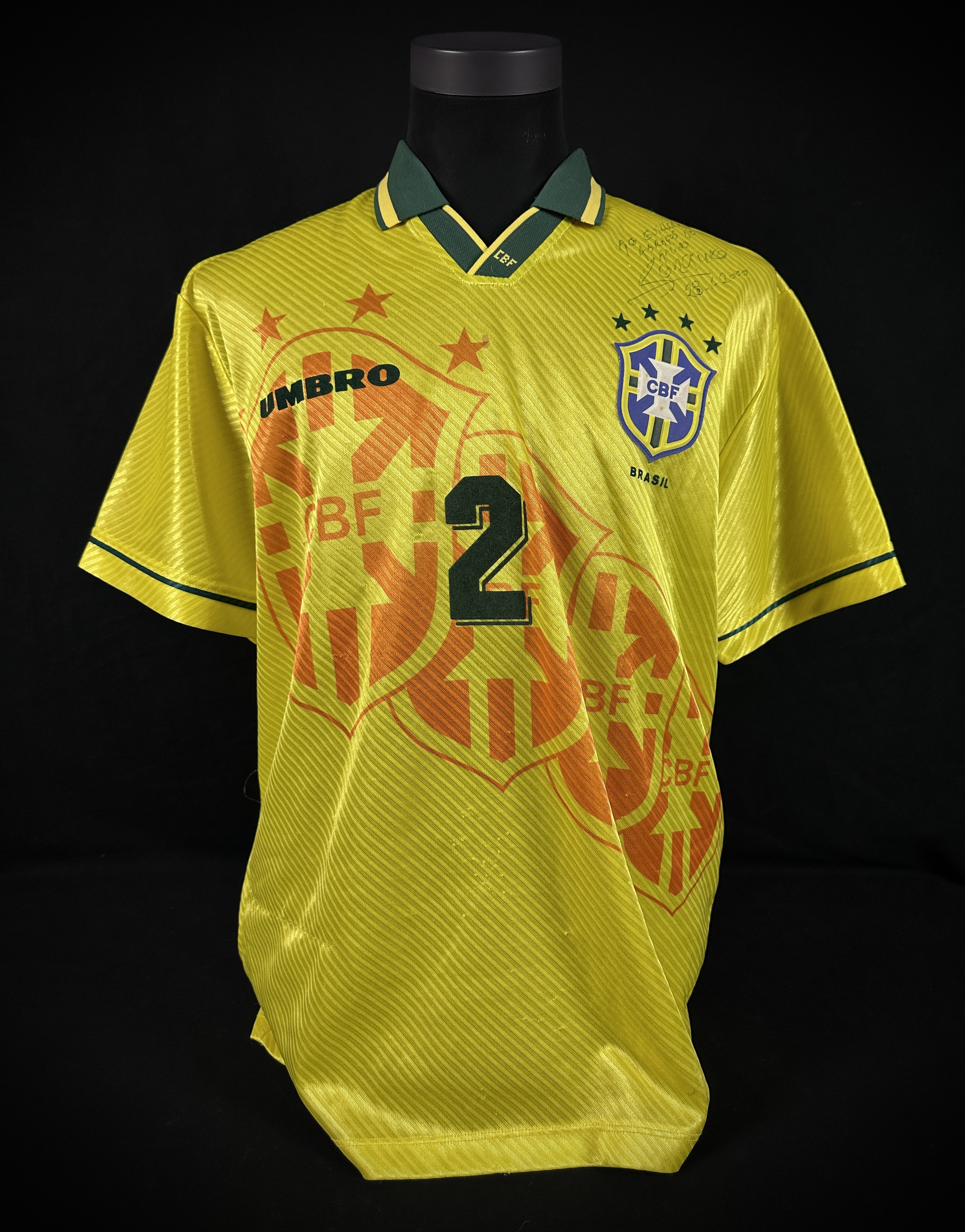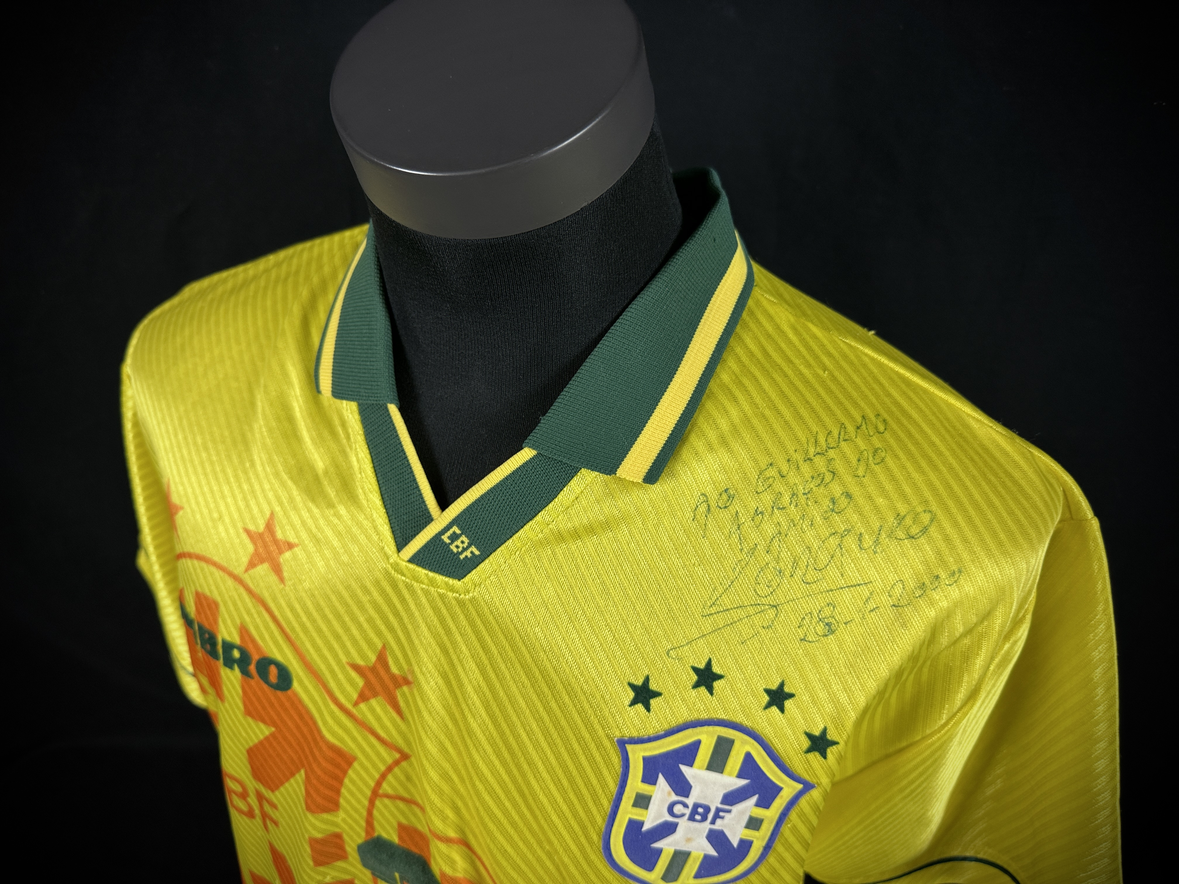 NOTE 1: SIGNED. Jersey carries the small size signature on the front left from Jorginho (former Brazilian defender legend) personalized to Guillerme.
