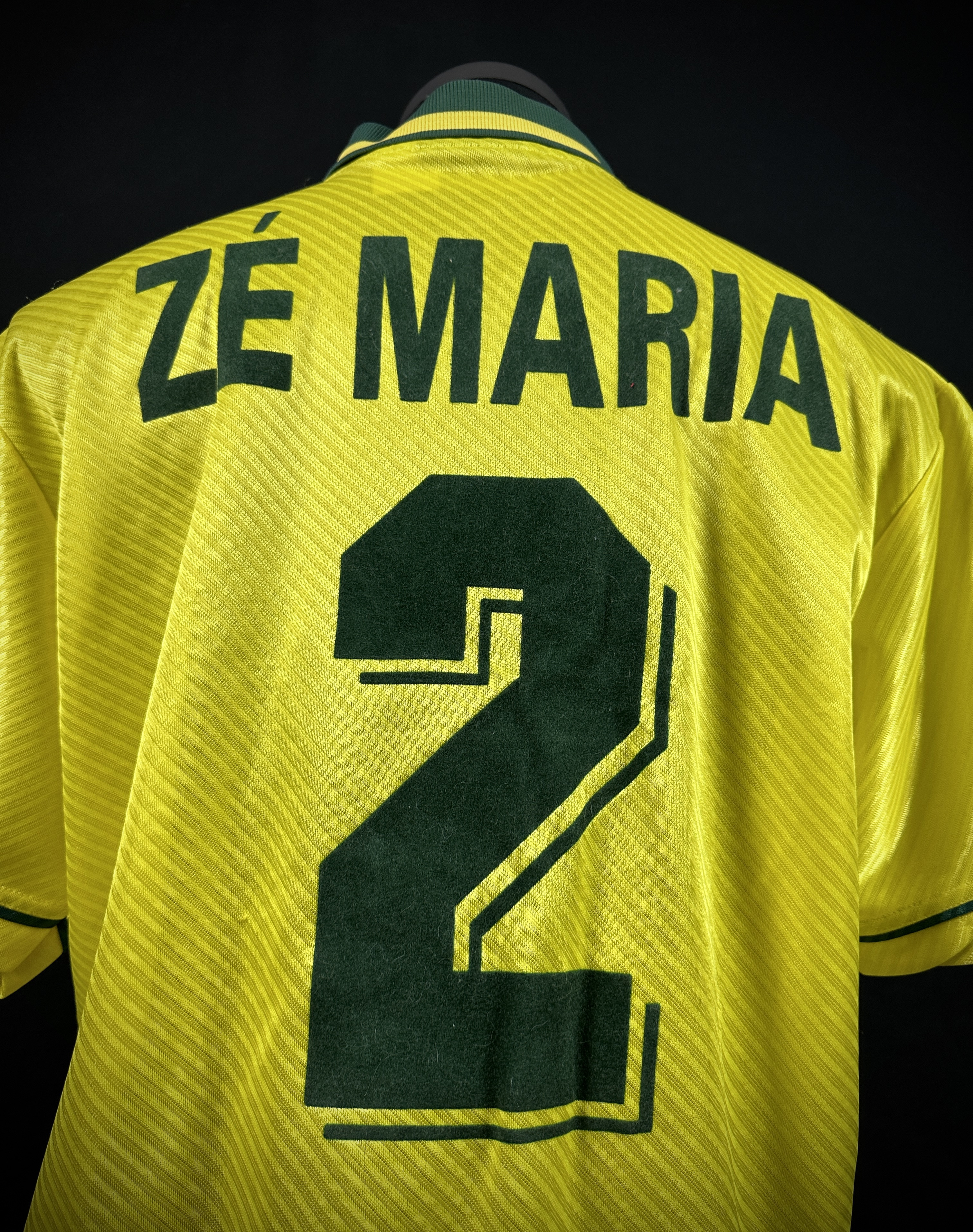 NOTE 2: Back name painted trough the jersey with felt material on it. Only for kitroom . Same design with back name was worn by Zé María in 1996 Olympic Games but with sewn team shield & stars version. So, jersey beleived to be worn in friendly games prior the Olympic Games.