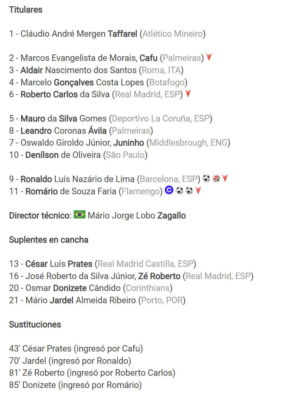 NOTE 1: Jersey was kept until today in pristine conditions at player place. Ronaldo played until 70' minutes being remplaced by Jardel , after scoring twice during the match being partner with the super star Romario. (4-0) Ronaldo came back on the field after final match to swapp it as was Fuentes request during the game.