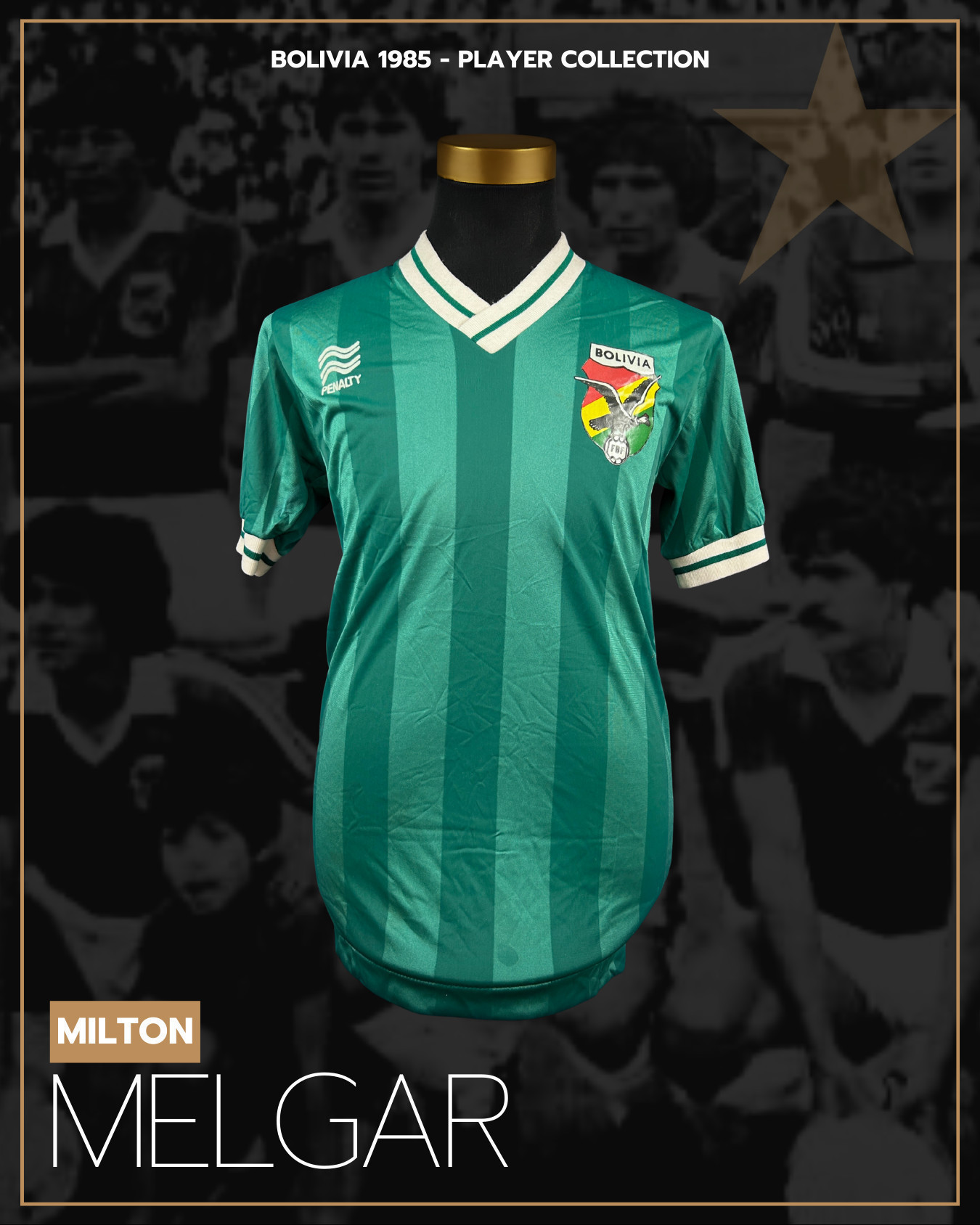 "Maravilla" Melgar had 89 caps with national team being captain and a historic player, considered one of the bolivian greatest, Melgar had the historic participation for his national team in 1994 USA World Cup, after a brilliant qualifiers. Also attended 7 America Cups, and 5 World Cup qualifiers. Even is the only bolivian player that played in the two argentinian giants Boca Juniors and River Plate. A complete athlete for a complete collection.