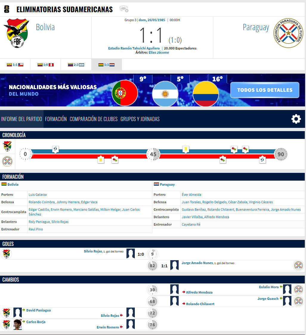 Team: BOLIVIA NATIONAL TEAM #8 to 30/06/1985