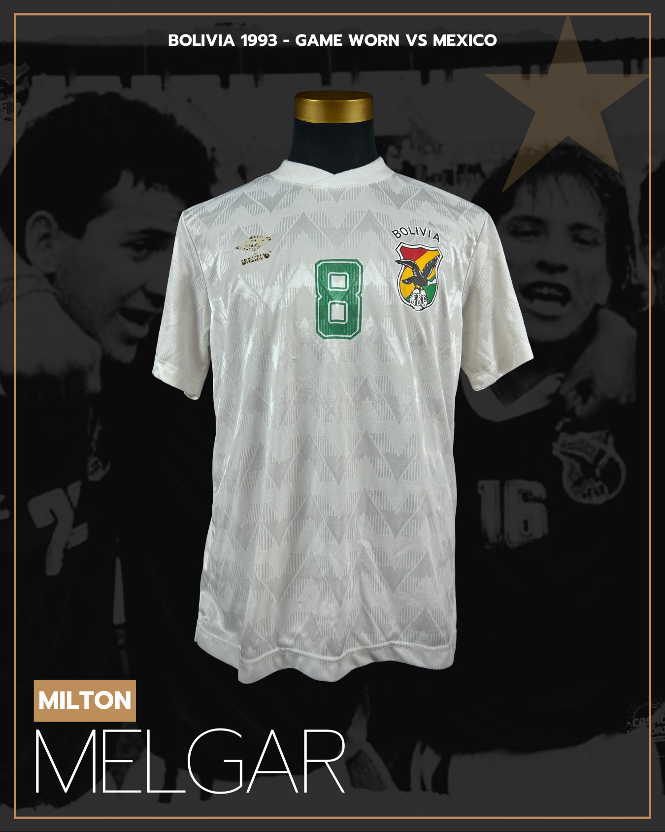 PROVENANCE: For first time ever the collection of former bolivian & international prolific midfielder Milton Melgar is available to be auctioned worldwide with a provenance never seen before. All this exclusive auctioned pieces comes from his personal collection and were worn by the player himself on pitch, swapped after known matches or gifted to him during his 18 years of professional career and then storaged until today when they are up for auction for worldwide fans and museums .