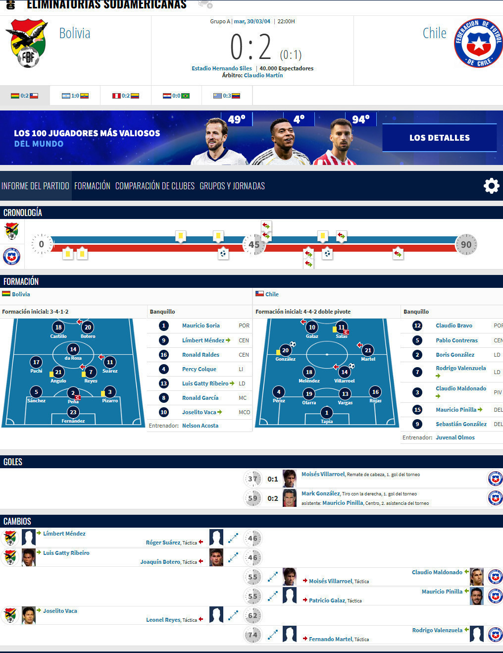 Date: 30/03/2004 | Hernando Siles Stadium | La Paz, Bolivia.
