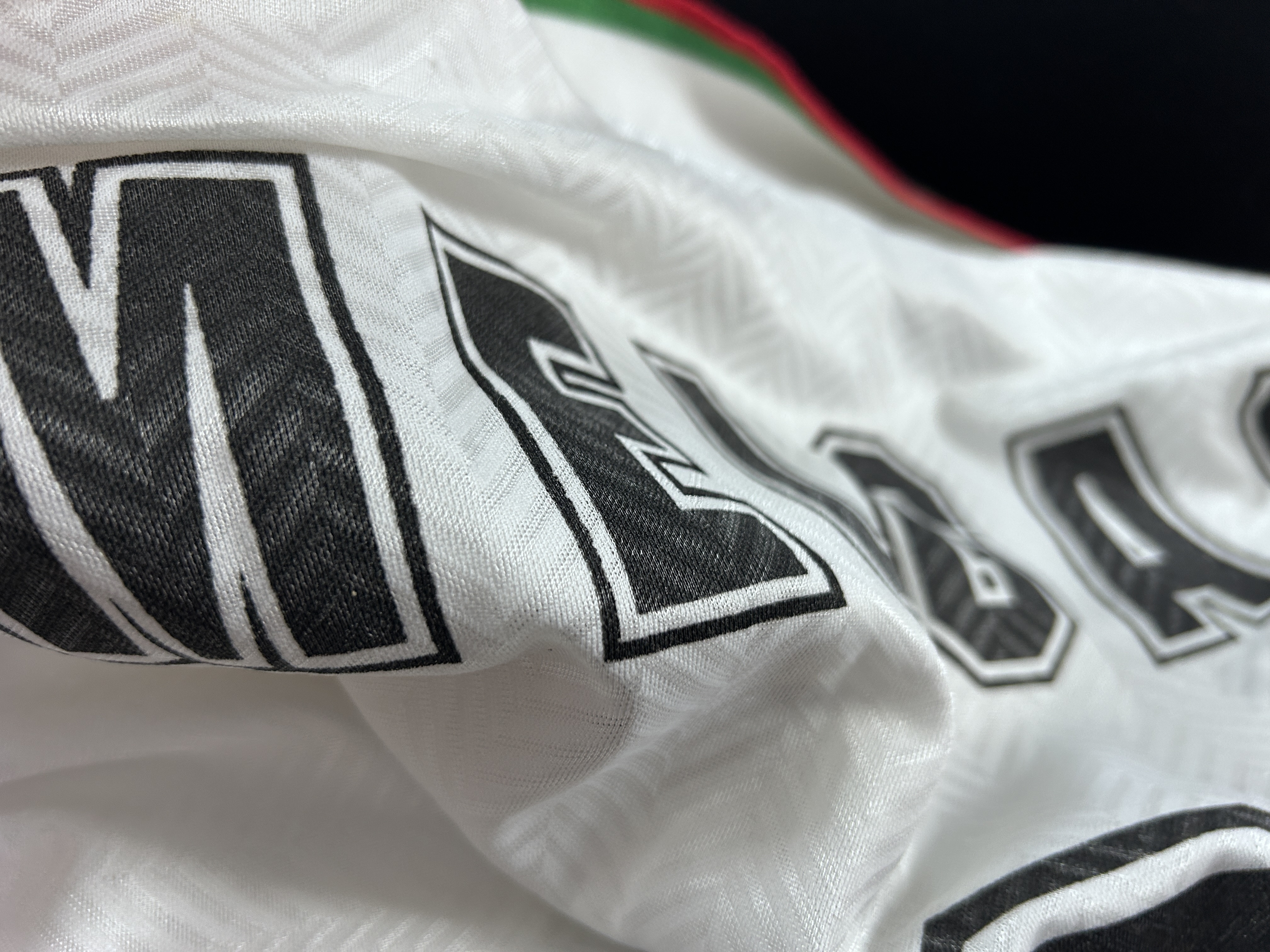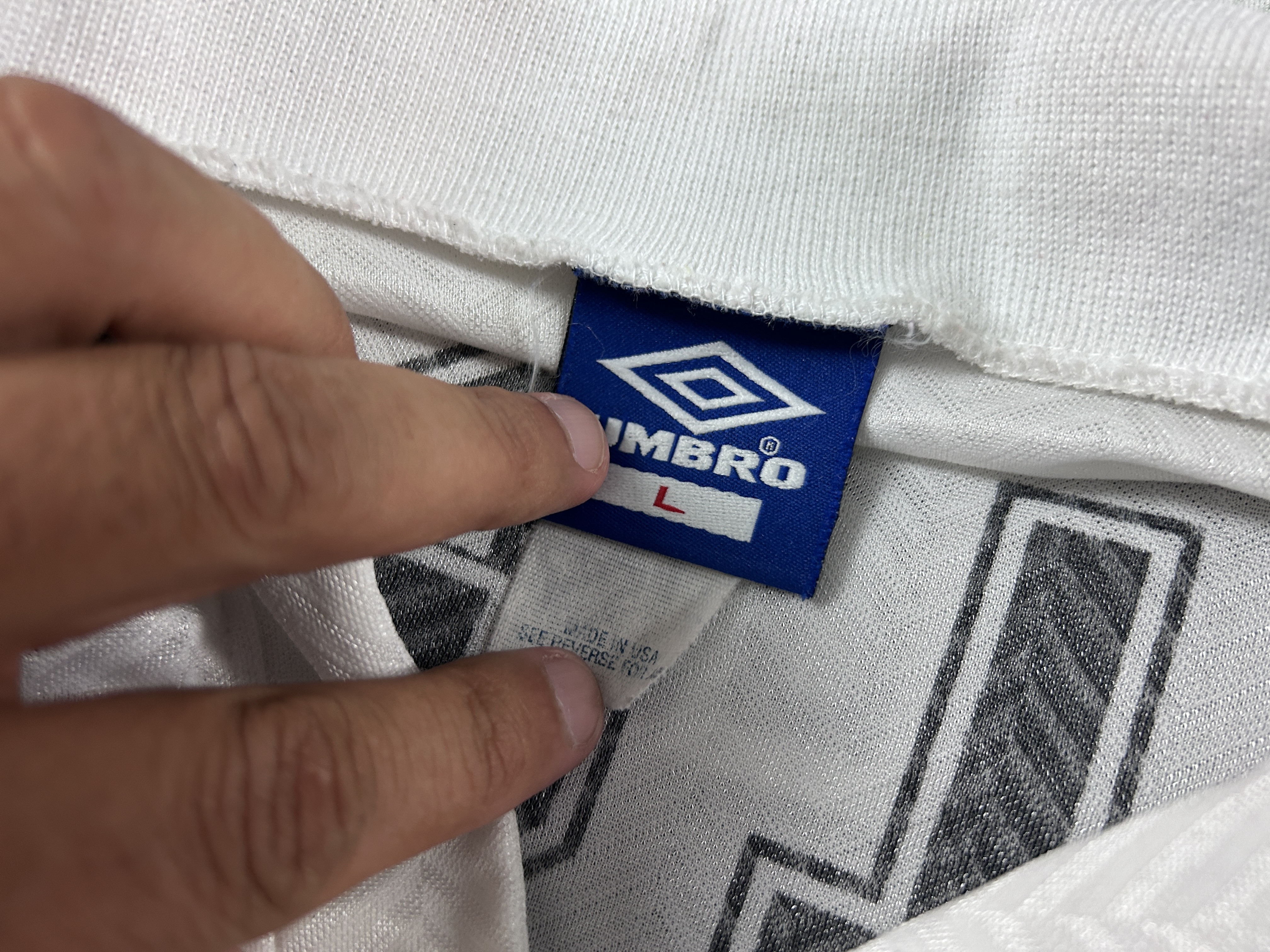 NOTE 2: EXCLUSIVE BACK NAME VERSION. Unique Umbro version with painted back name following the FIFA regulations for the World Cup. Same white design was also used in a friendly game just days before to the World Cup against Switzerland, but without back name.