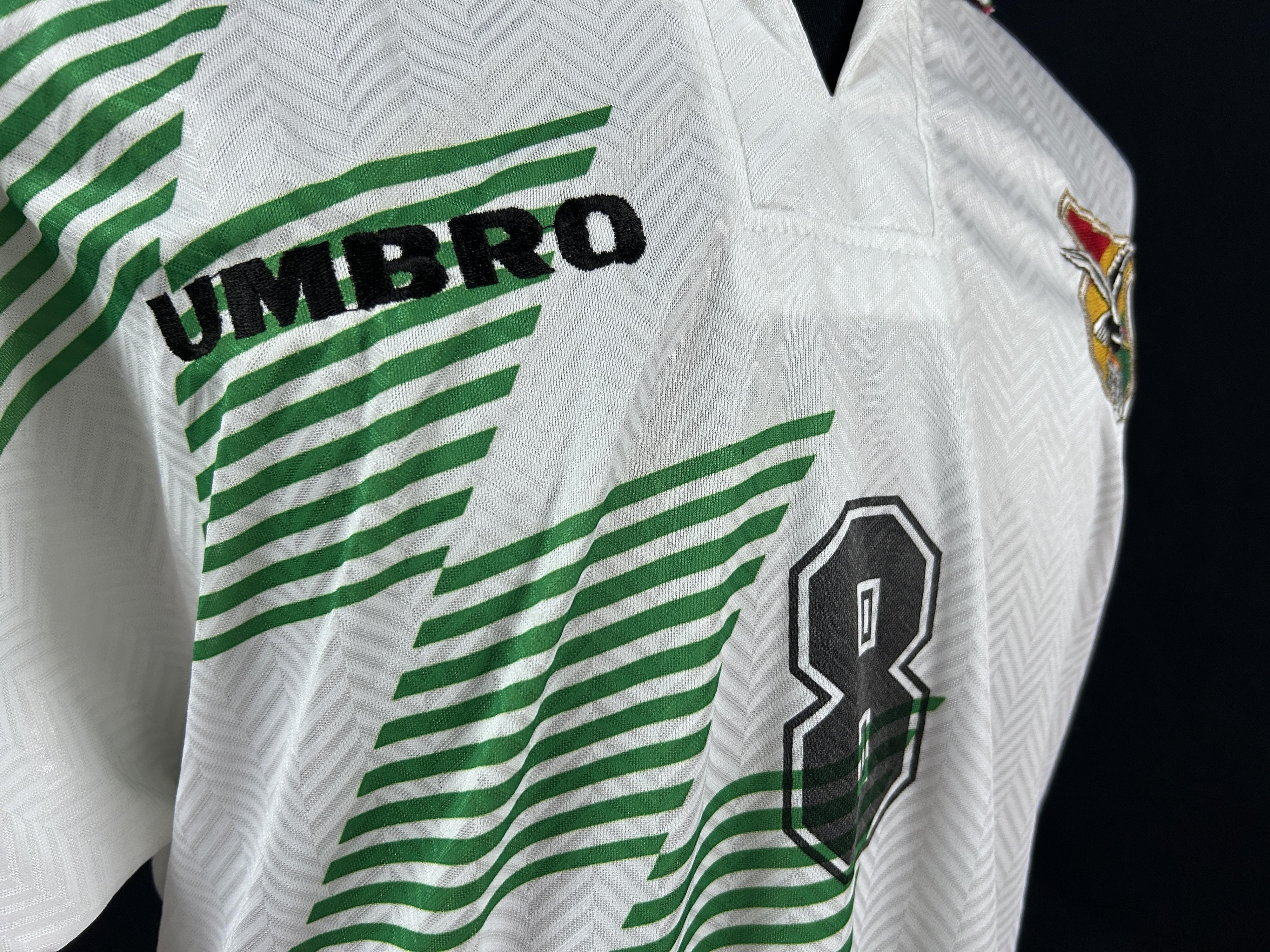 NOTE 1: RARE ISSUED AWAY VERSION. Exclusive and very sought after World Cup issued jersey for the Bolivian team ready to be used during his first participacion in World Cup ever. Finally Bolivia worn during its 3 games green home kit against Germany, South Corea and Spain, so this auctioned jersey is an unused spare direct from kitroom.
