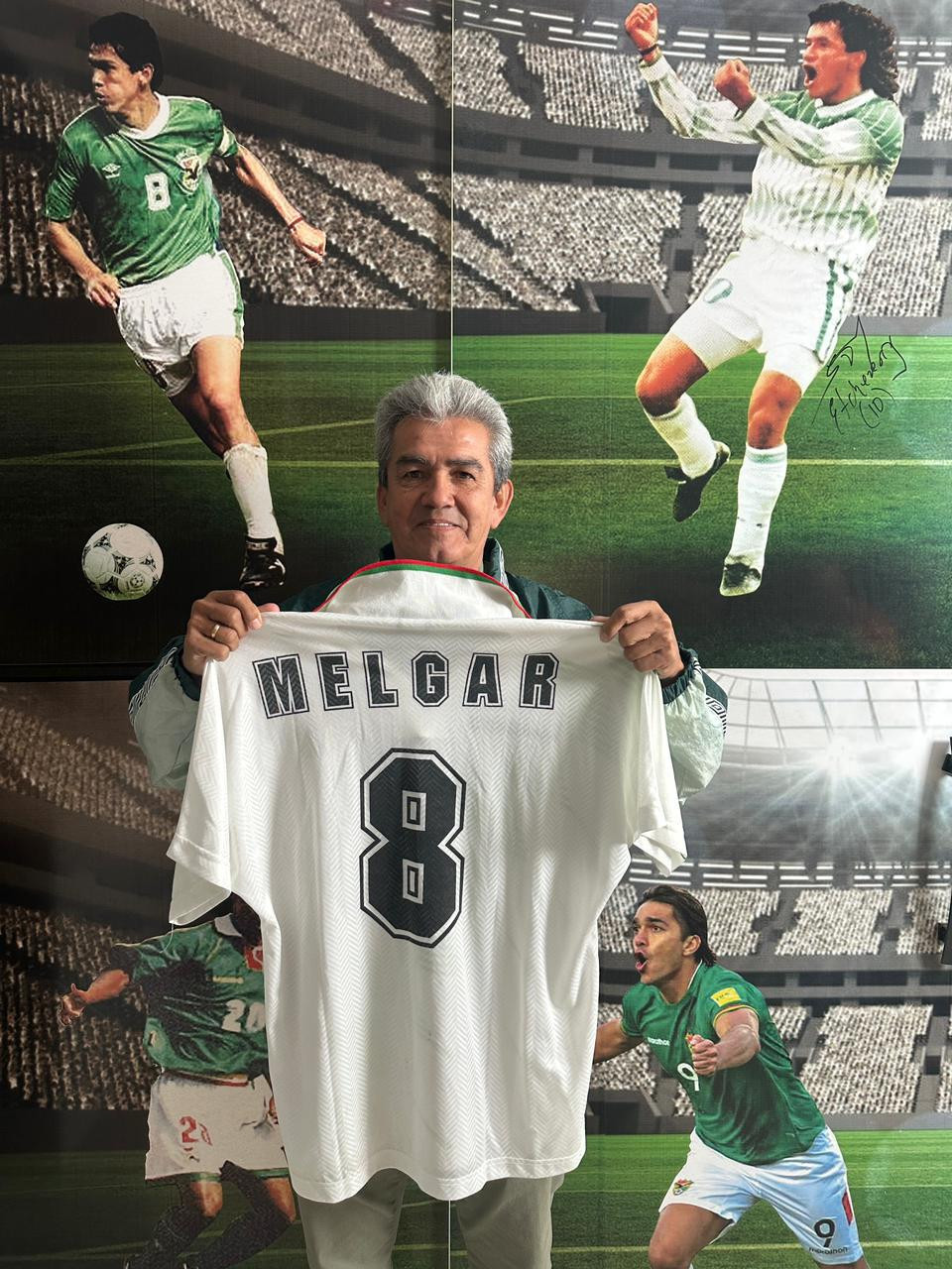 "Maravilla" Melgar had 89 caps with national team being captain and a historic player, considered one of the bolivian greatest, Melgar had the historic participation for his national team in 1994 USA World Cup, after a brilliant qualifiers. Also attended 7 America Cups, and 5 World Cup qualifiers. Even is the only bolivian player that played in the two argentinian giants Boca Juniors and River Plate. A complete athlete for a complete collection.
