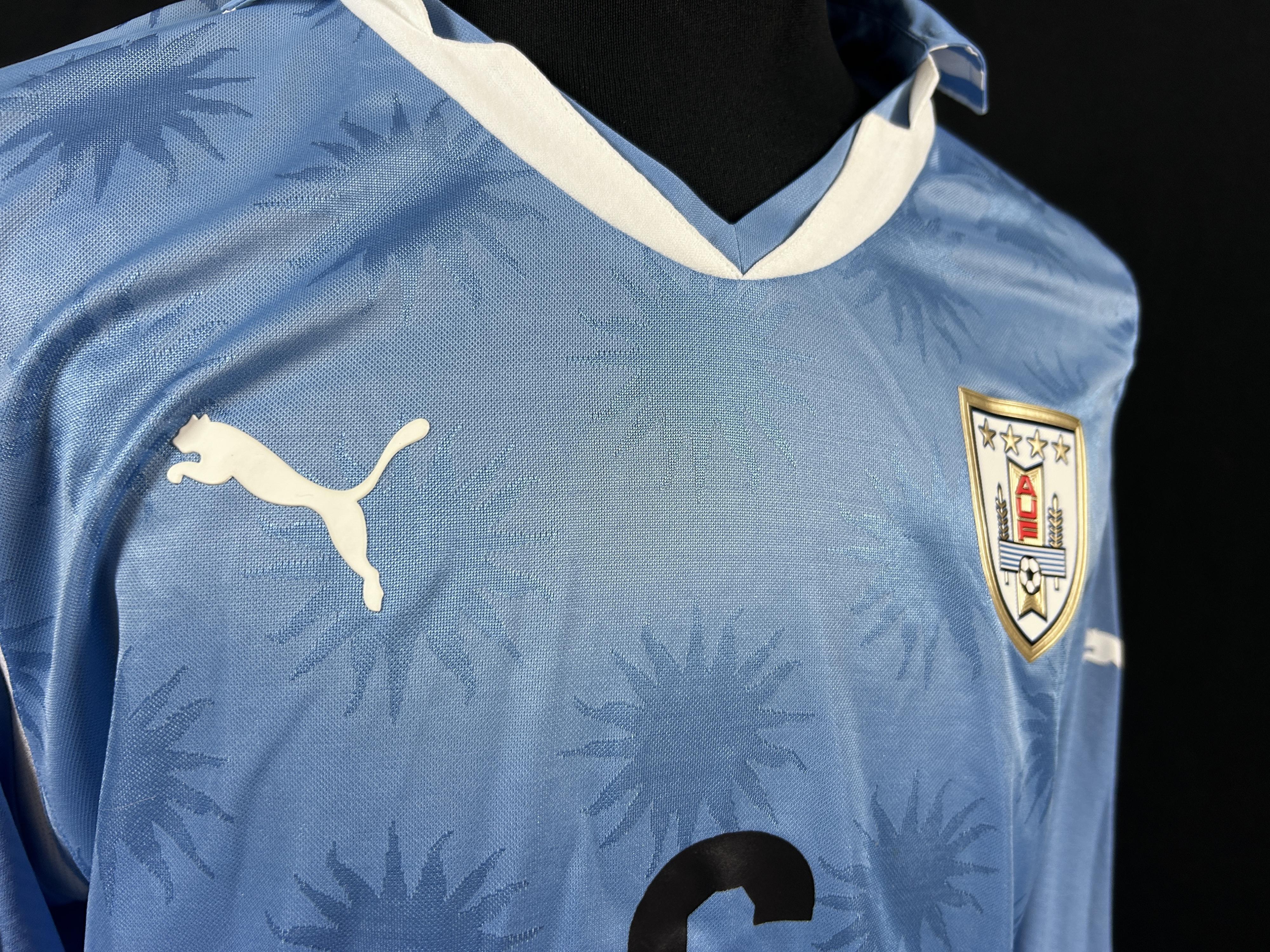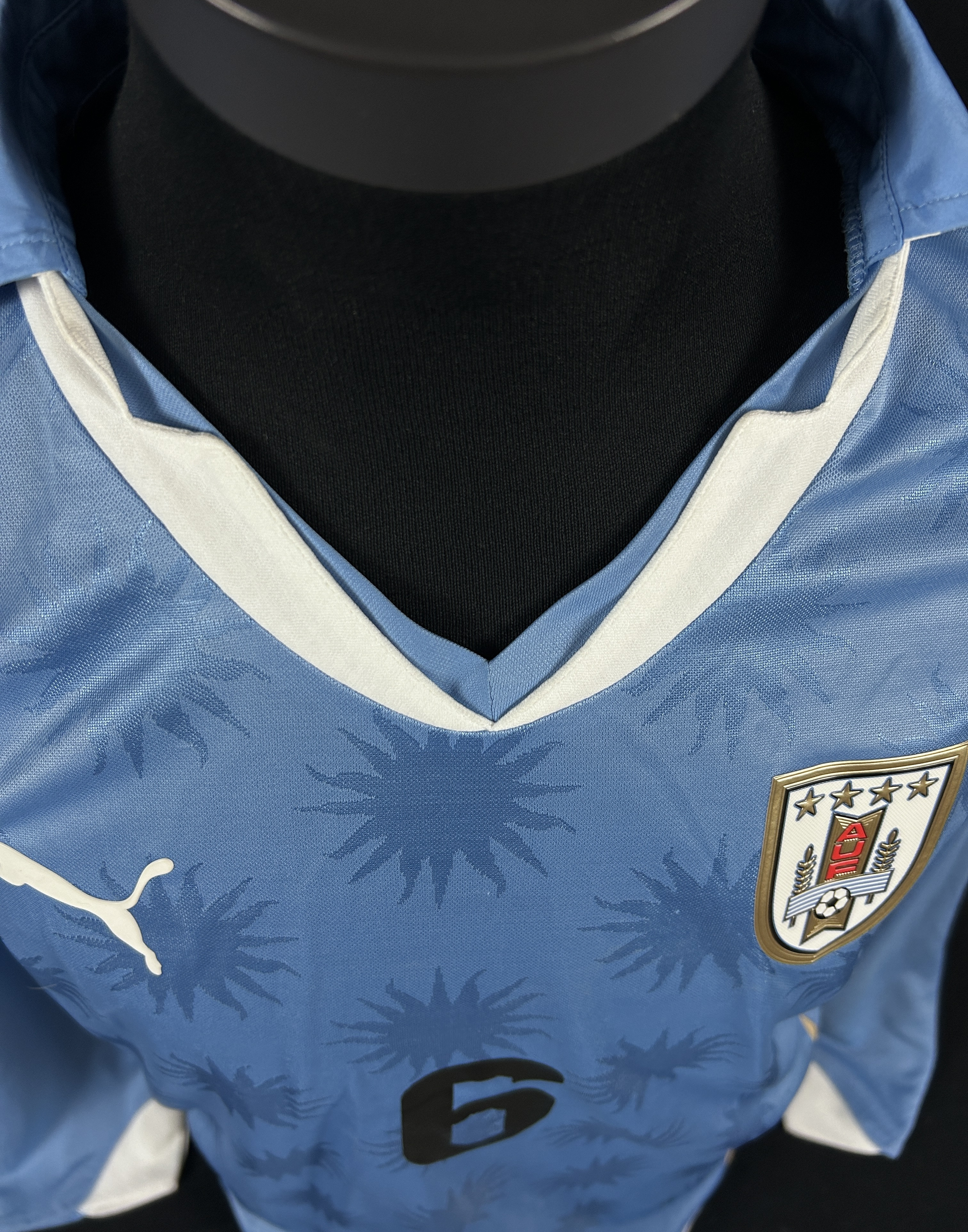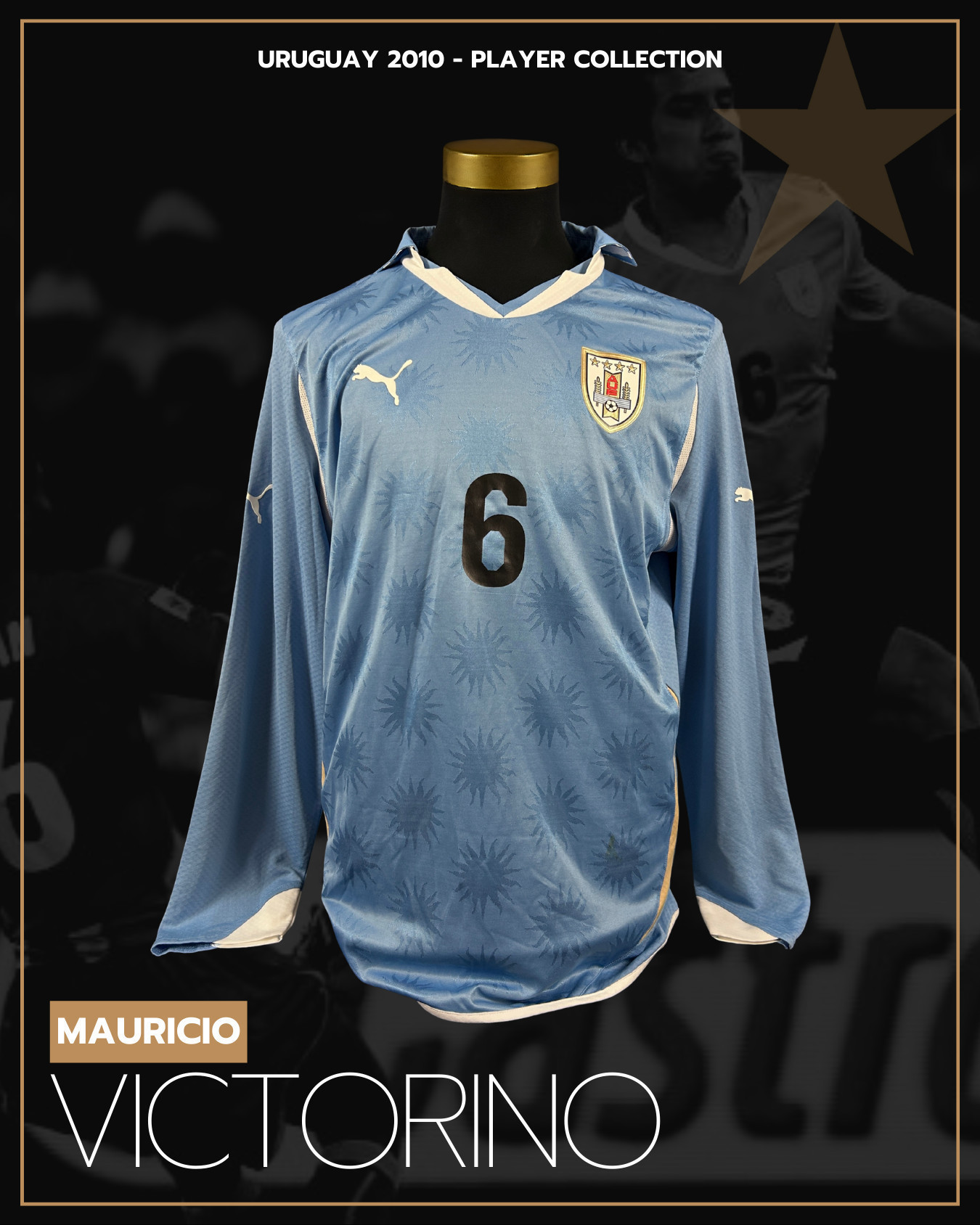 NOTE 2: So Jersey issued from kitroom to the player and same player version than the one that Victorino worn in the World Cup when they get fouth place. During tournament Uruguay worn only short sleeves.