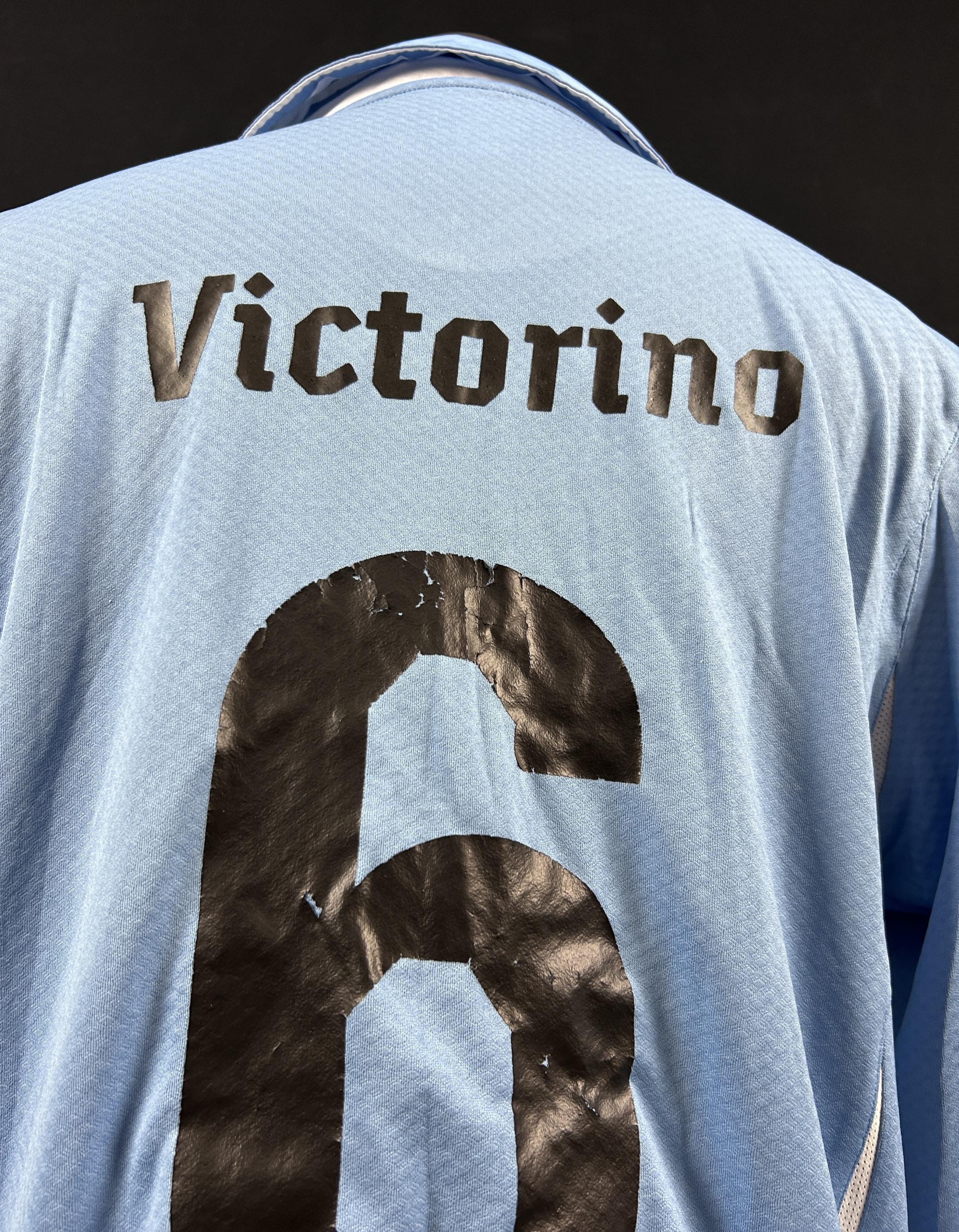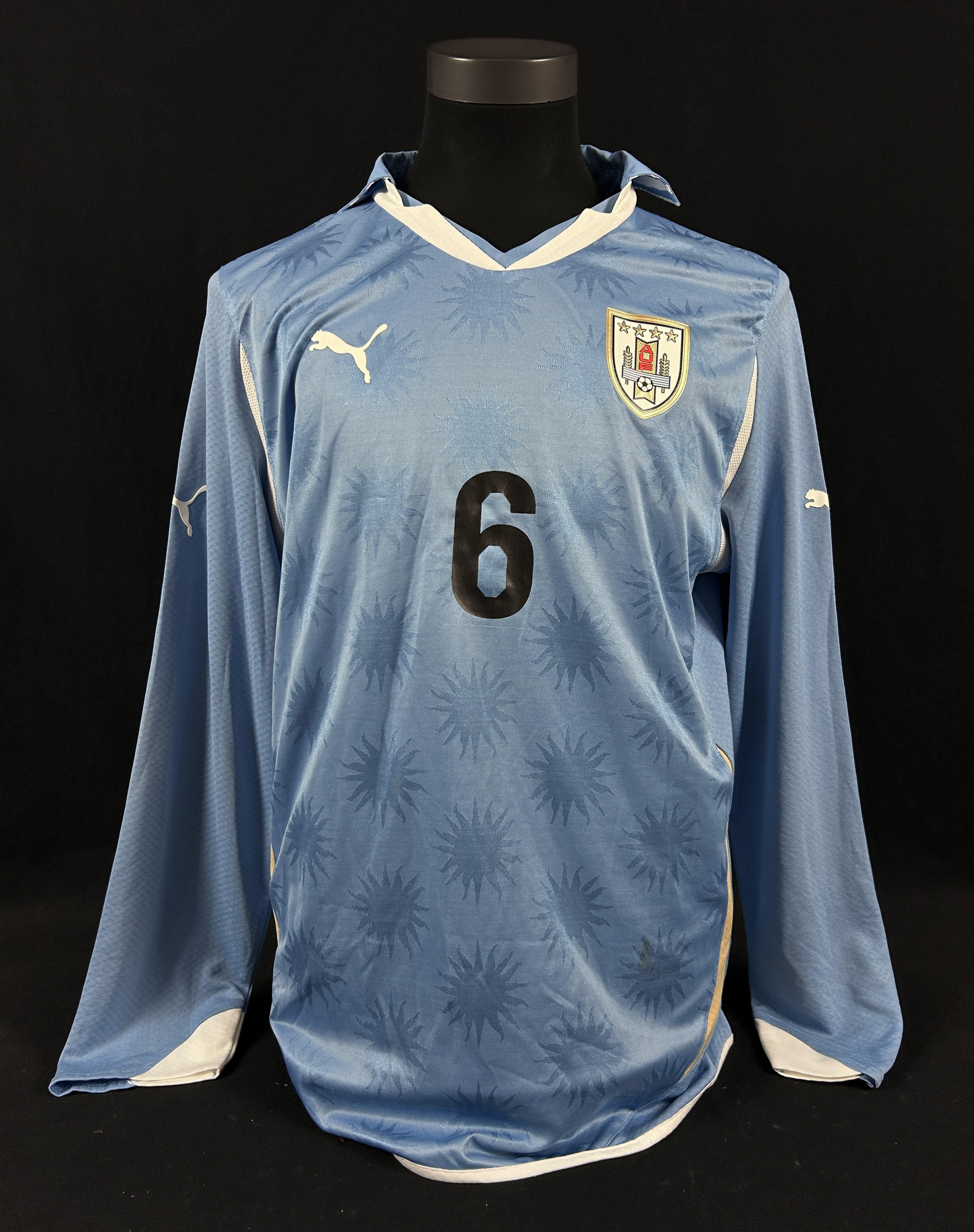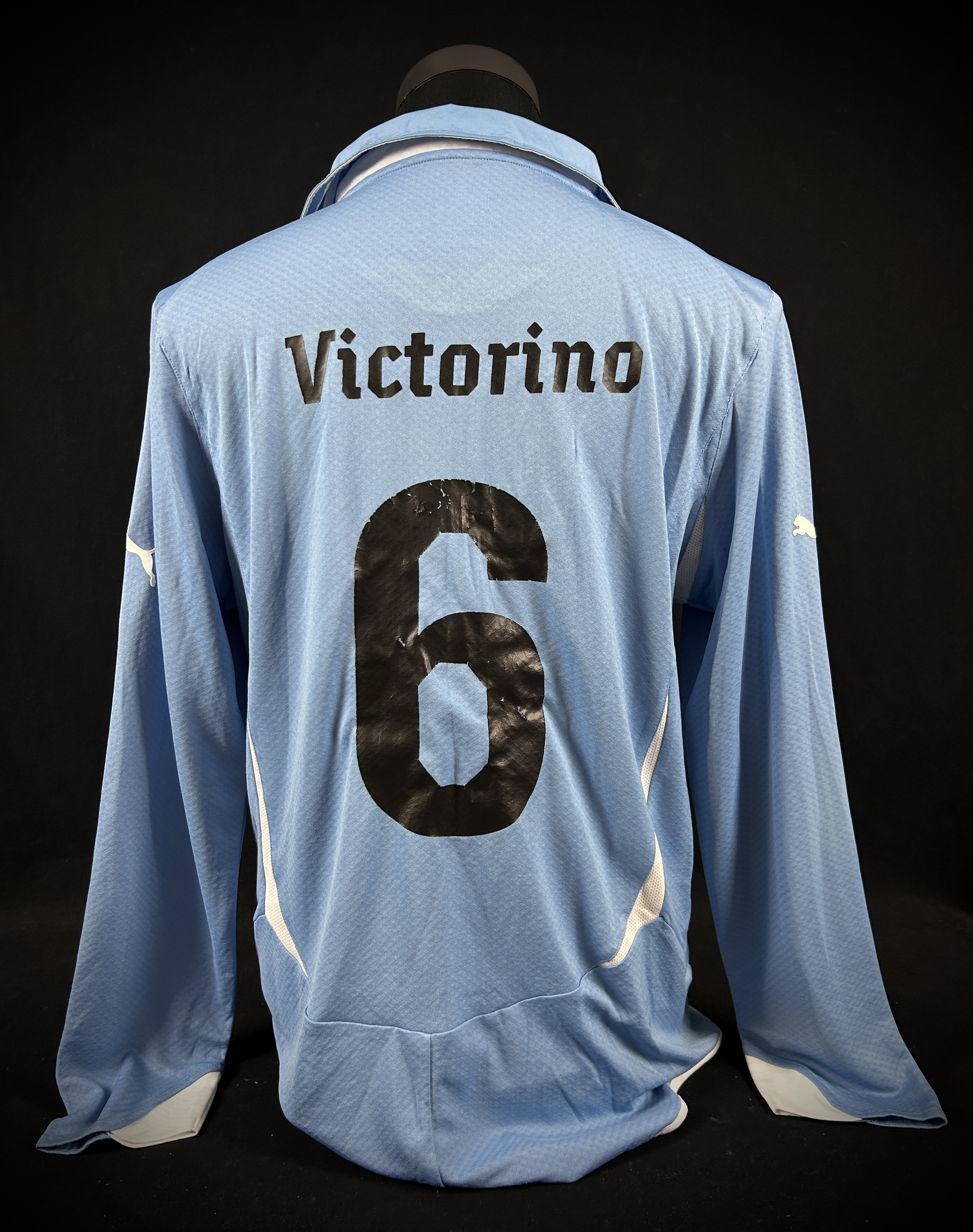 NOTE 2: So Jersey issued from kitroom to the player and same player version than the one that Victorino worn in the World Cup when they get fouth place. During tournament Uruguay worn only short sleeves.