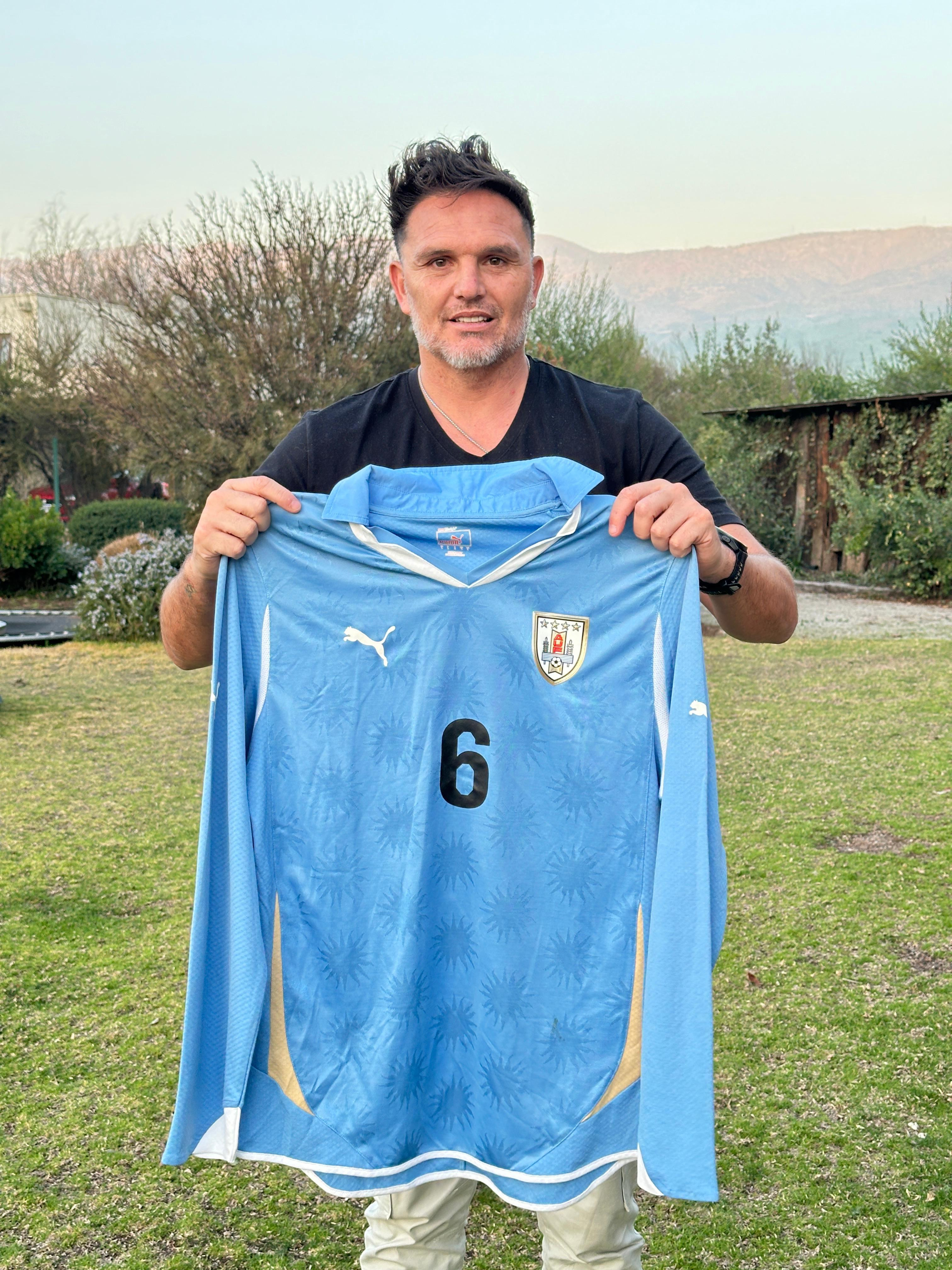 NOTE 1: As related by player provenance , jersey gifted by uruguayan defender Mauricio Victorino to Rafel Olarra just weeks before the World Cup in Southafrica due their friendship being teammates and friends playing in Universidad de Chile.