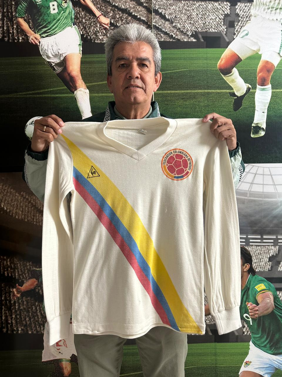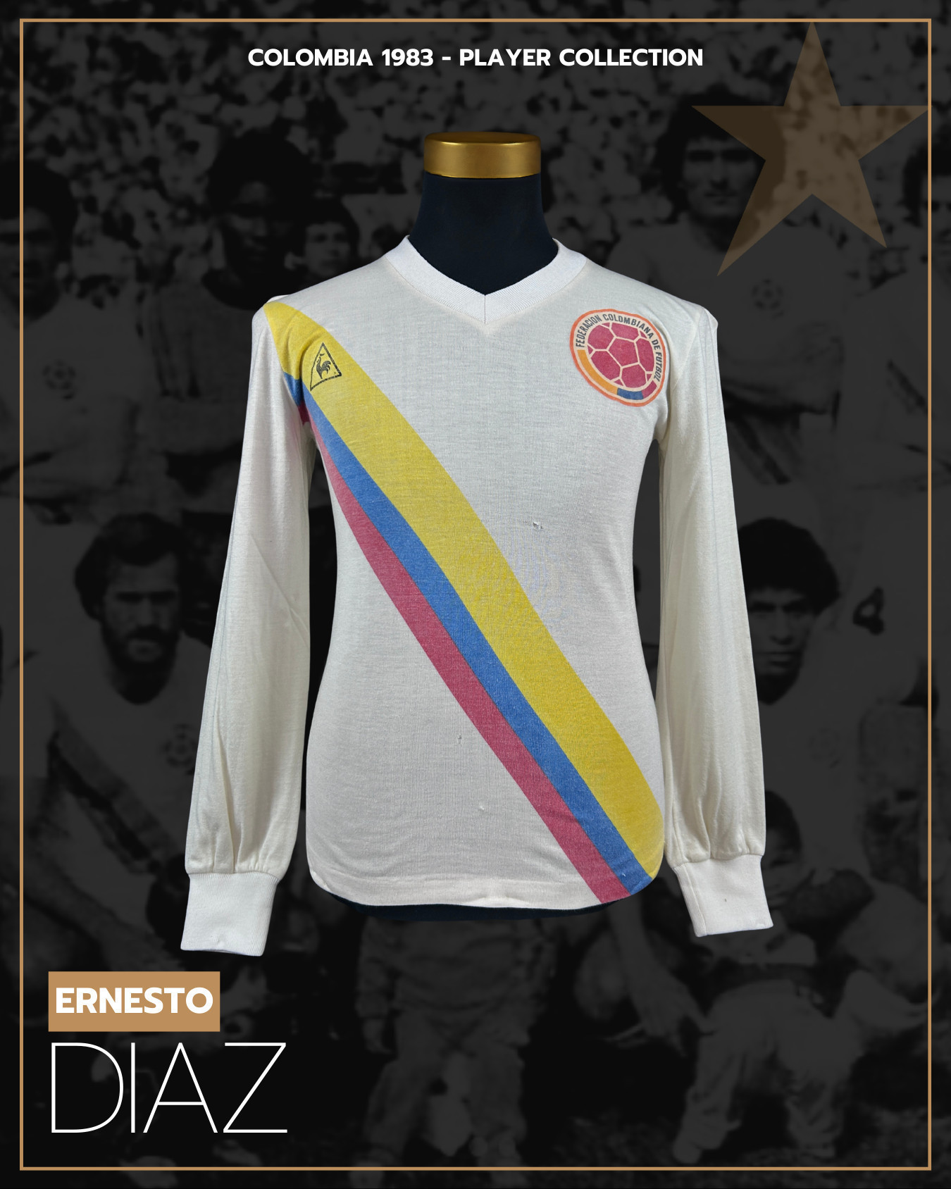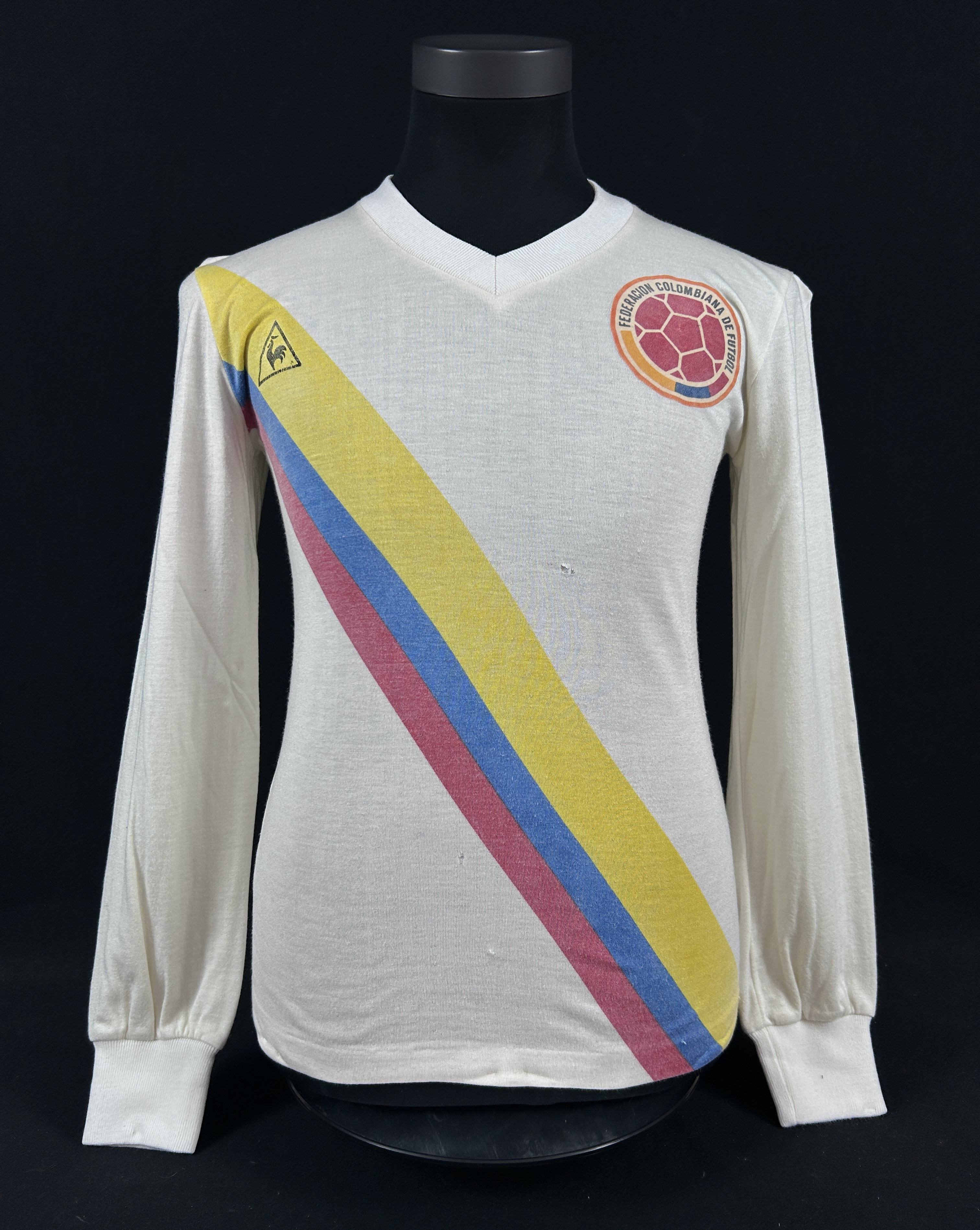 NOTE 1: SWAPPED IN KNOWN MATCH. Exclusive white Le Coq Sportif jersey swapped in 1983 America Cup match played in August 31th, 1983 in Bogotá between Ernesto Diaz and Milton Melgar. By that Cup the venues where located in all southamerican countries.