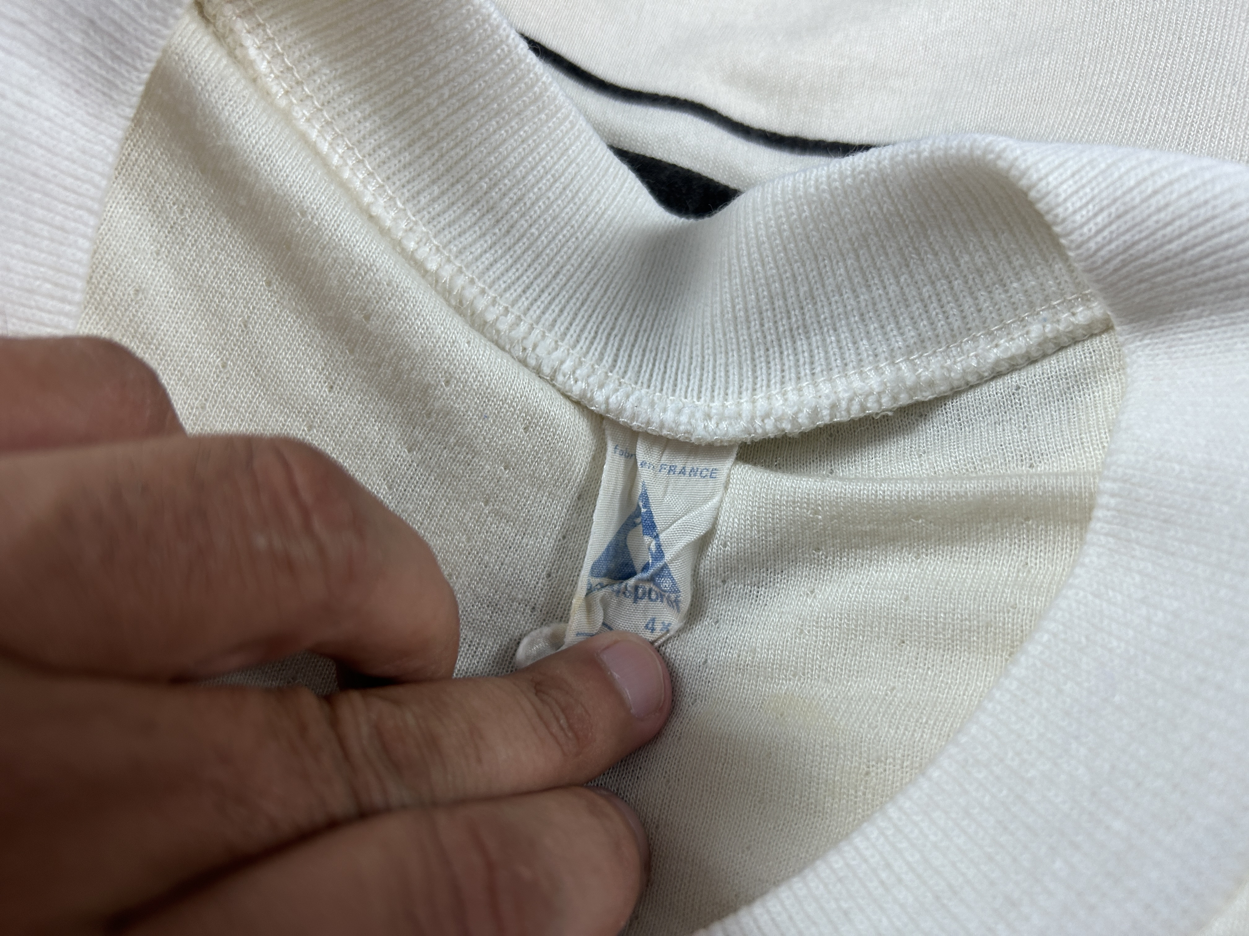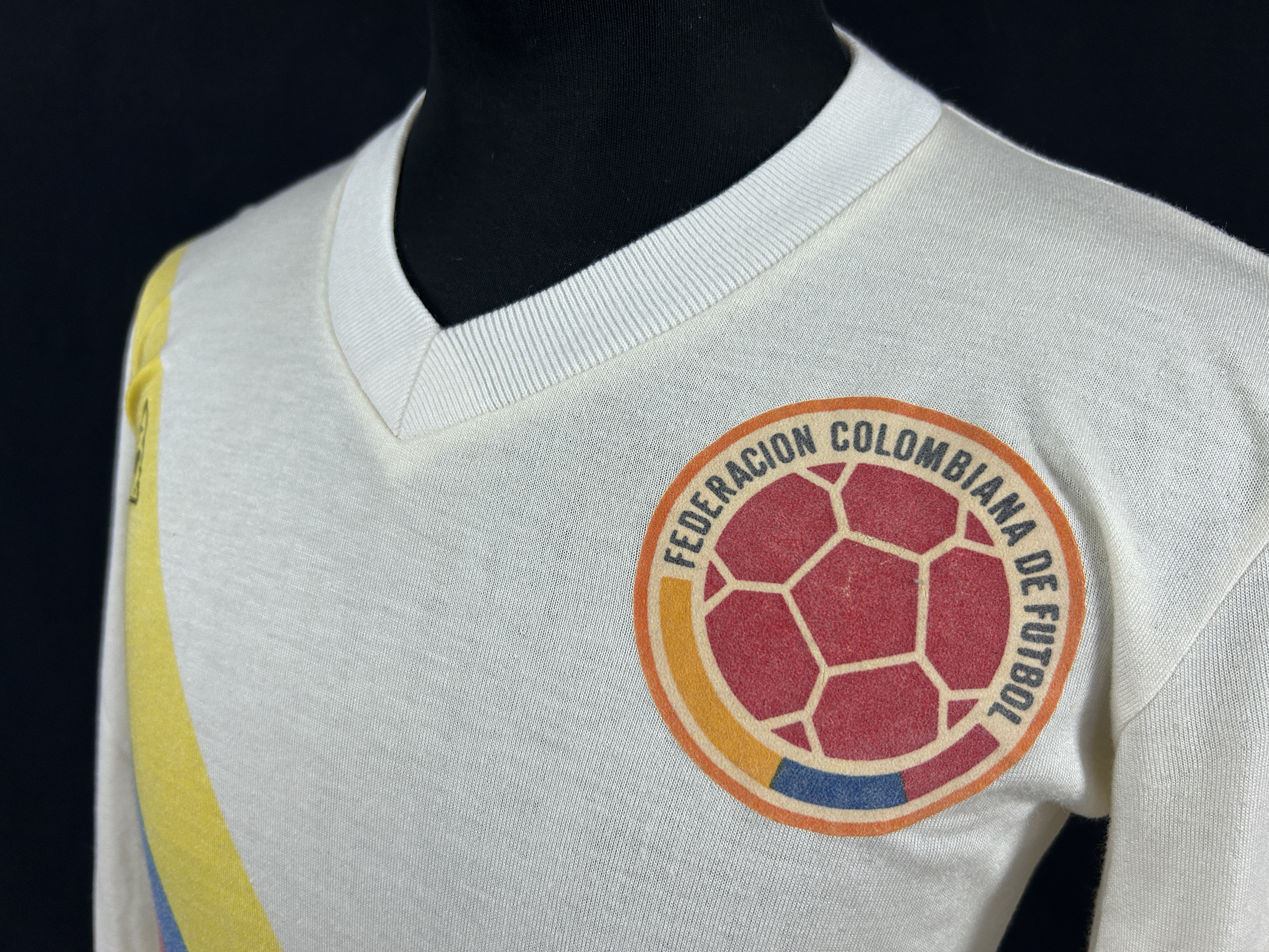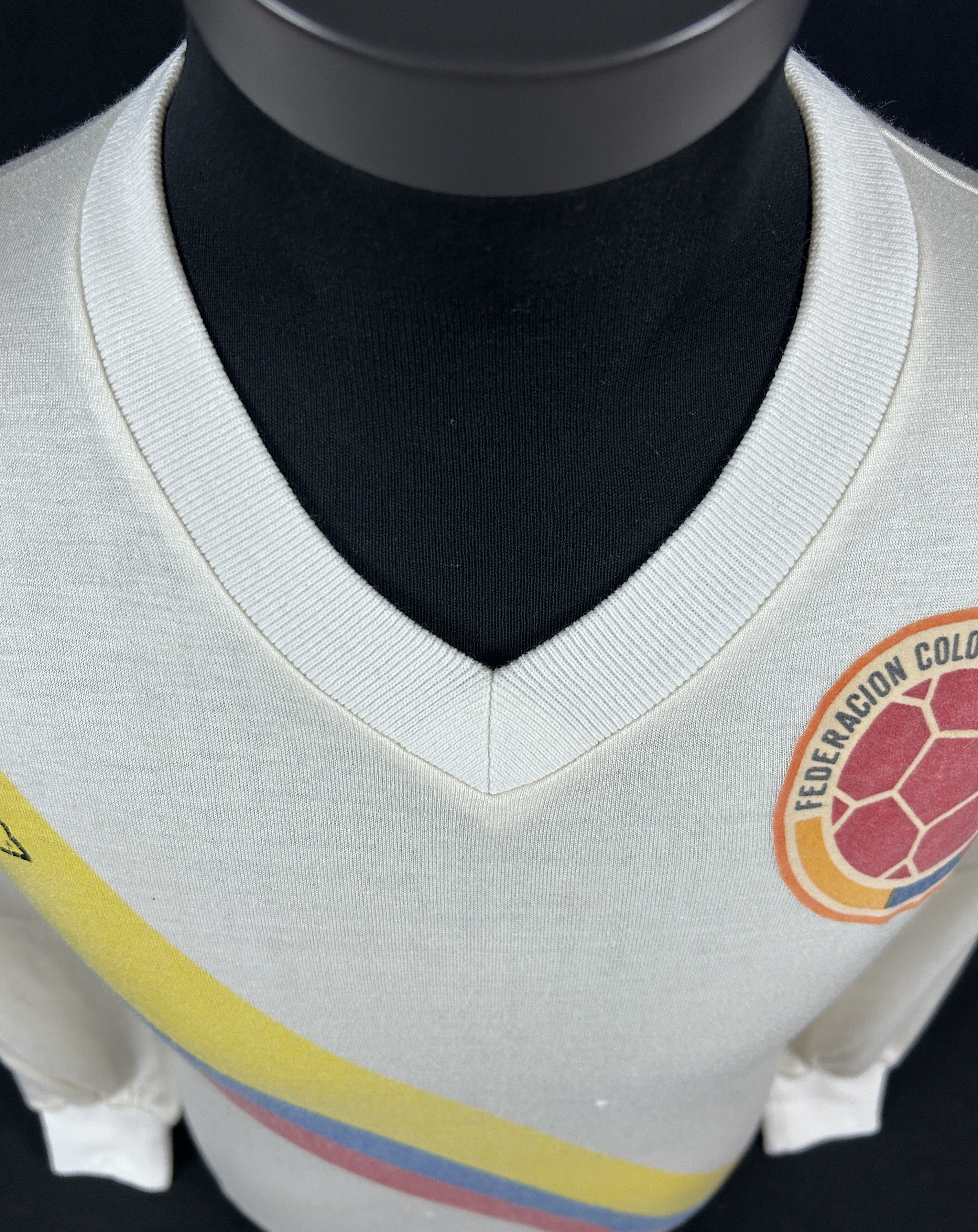 NOTE 1: SWAPPED IN KNOWN MATCH. Exclusive white Le Coq Sportif jersey swapped in 1983 America Cup match played in August 31th, 1983 in Bogotá between Ernesto Diaz and Milton Melgar. By that Cup the venues where located in all southamerican countries.