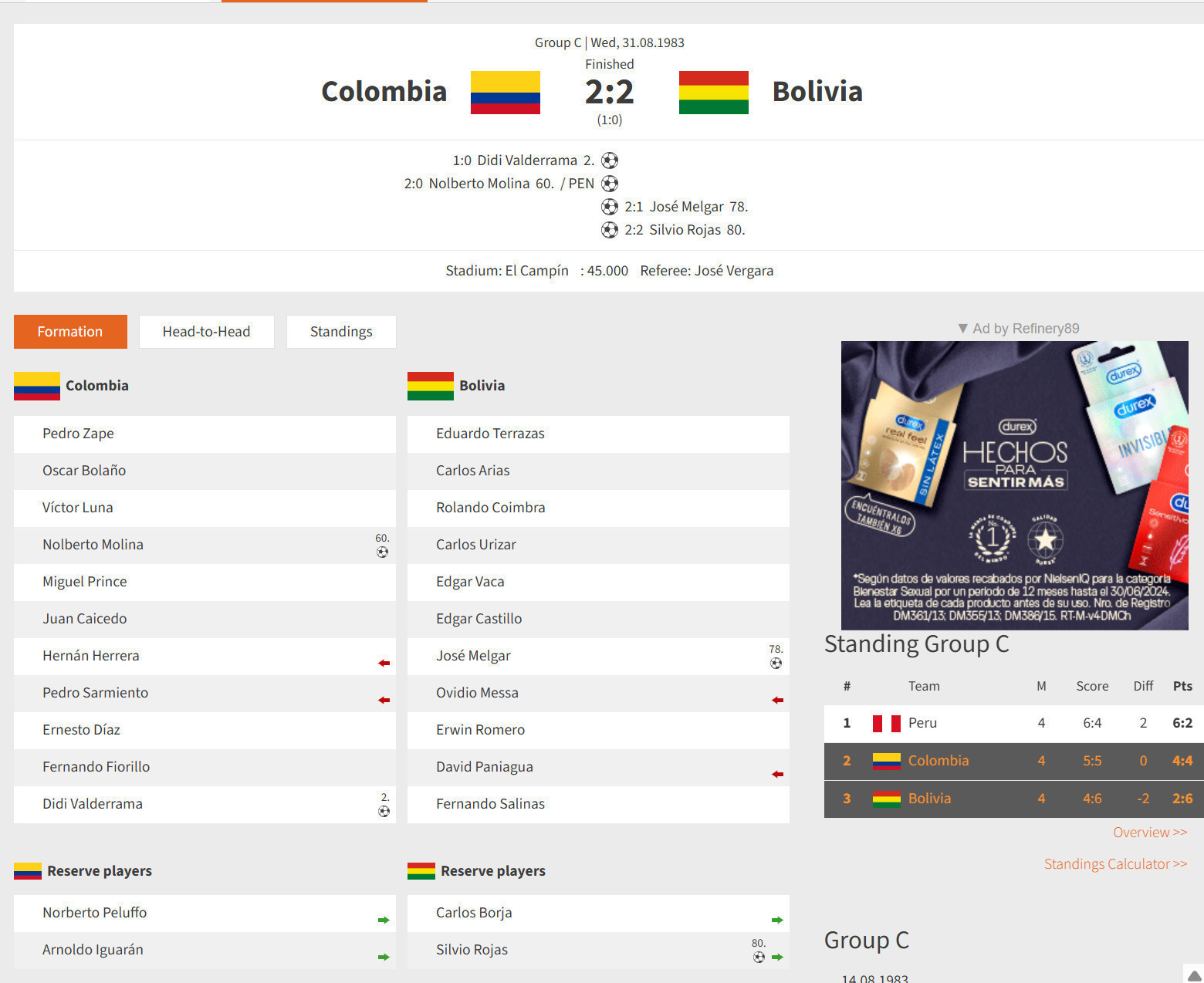 Game: COLOMBIA vs BOLIVIA (2-2)