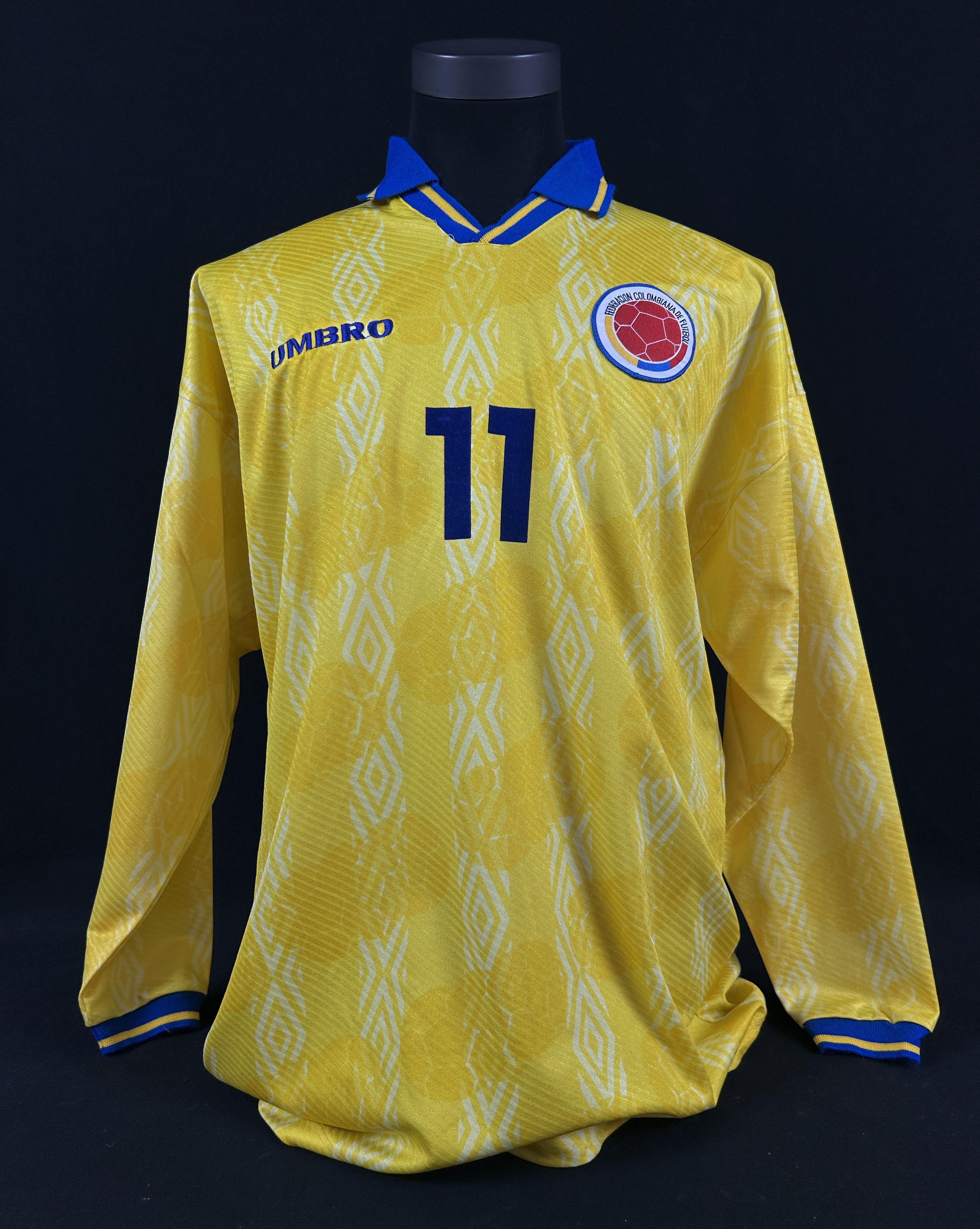 NOTE 1: SWAPPED IN KNOWN MATCH. Exclusive long sleeve version swapped after the match by Milton Melgar with the colombian legend striker Faustino Asprilla on November 10th, 1996 in WCQ.