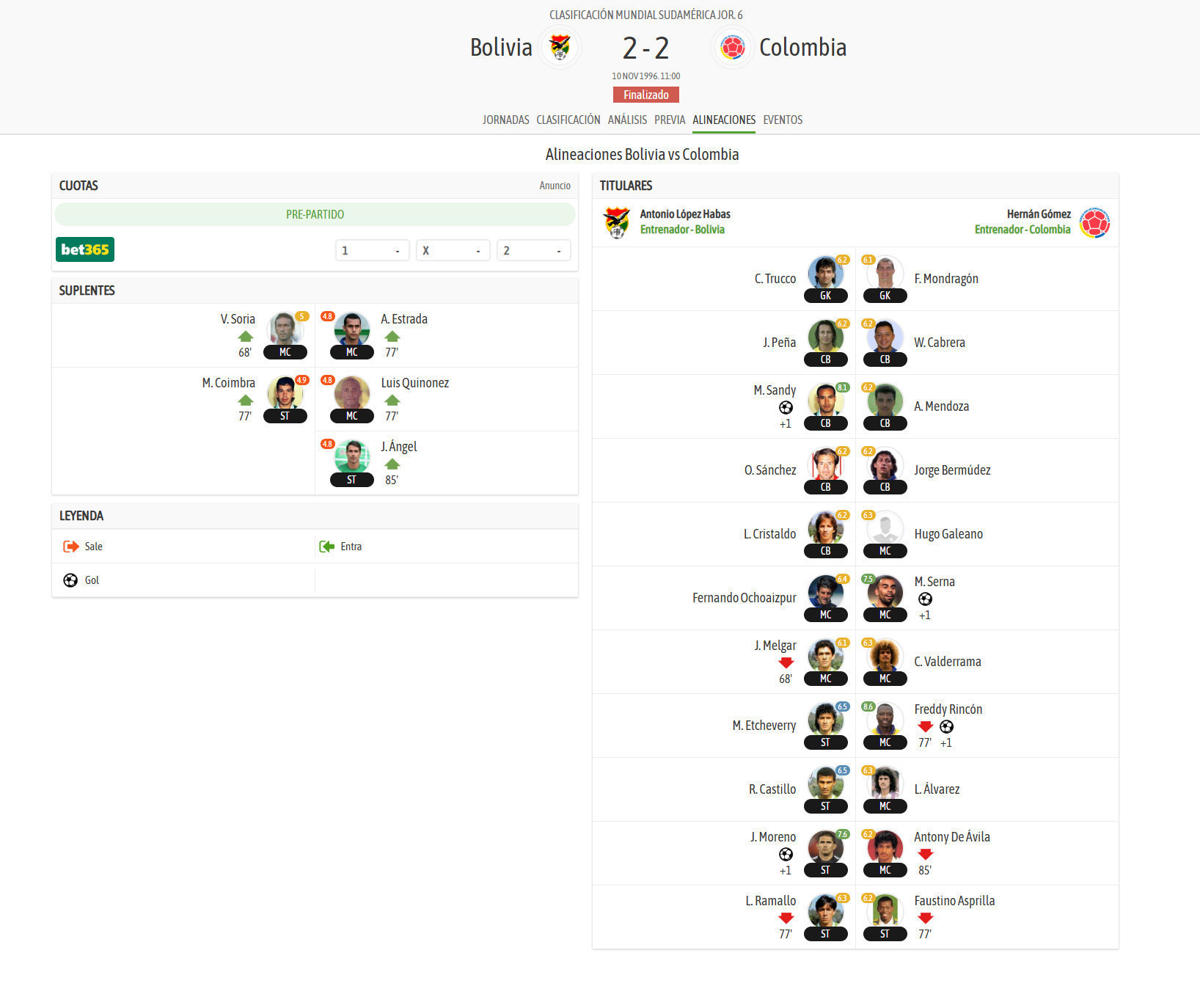 Date: 10/11/1996 | Hernando Siles Stadium | La Paz, Bolivia.