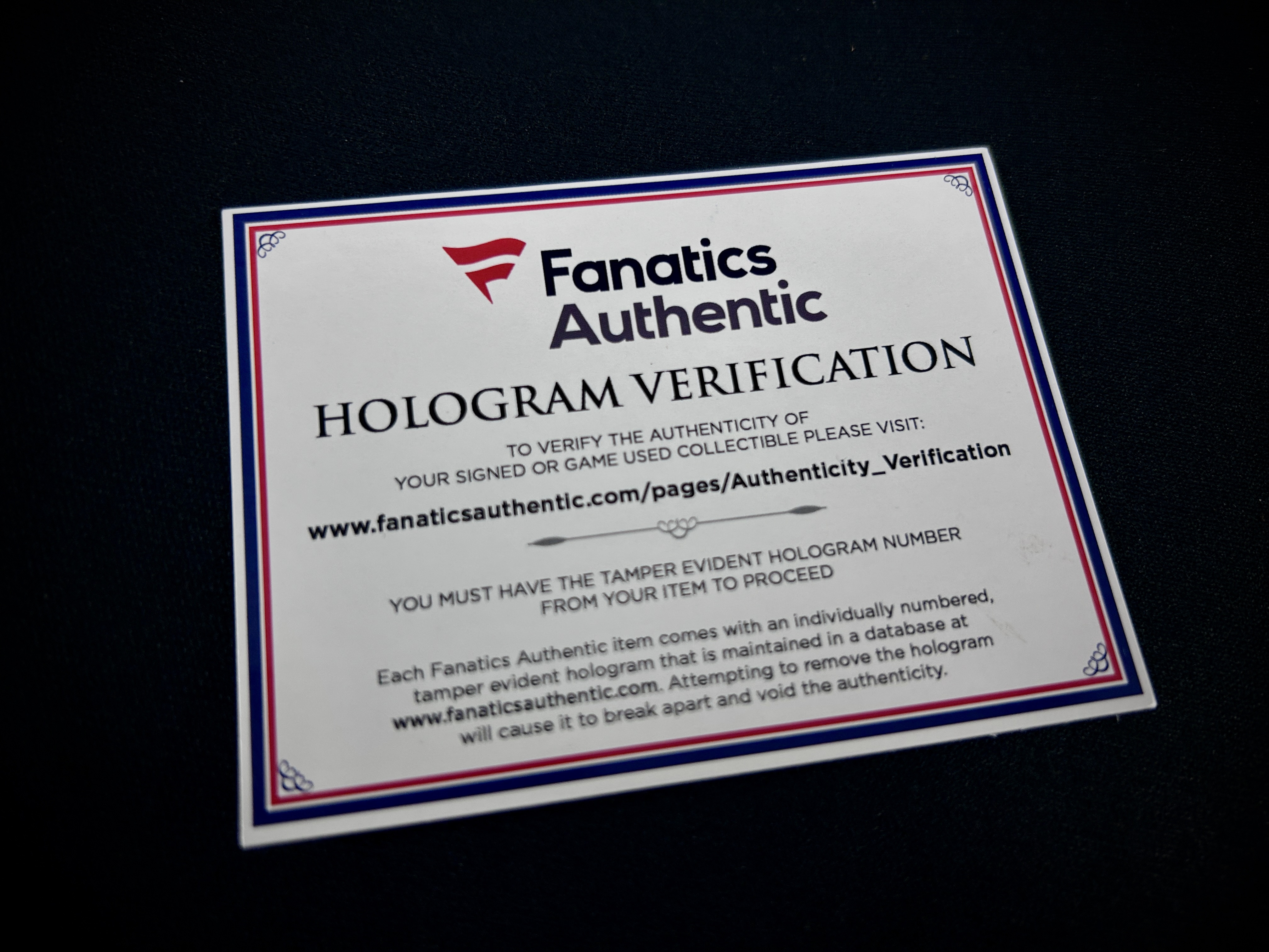 In addition including a FANATIC AUTHENTIC CERTIFICATE (ZZ0015227) wich comes with an individually numbered, tamper evident hologramthat is maintained in a database at www.fanathicsauthentic.com.