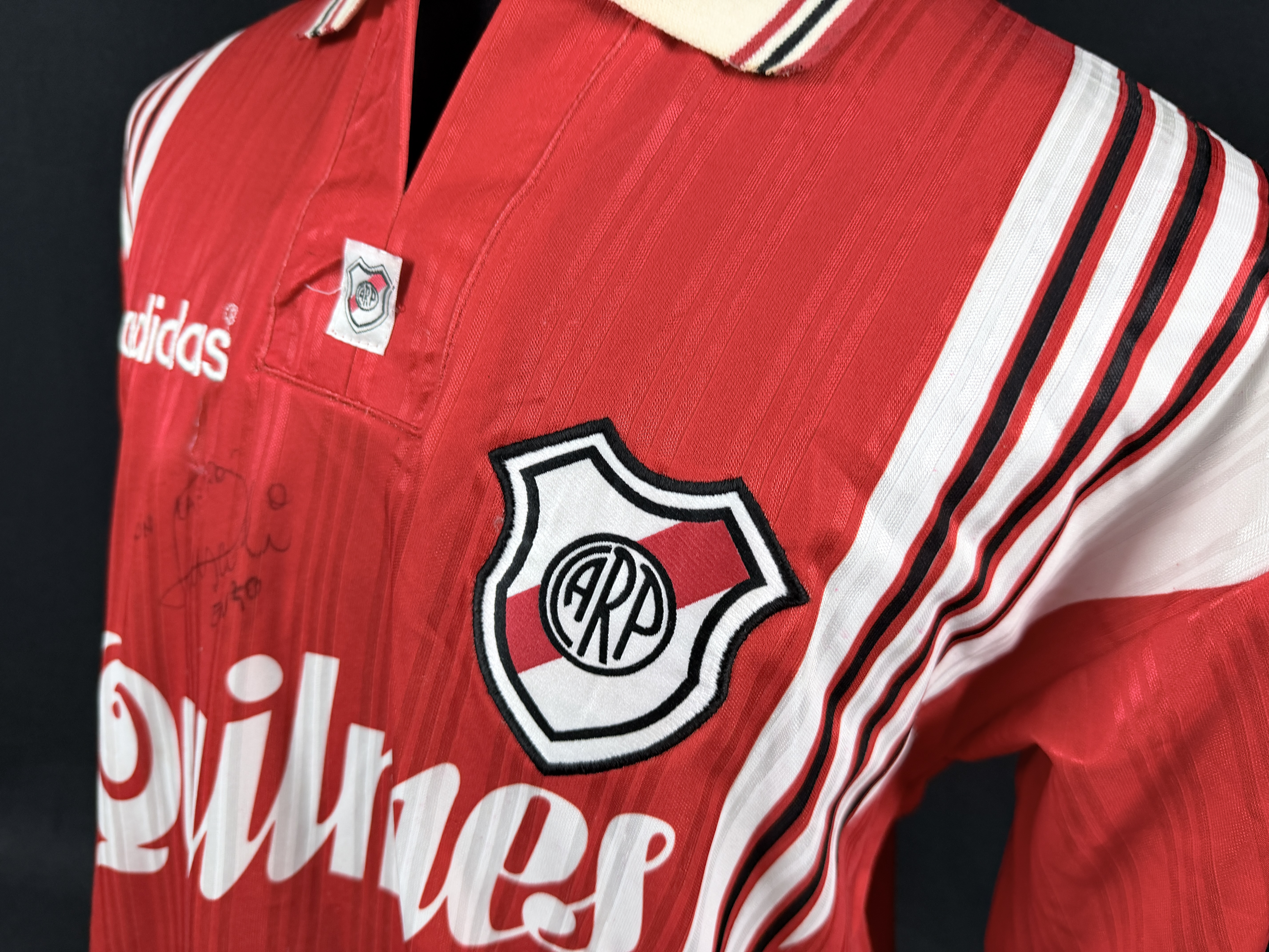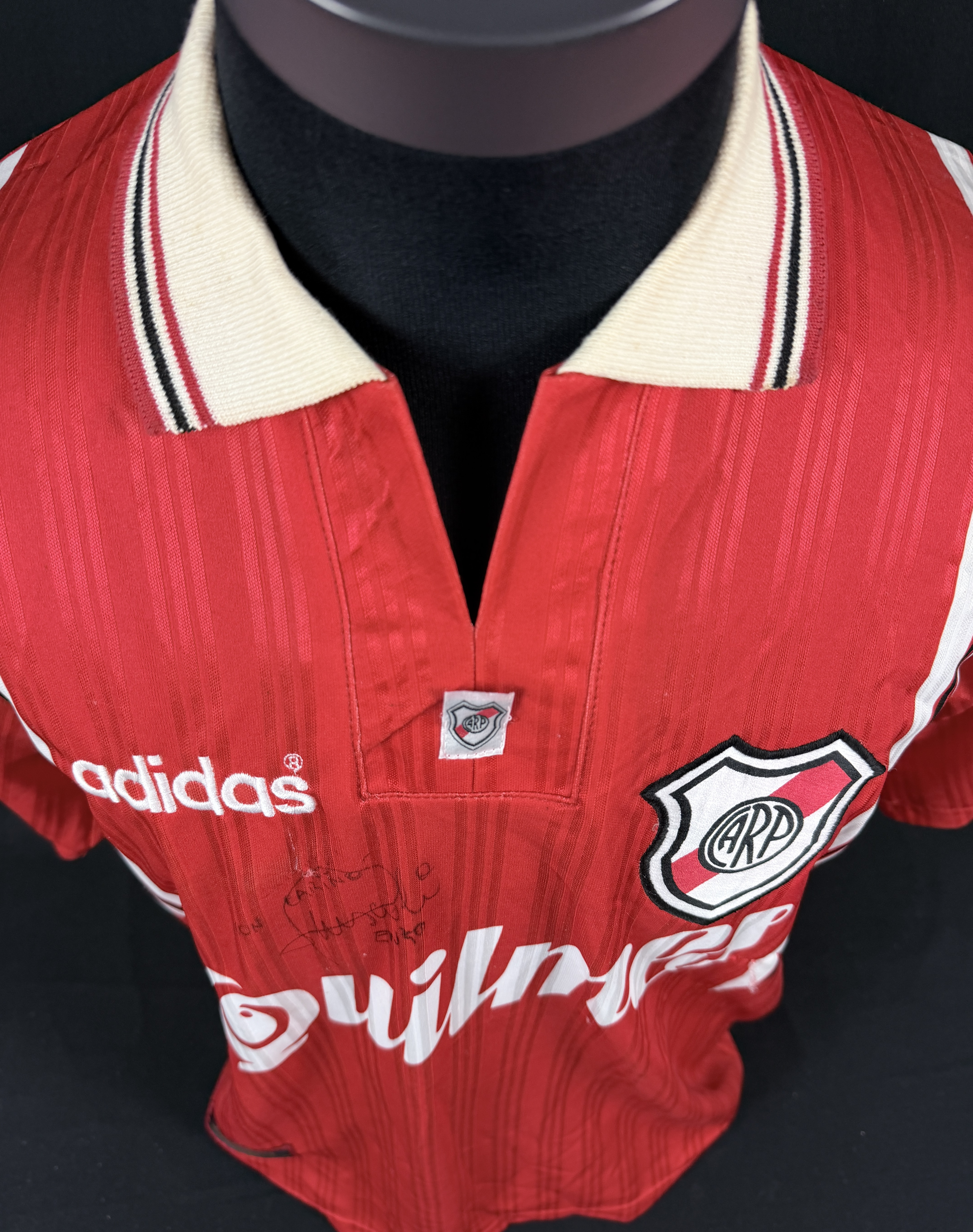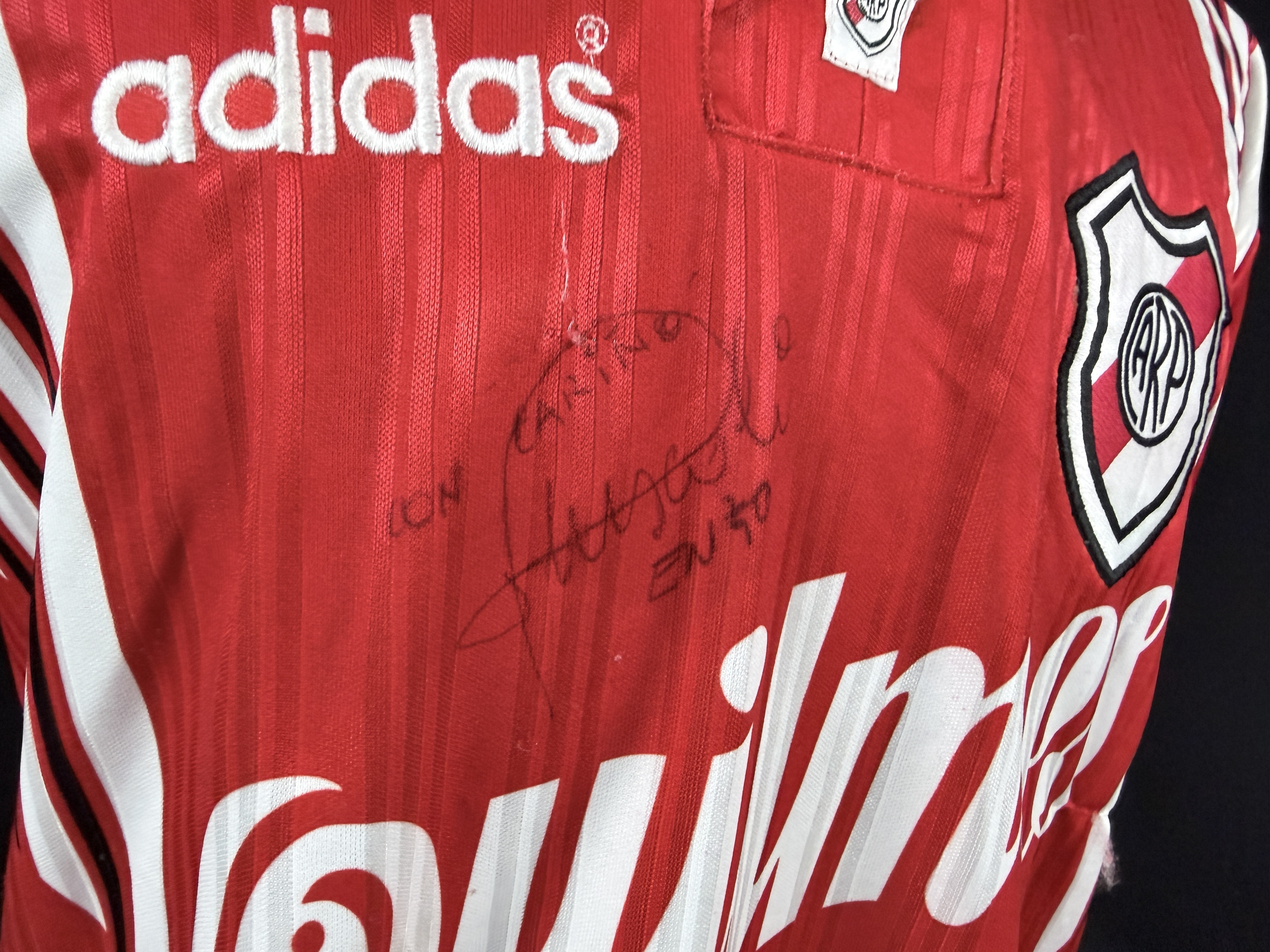 NOTE 2: Beautiful 96/97 away version hand signed by "El Principe" with old signature version. Own a piece of history for the best River 's idol ever. Jersey gifted by Enzo to his close friend Rubén Da Silva after a unremembered match.
