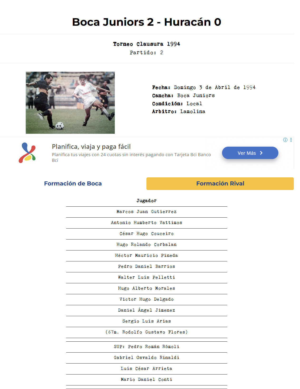 Game: BOCA JUNIORS vs HURACÁN (2-0)