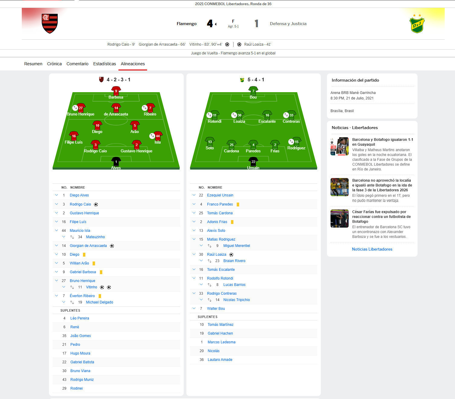 Game: FLAMENGO vs DEFENSA Y JUSTICIA (4-1)